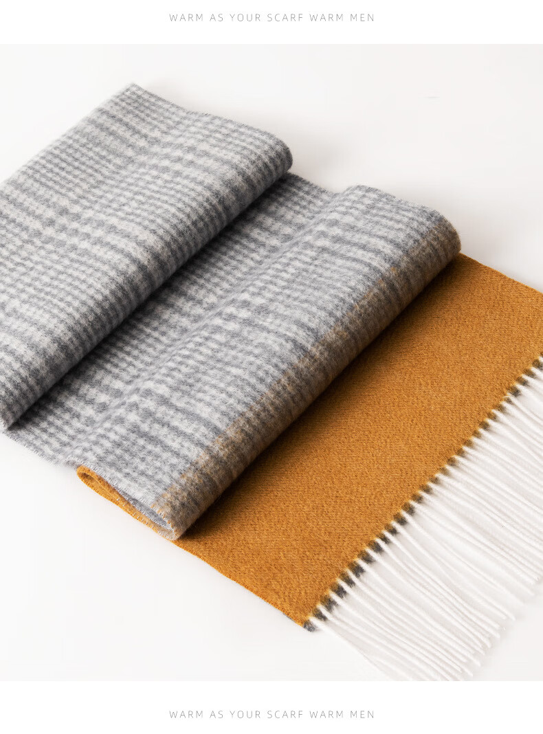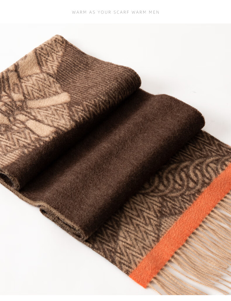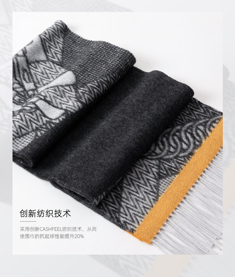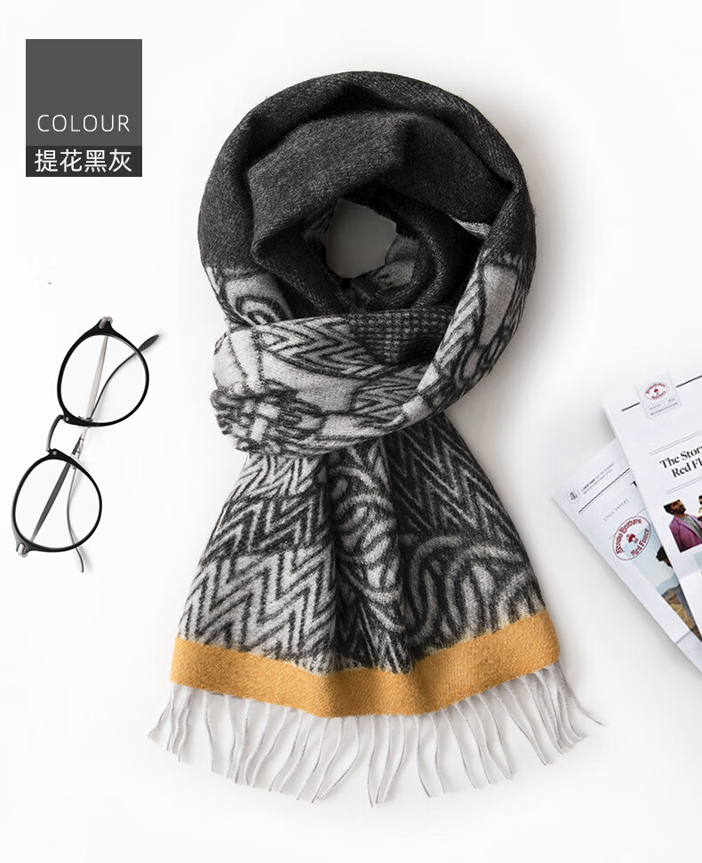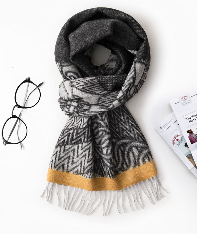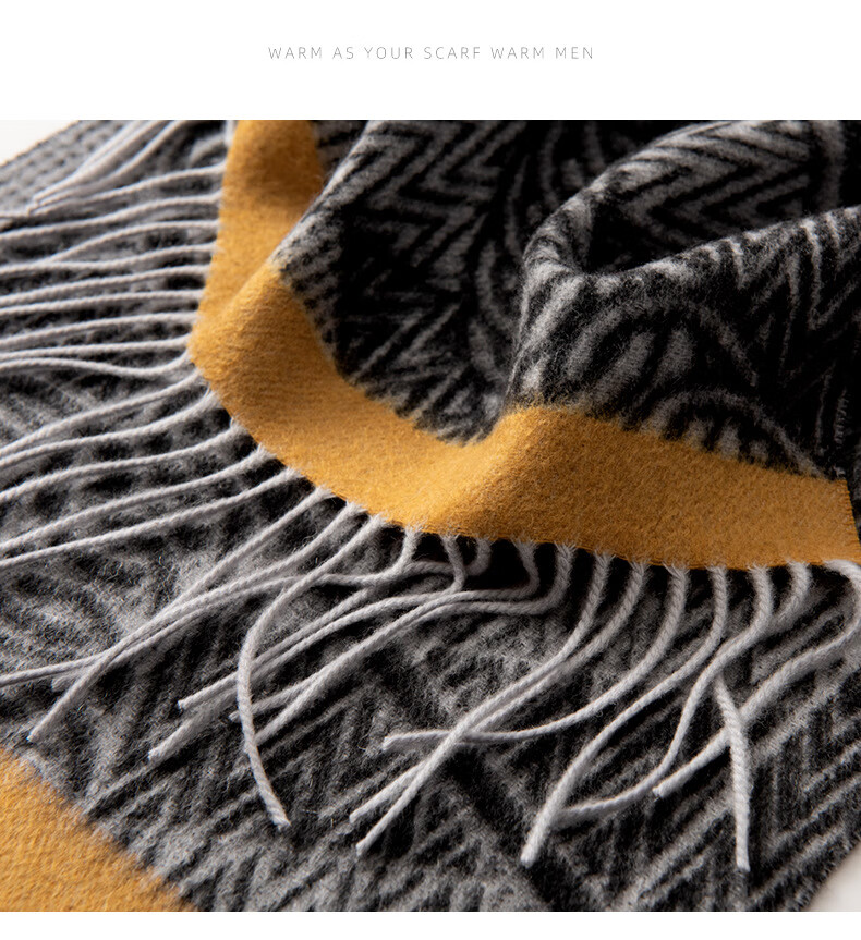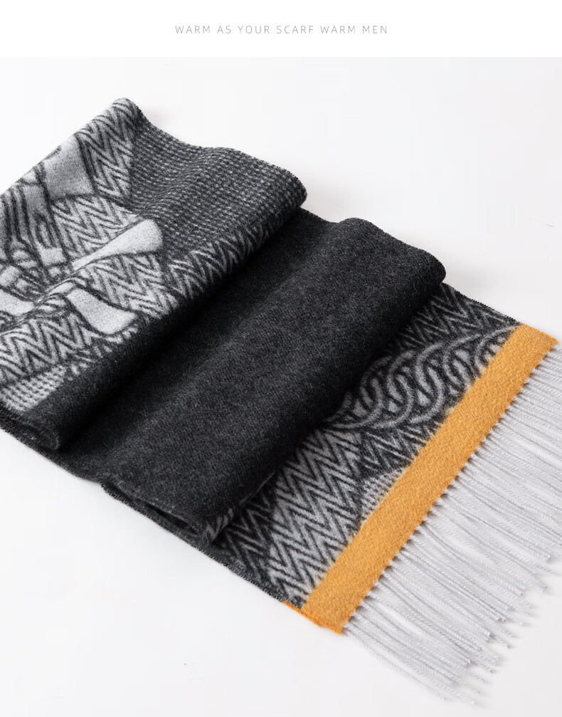 ERDOS Ordos 100% cashmere men's scarf, winter gift, warm and thickened, scarf for boyfriend, dad, scarf, jacquard black and gray (100% cashmere) 180*32cm (including tassels)