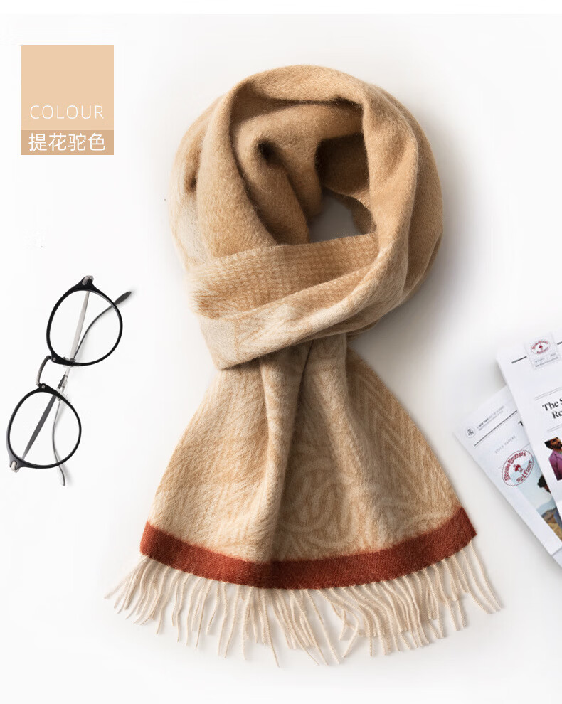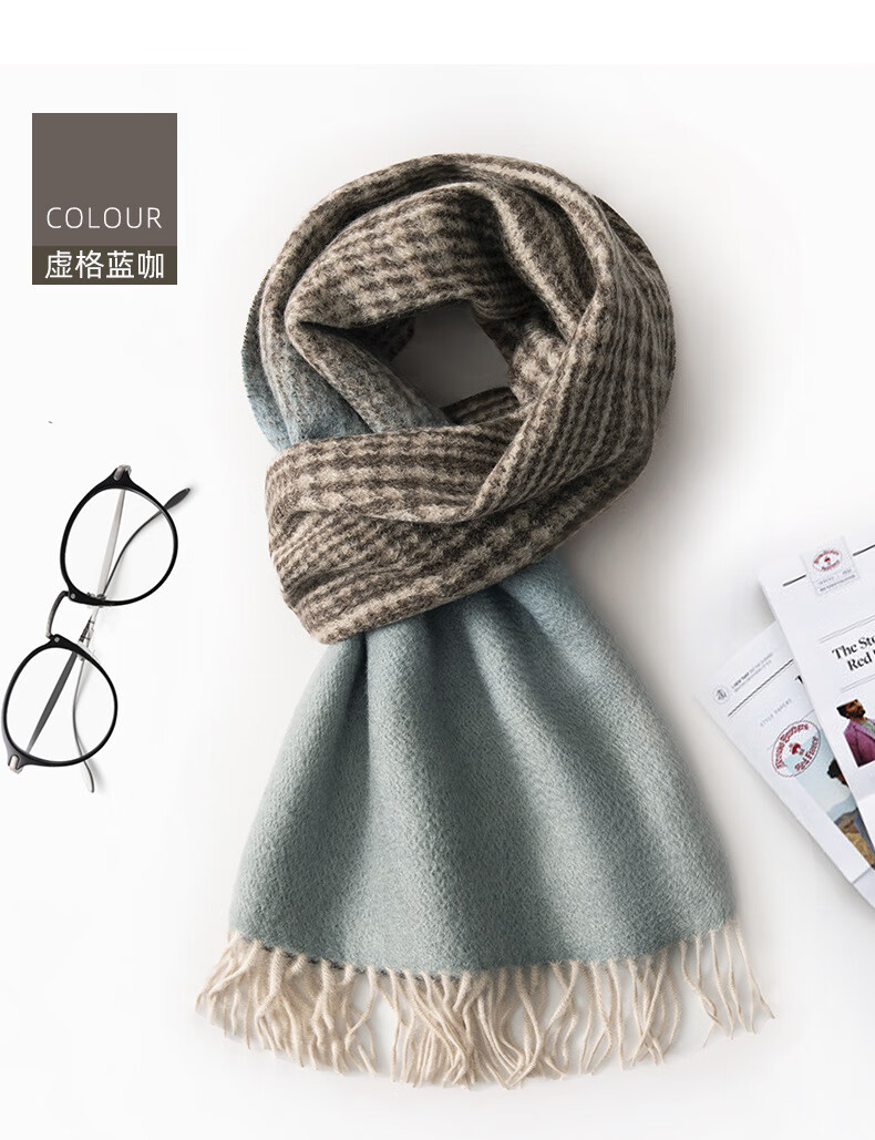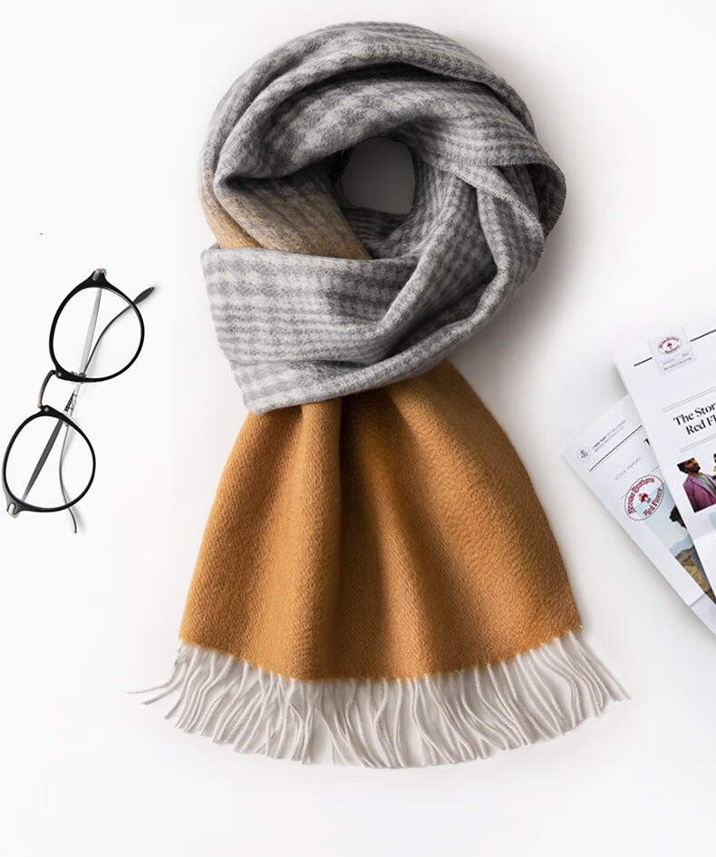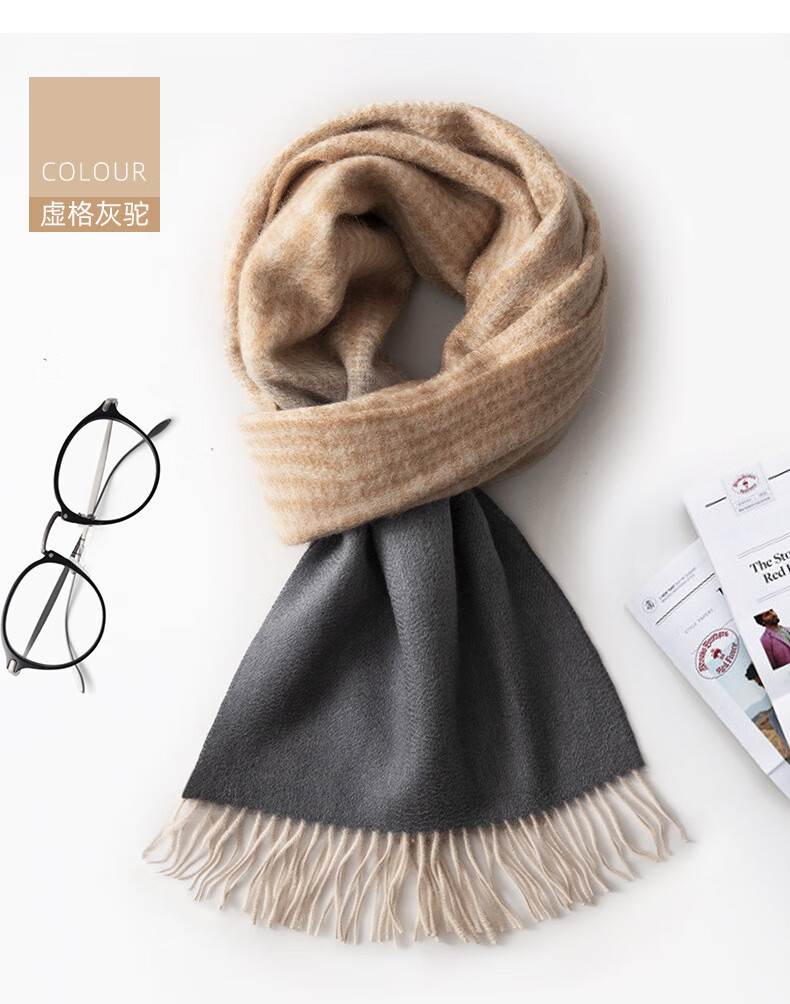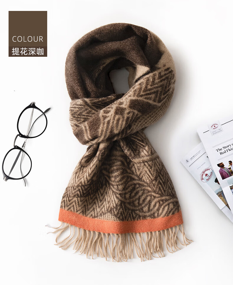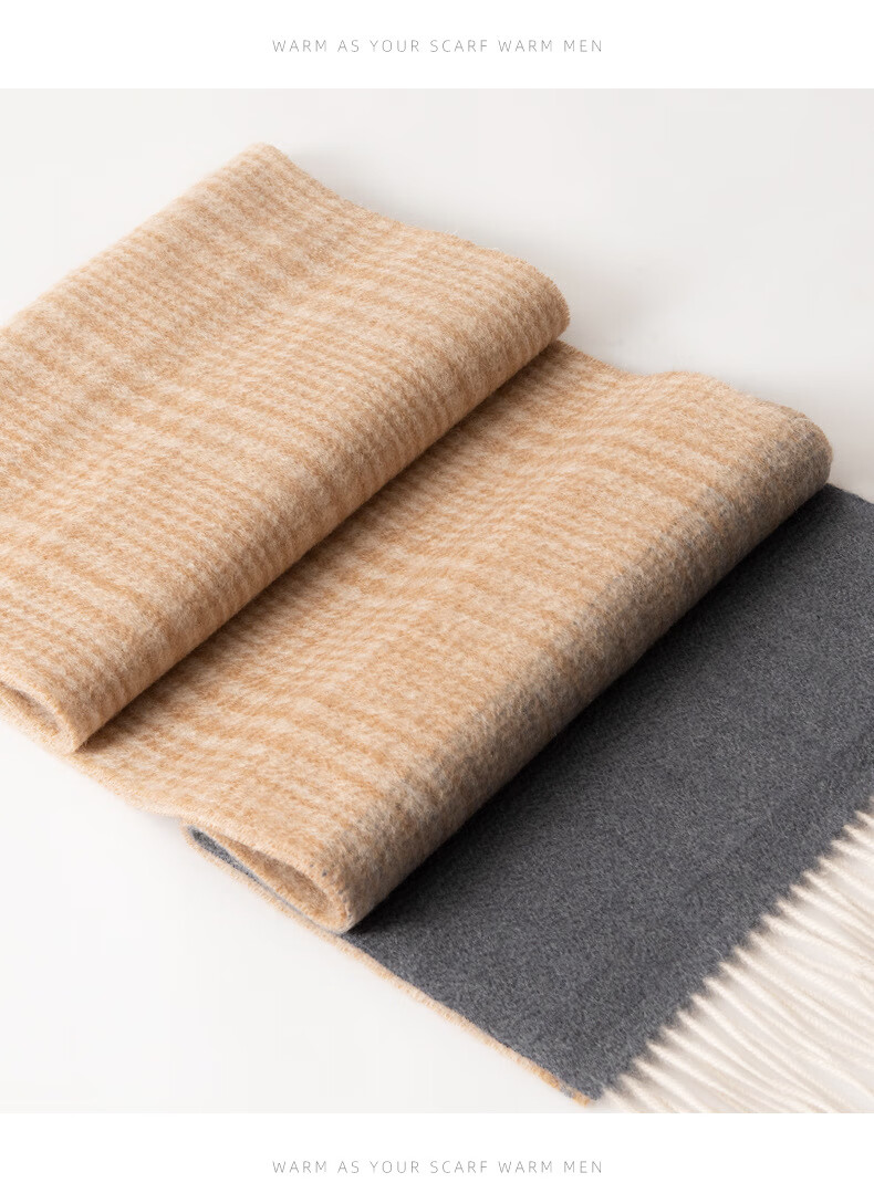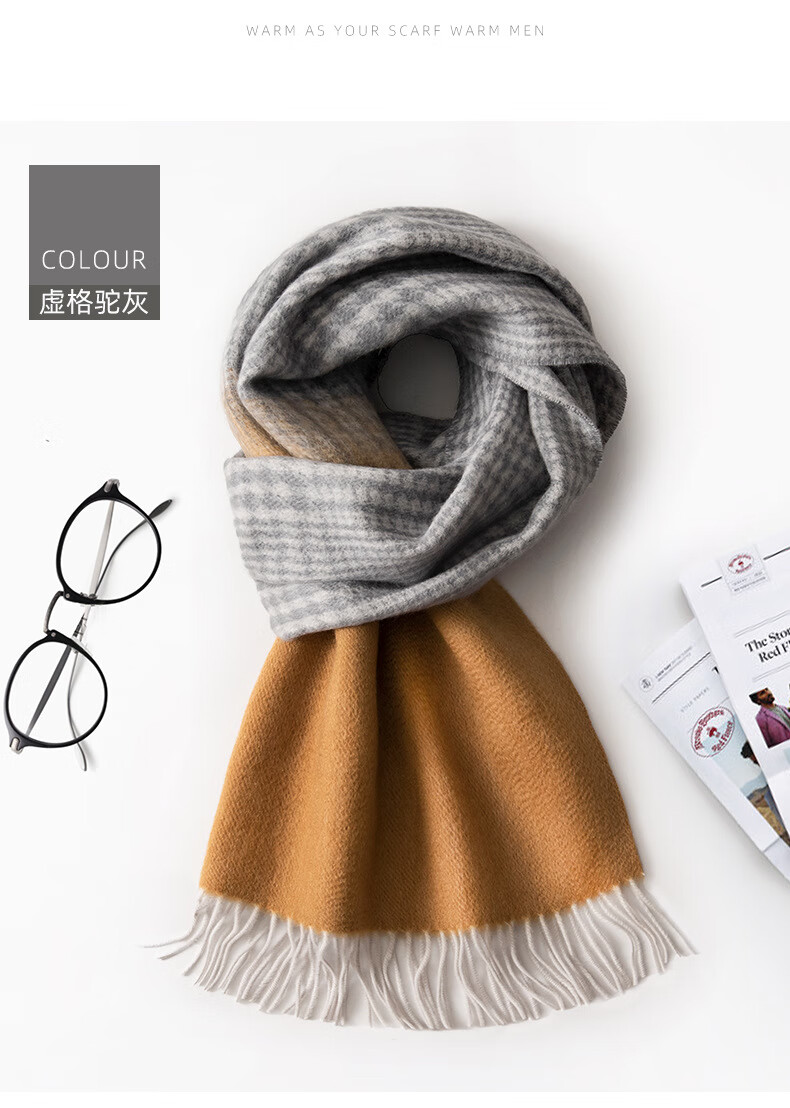 ERDOS Ordos 100% cashmere men's scarf, winter gift, warm and thickened, scarf for boyfriend, dad, scarf, jacquard black and gray (100% cashmere) 180*32cm (including tassels)