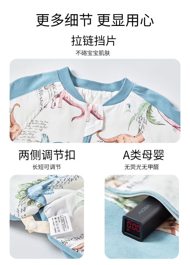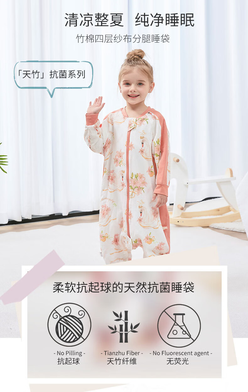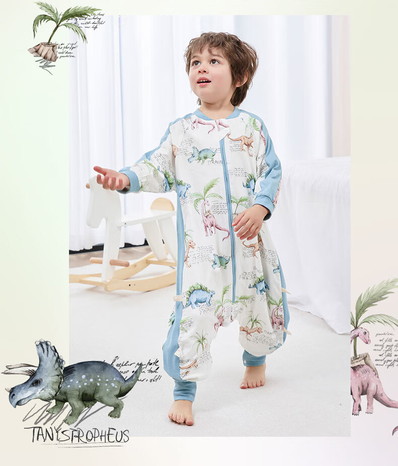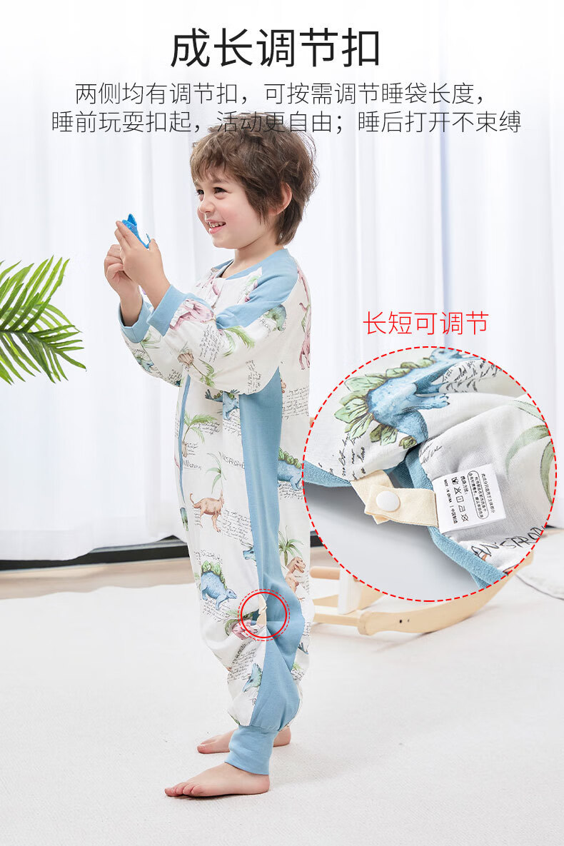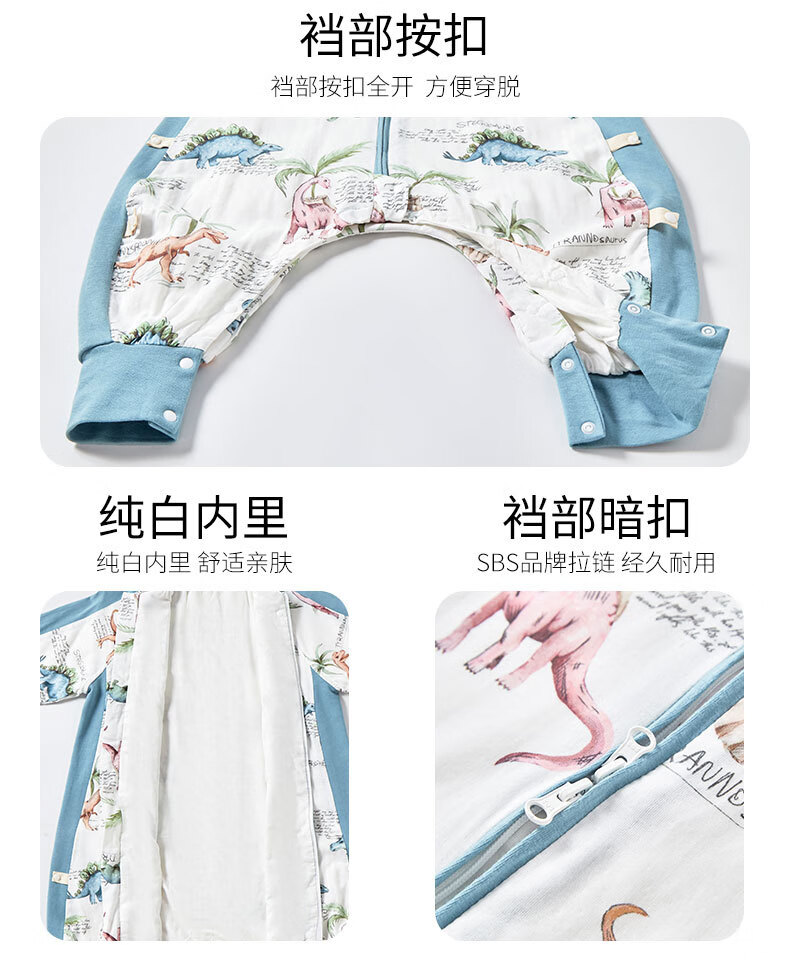 Bamboo cotton baby split-leg sleeping bag bamboo fiber one-piece gauze children's antibacterial baby pajamas anti-kick quilt type A six-layer gauze dinosaur tribe 80# (suitable for height 70-85cm)