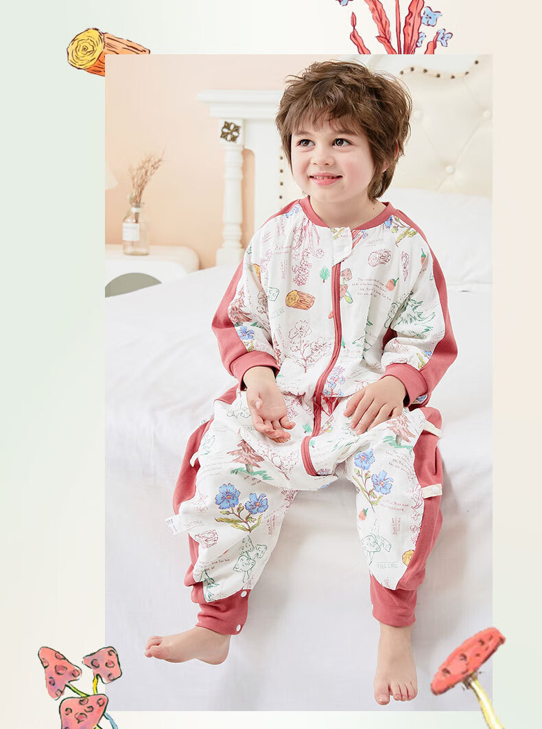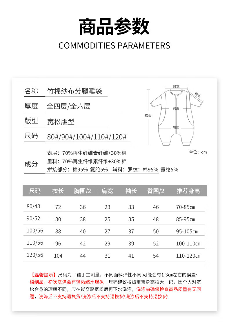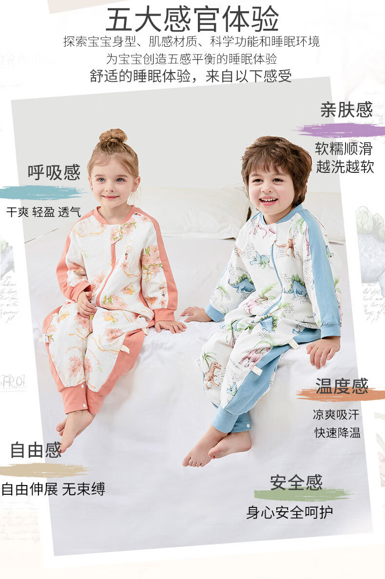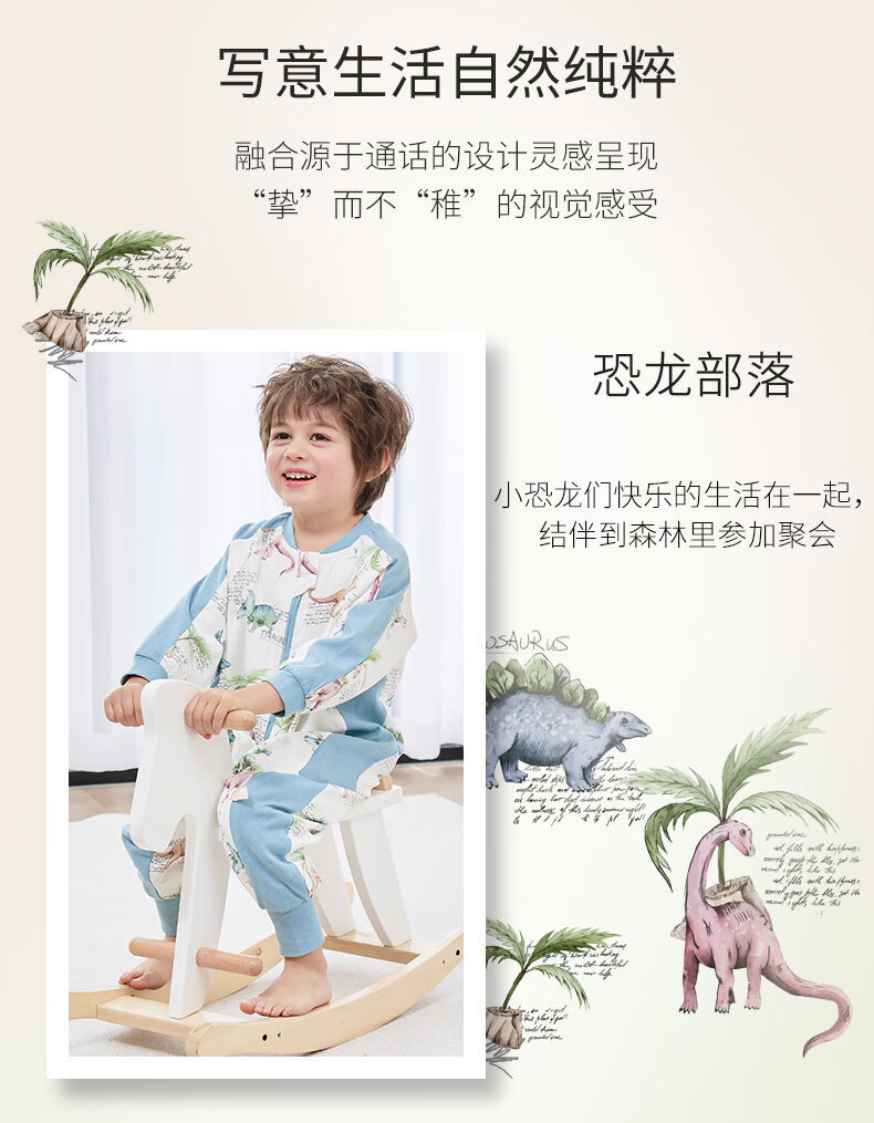 Bamboo cotton baby split-leg sleeping bag bamboo fiber one-piece gauze children's antibacterial baby pajamas anti-kick quilt type A six-layer gauze dinosaur tribe 80# (suitable for height 70-85cm)