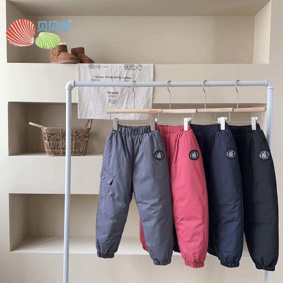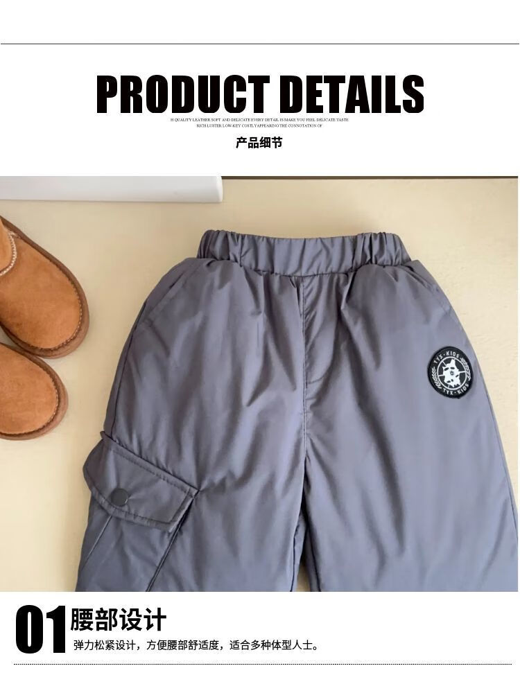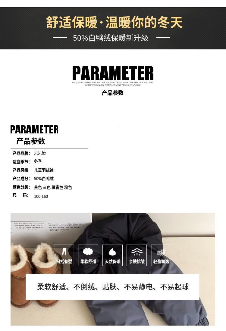 HAL.DUCK children's down pants for boys and girls, warm white duck down outer wear for large, medium and small children, thickened overalls, winter, brand black 100, recommended height 85-95