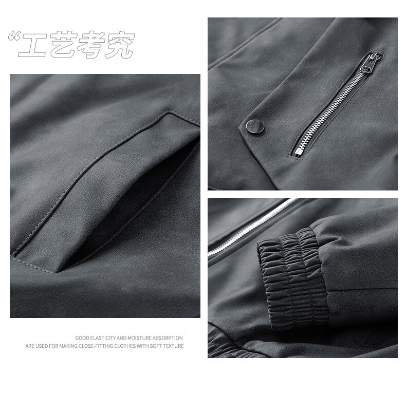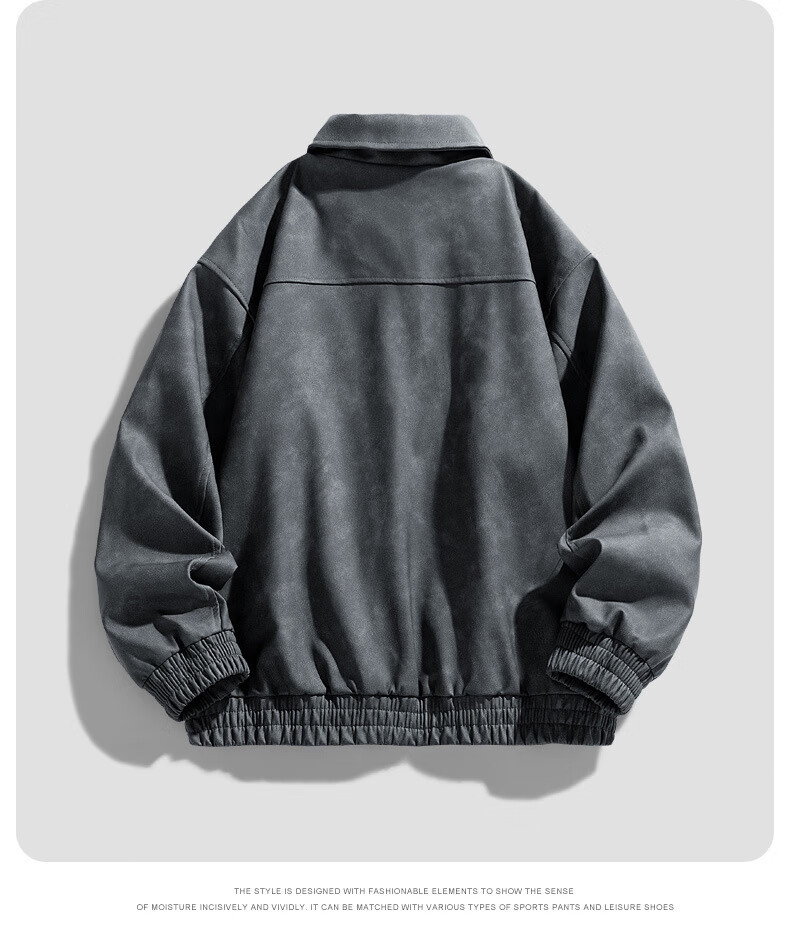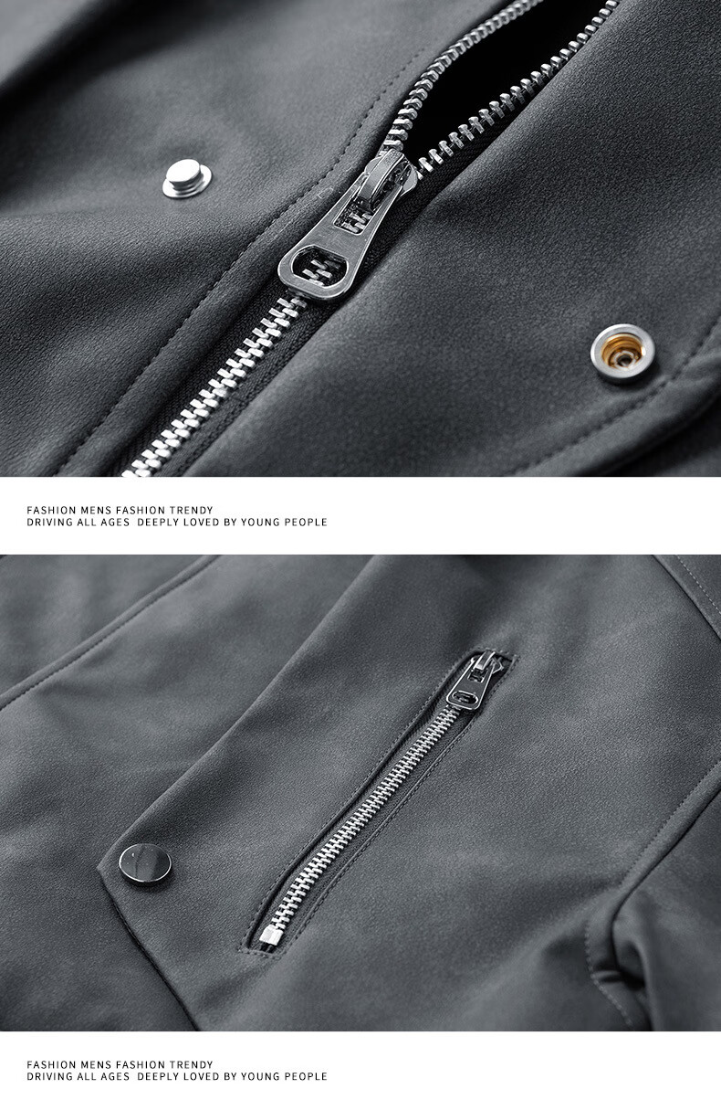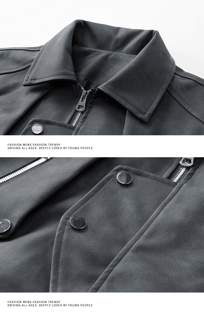Classic car lapel retro leather jacket men's washed PU leather handsome American casual motorcycle jacket dark gray M