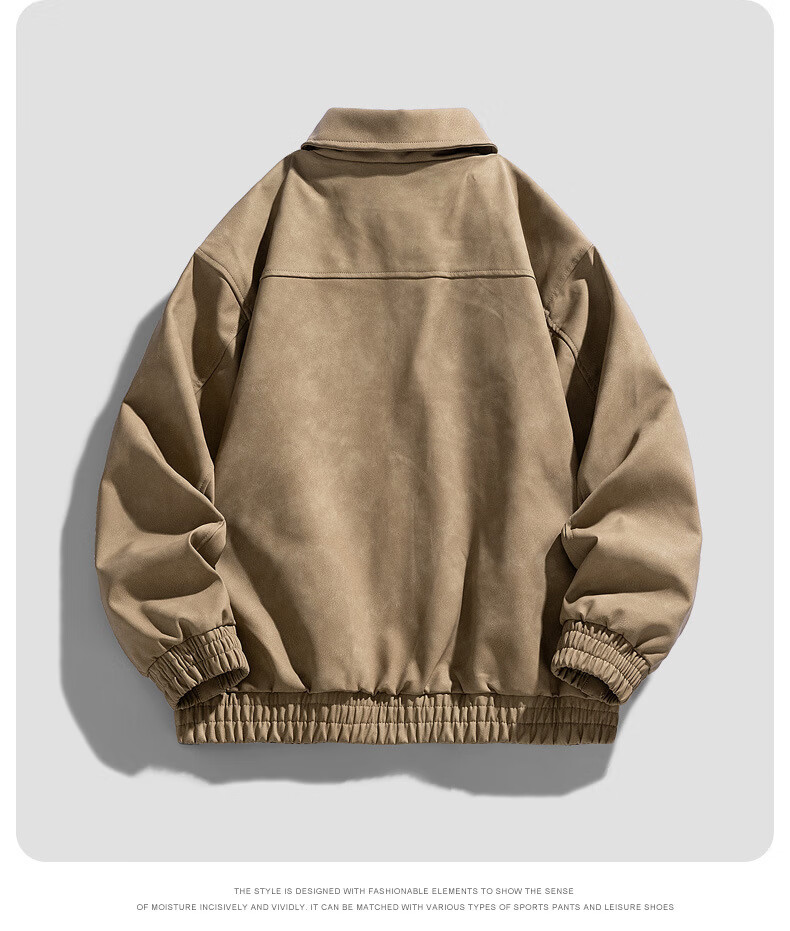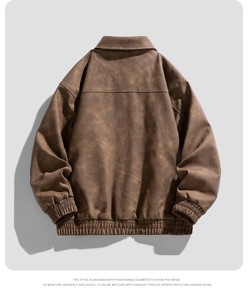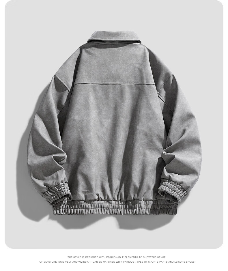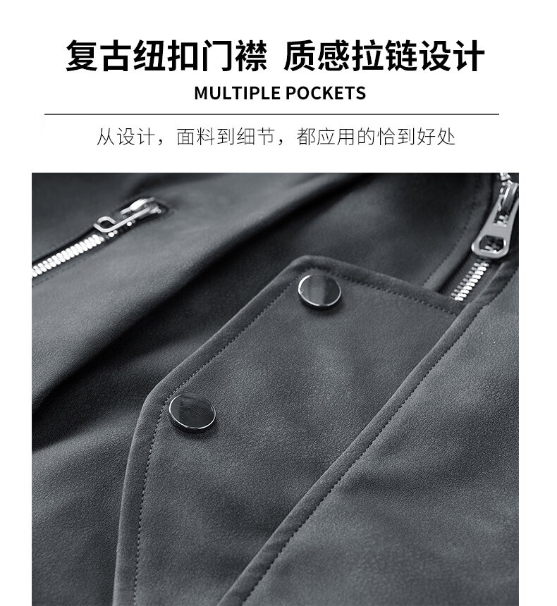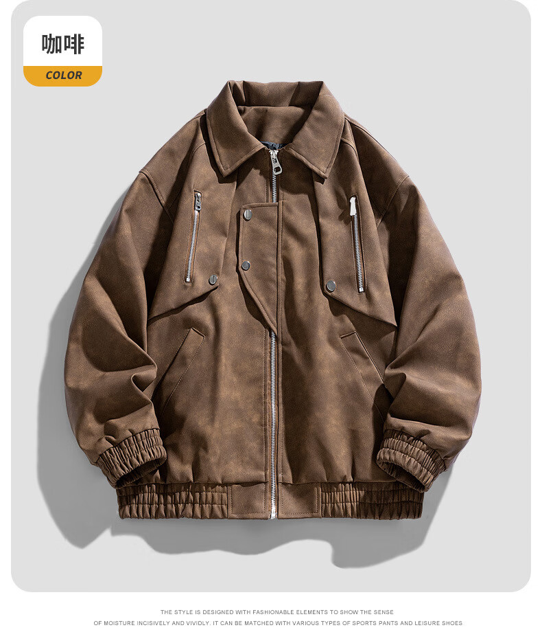 Classic car lapel retro leather jacket men's washed PU leather handsome American casual motorcycle jacket dark gray M