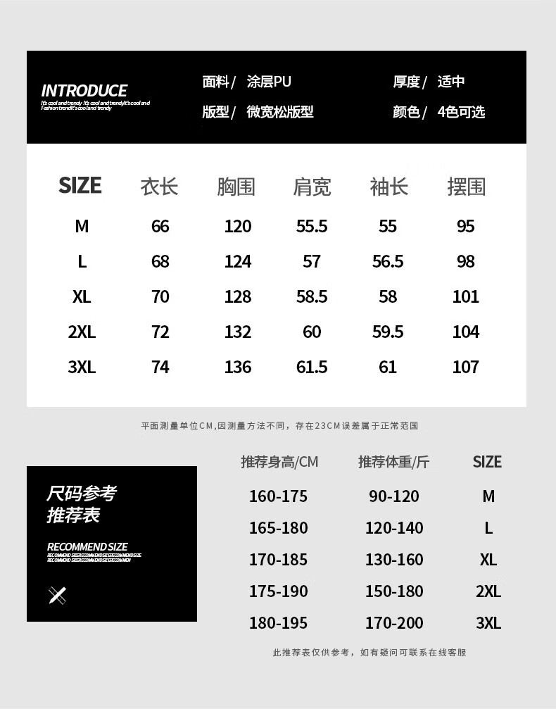 China (cm) 165 / 88-90 170 / 96-98 175 / 108-110 180 / 118-122 185 / 126-130