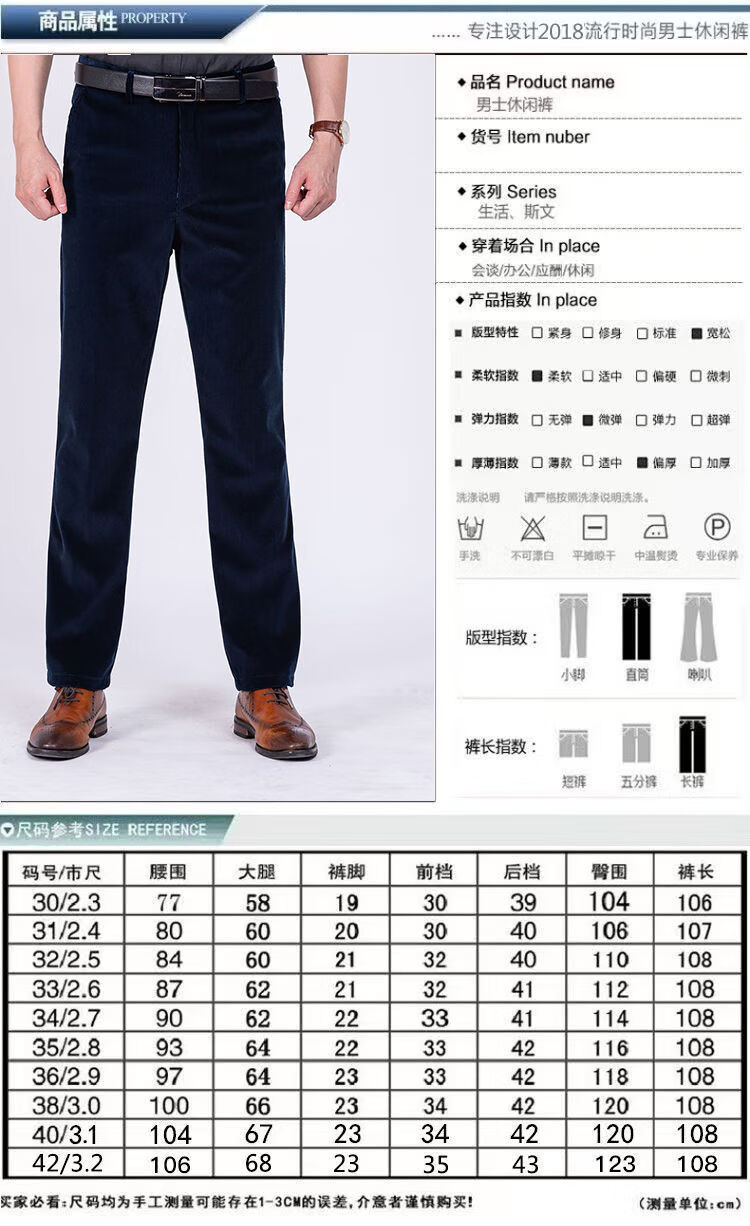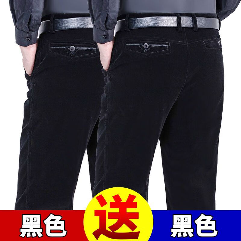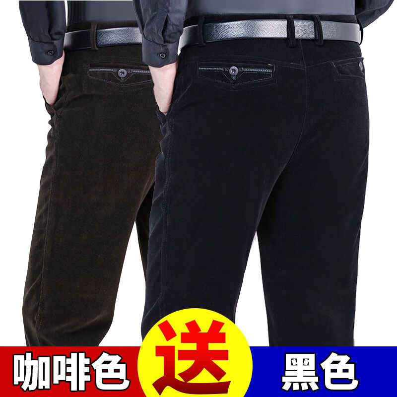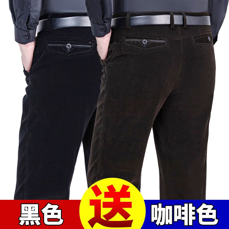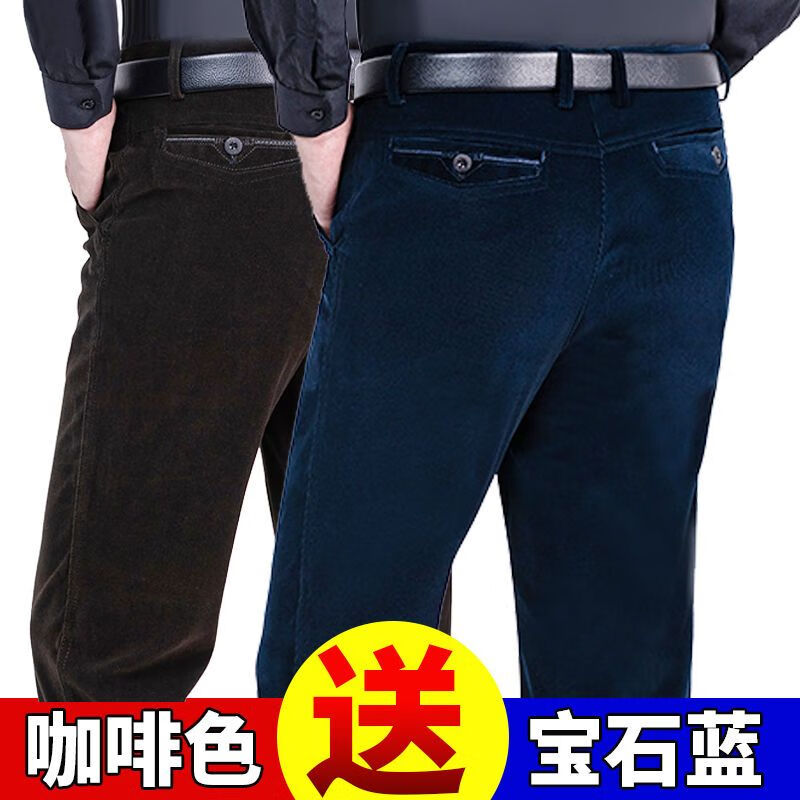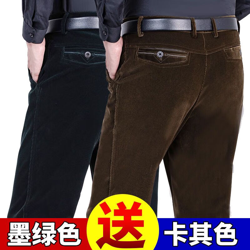 Playboy (PLAYBOY) autumn and winter men's corduroy pants, middle-aged and older men's pants, thickened elastic men's pants, corduroy men's pants, loose dad pants, official flagship khaki + brown, two packs 35, waist 2 feet 8, 145-150 Jin Jin equals 0.5 kg