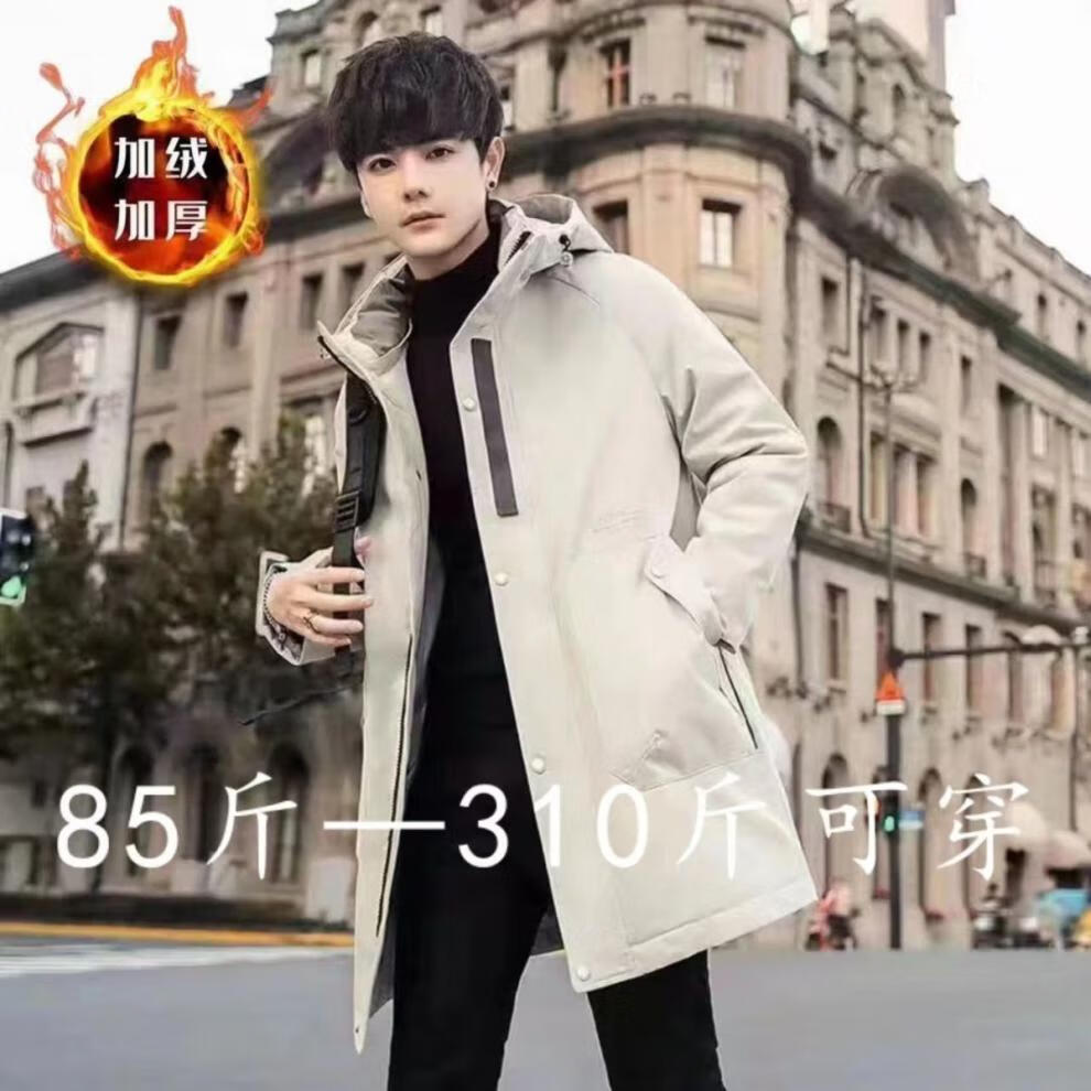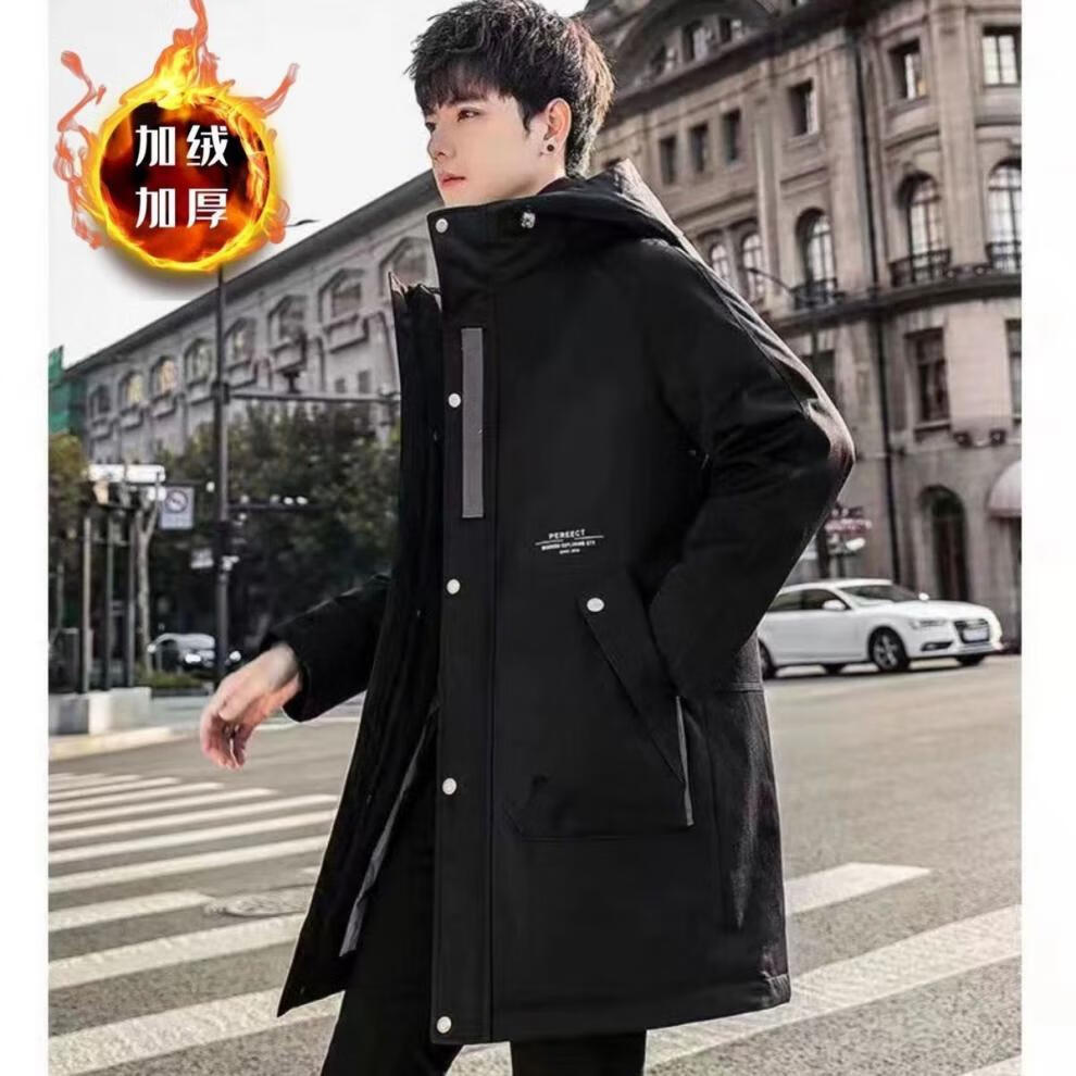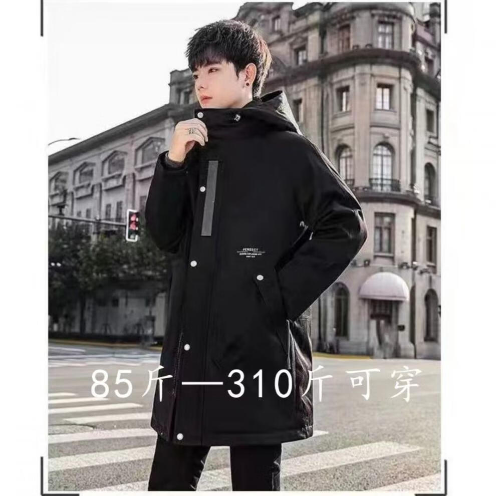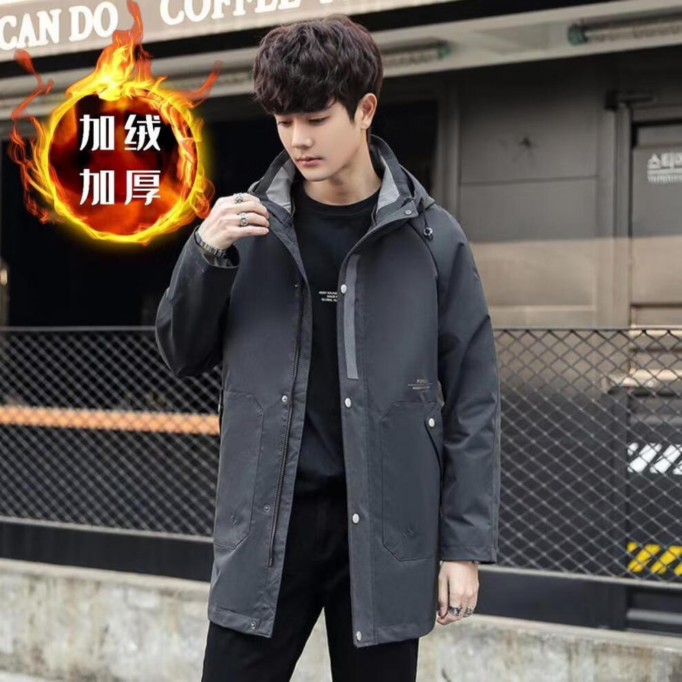 Playboy plus size plus size spring and autumn loose hooded college student casual winter fat trendy coat long men's windbreaker 621 black plus velvet 7XL wear 220-240Jin Jin is equal to 0.5 kg