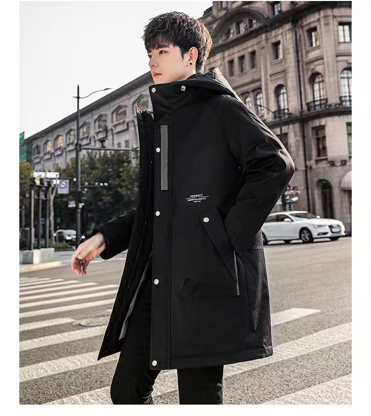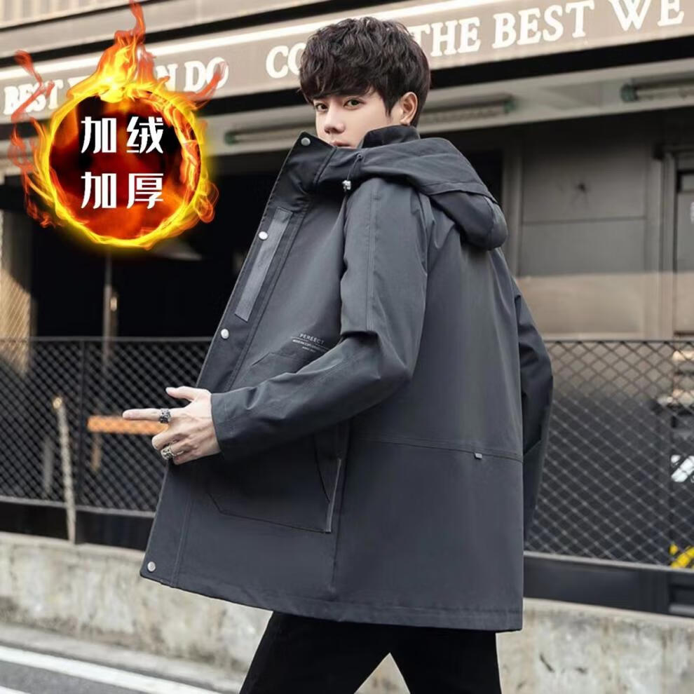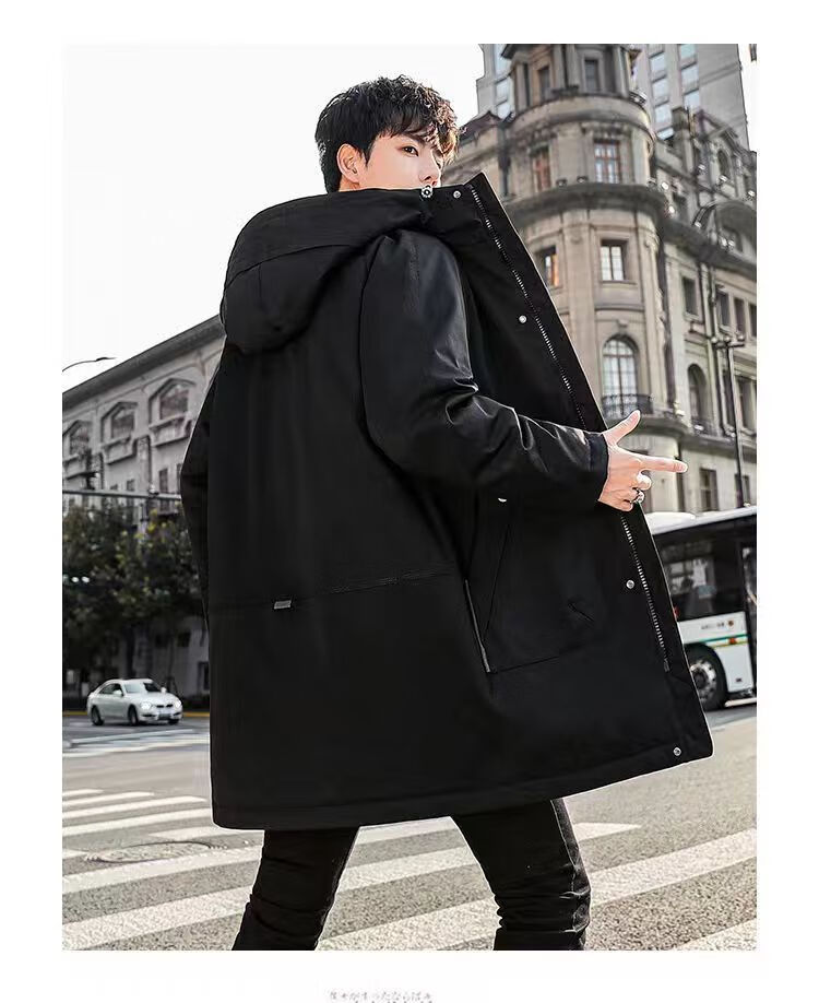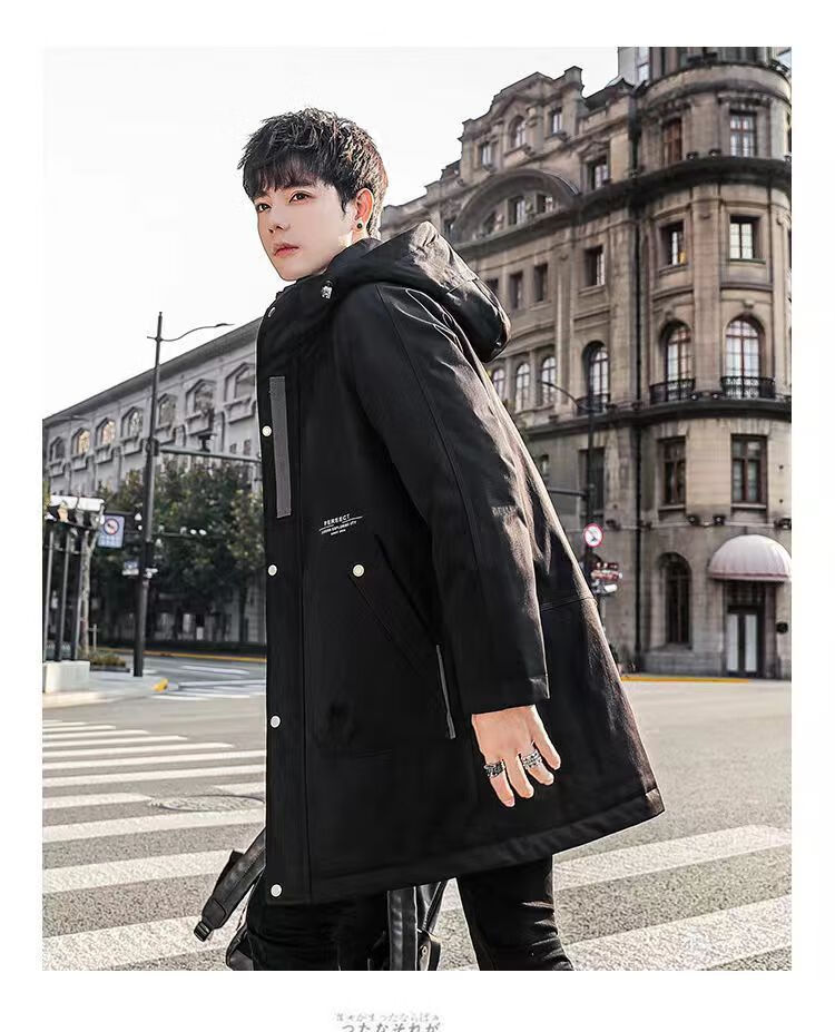 Playboy plus size plus size spring and autumn loose hooded college student casual winter fat trendy coat long men's windbreaker 621 black plus velvet 7XL wear 220-240Jin Jin is equal to 0.5 kg