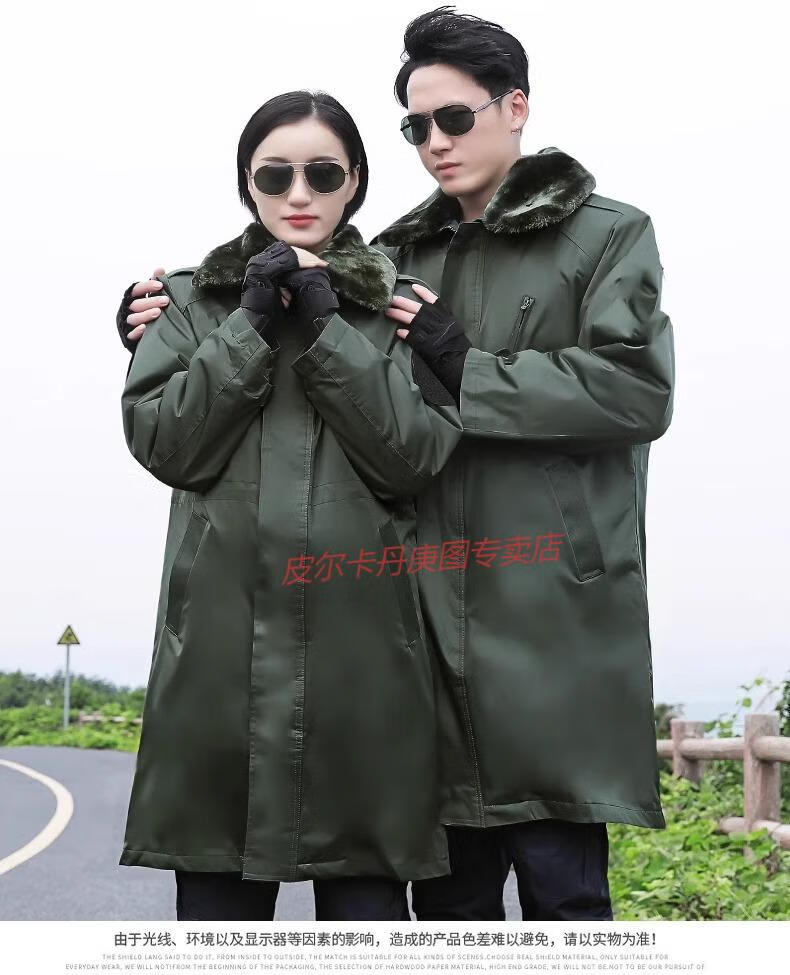 Pierre Cardin military coat men's winter thickened authentic Northeast Russia heavy-duty cold-proof green labor security cold storage cotton coat for women Army Green XL 175