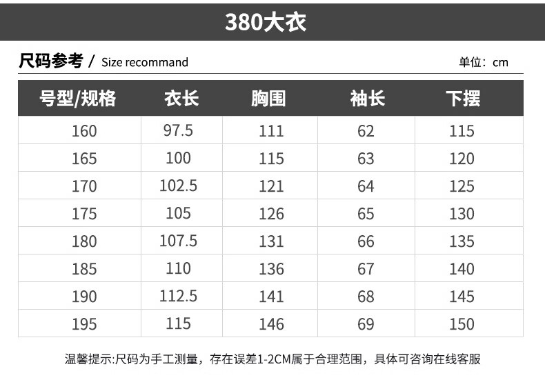China (cm) 165 / 88-90 170 / 96-98 175 / 108-110 180 / 118-122 185 / 126-130