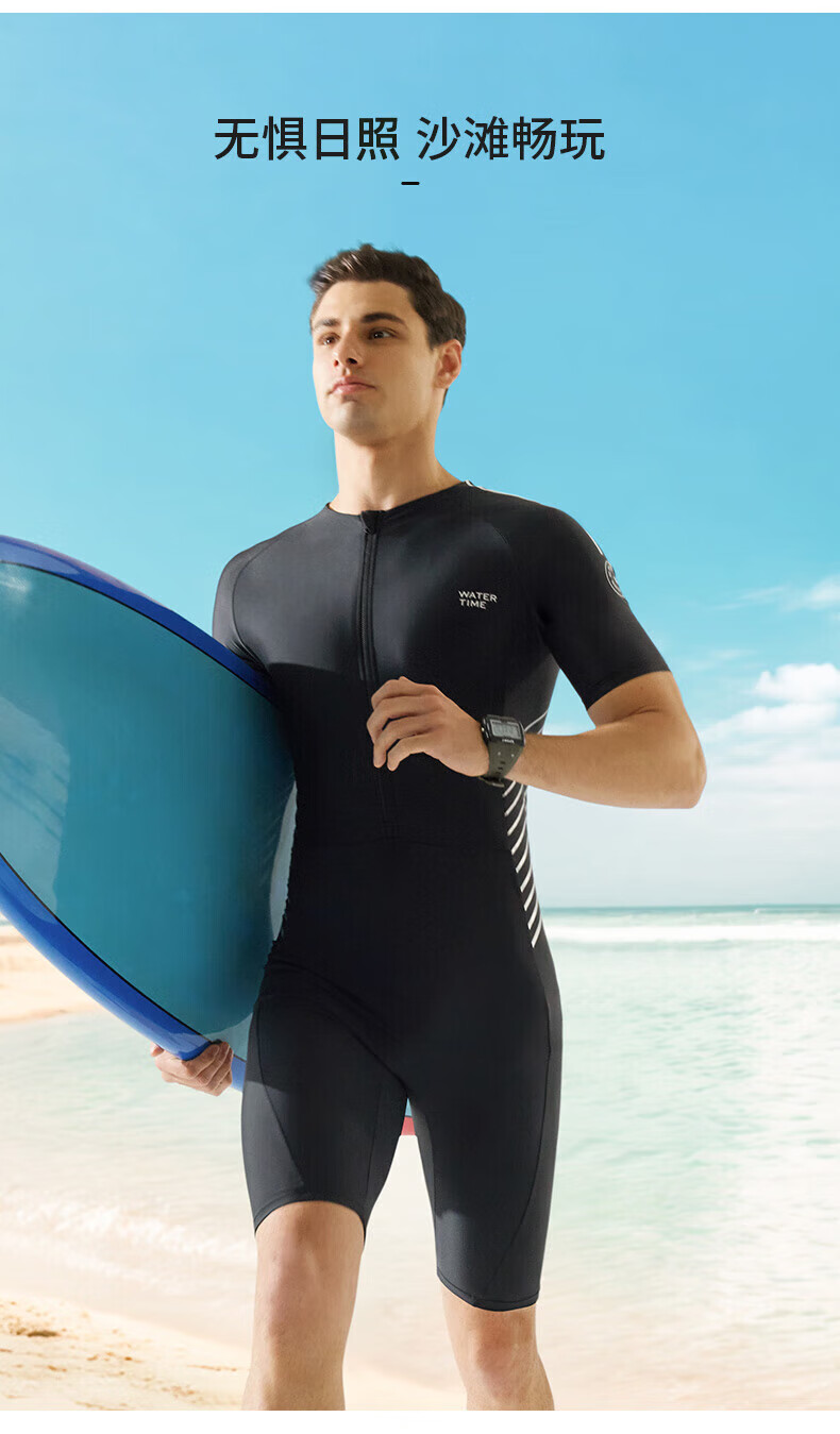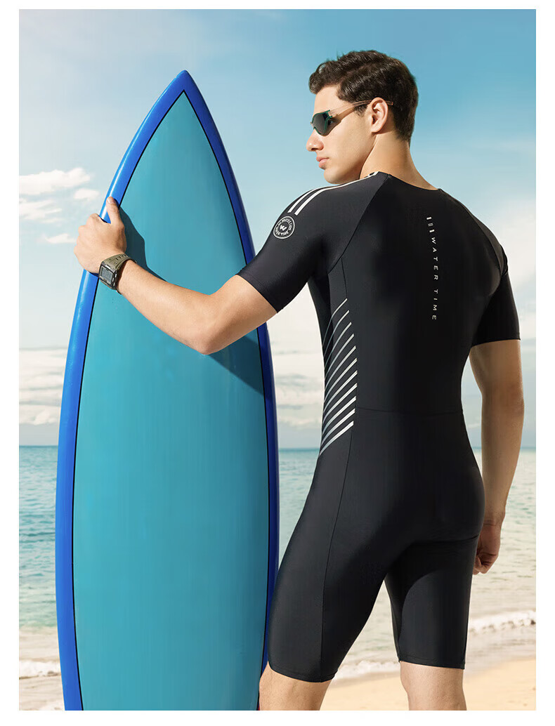 WATERTIME men's swimsuit and trunks one-piece short-sleeved wetsuit men's swimsuit black silver X M