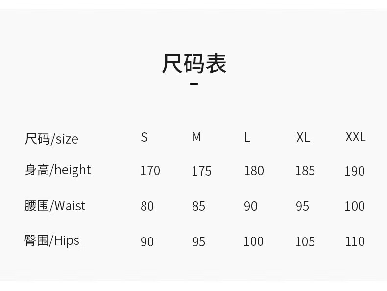 China (cm) 165 / 88-90 170 / 96-98 175 / 108-110 180 / 118-122 185 / 126-130