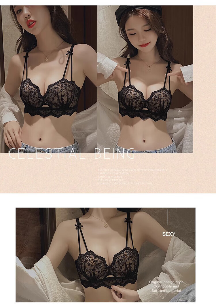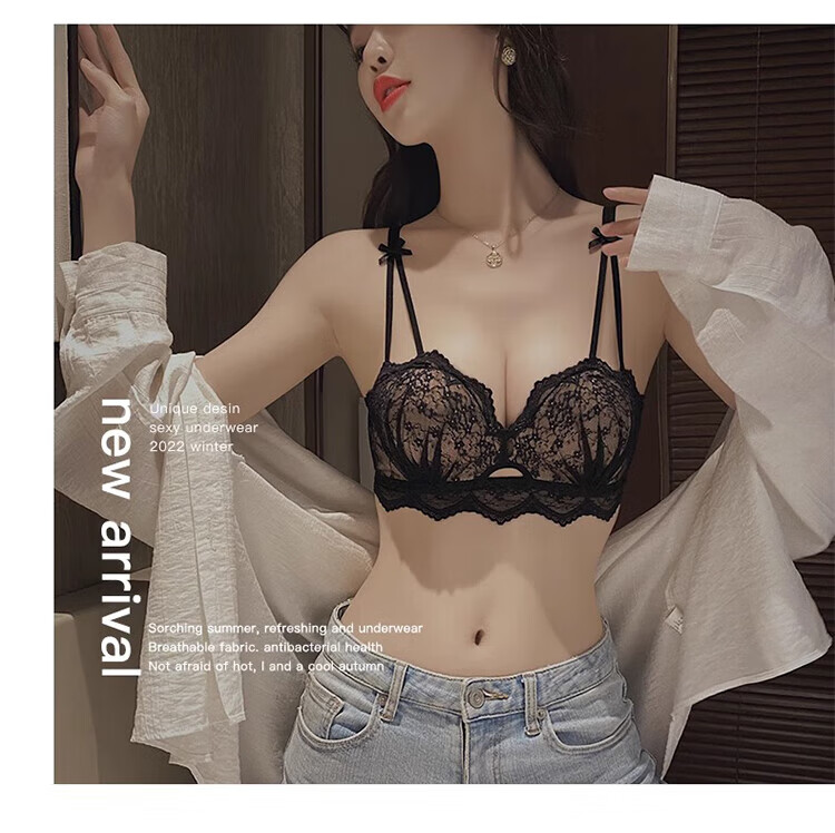 Victoria's Secret (Victoria's Secret) Victoria & aposs Secret underwear for women 2025 new small chest push-up flat chest shows big autumn and winter pure desire black single piece 75A 34B