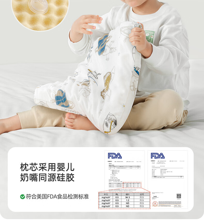 Betis baby pillow 6 months and above, pure cotton baby 1-3 years old, kindergarten children's silicone pillow, suitable for all seasons, colorful spotted fish, antibacterial and anti-mite, pillow height 3.5cm, 1-3 years old