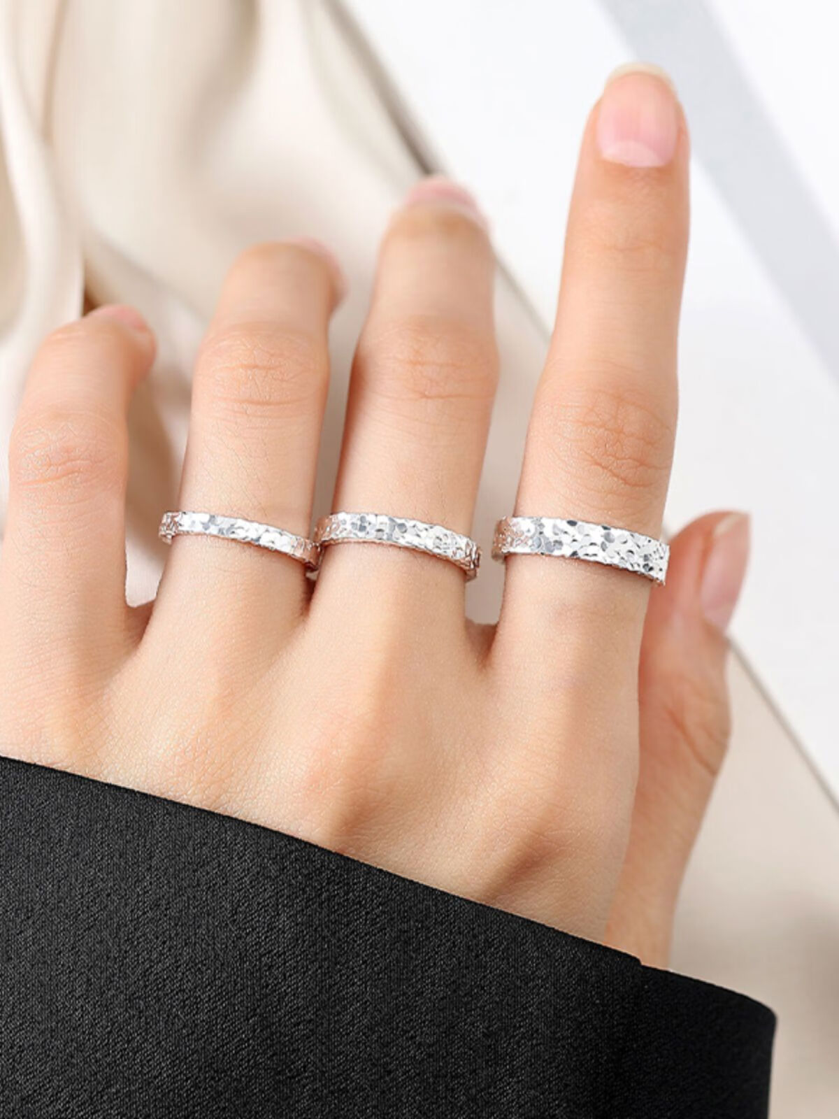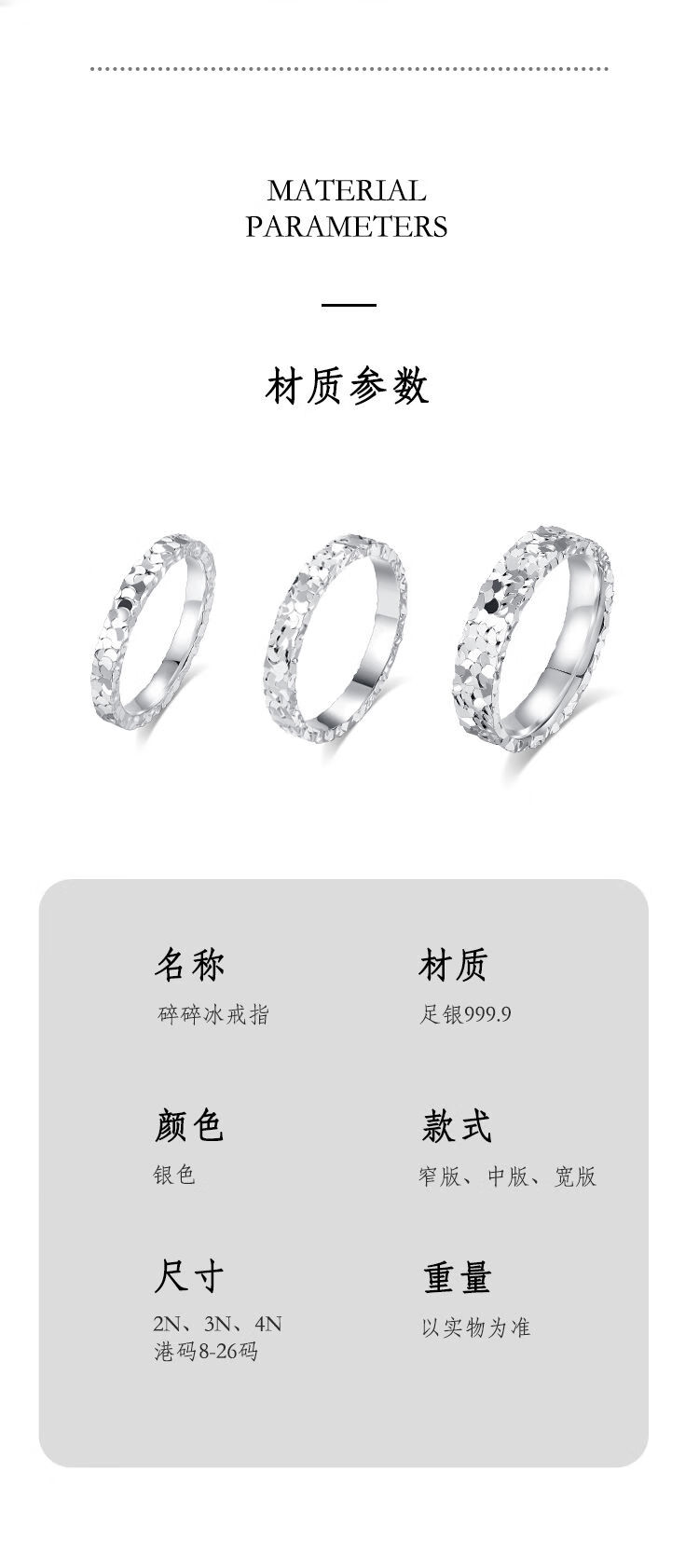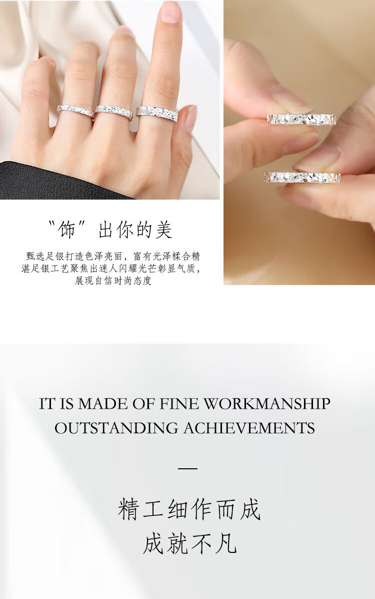 9999 sterling silver pure silver three-sided crushed ice couple ring men and women closed ring ring flash ring gift 4mm-crushed ice weighs about 3.5g Hong Kong code-18