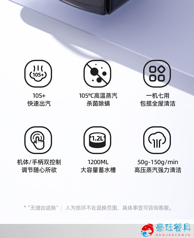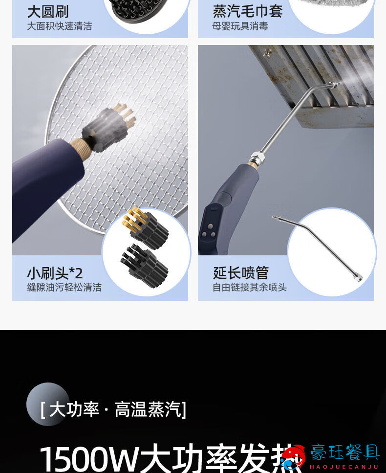 MDNG German imported quality steam cleaner household whole house multi-functional high temperature and high pressure cleaning All fabric air conditioning oil fume steam machine digital display handle double-cut model 1.2L sink/7 brush heads/6 gears 1