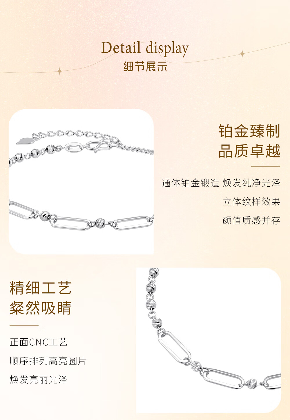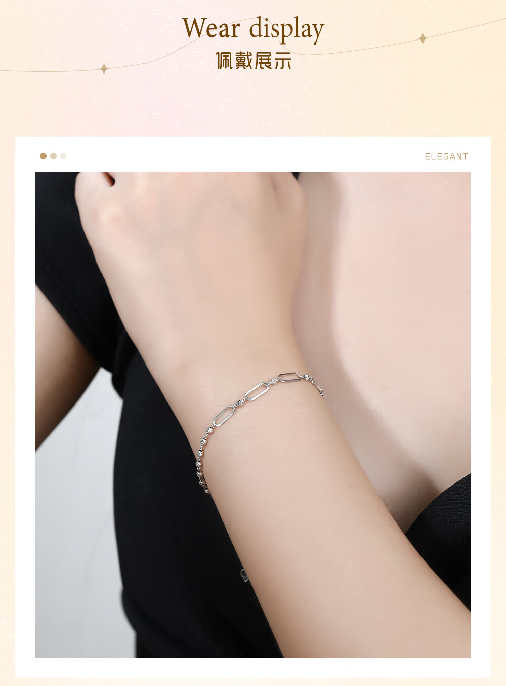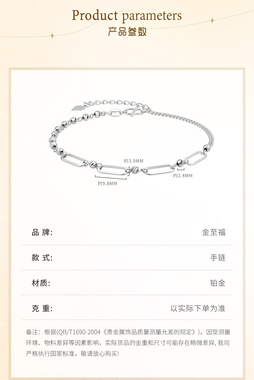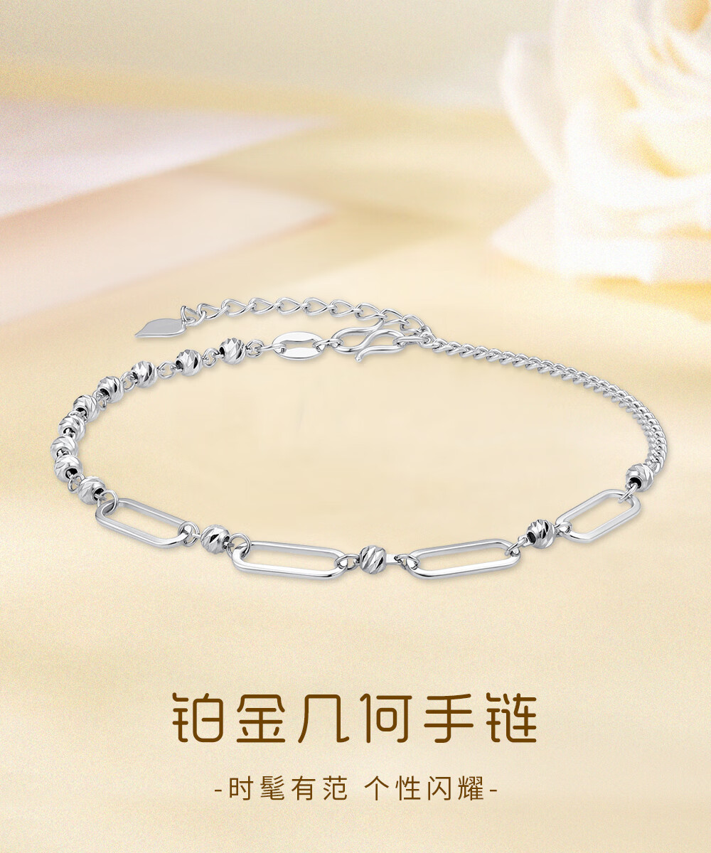 Jinzhifu Geometric Platinum Bracelet for Women PT950 Platinum Women's Chain for Wife, Girlfriend, Valentine's Day, Birthday, Mid-Autumn Festival Gift for Women, About 3.4 grams (refund more, make up less)