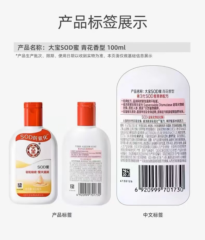 Dabao SOD Honey Moisturizing Facial Cream Moisturizing Women's Lotion Autumn Body Lotion Winter Men's Skin Care Face 200ml Genuine 100ml Buy One Get One Free Get 2 Bottles