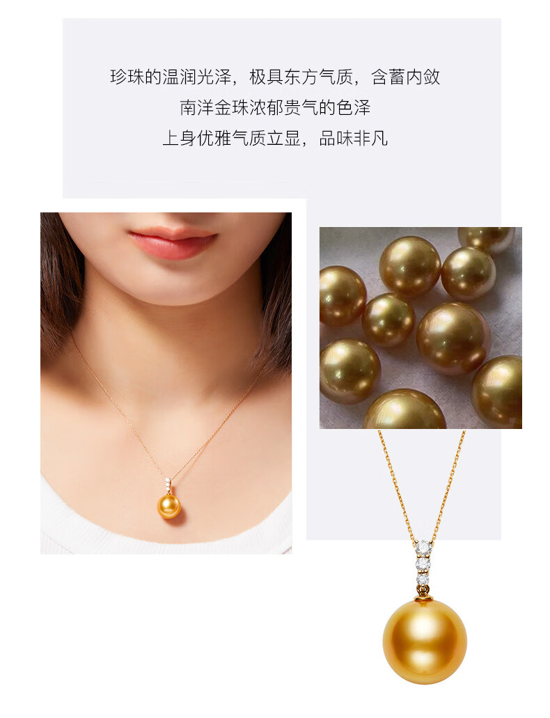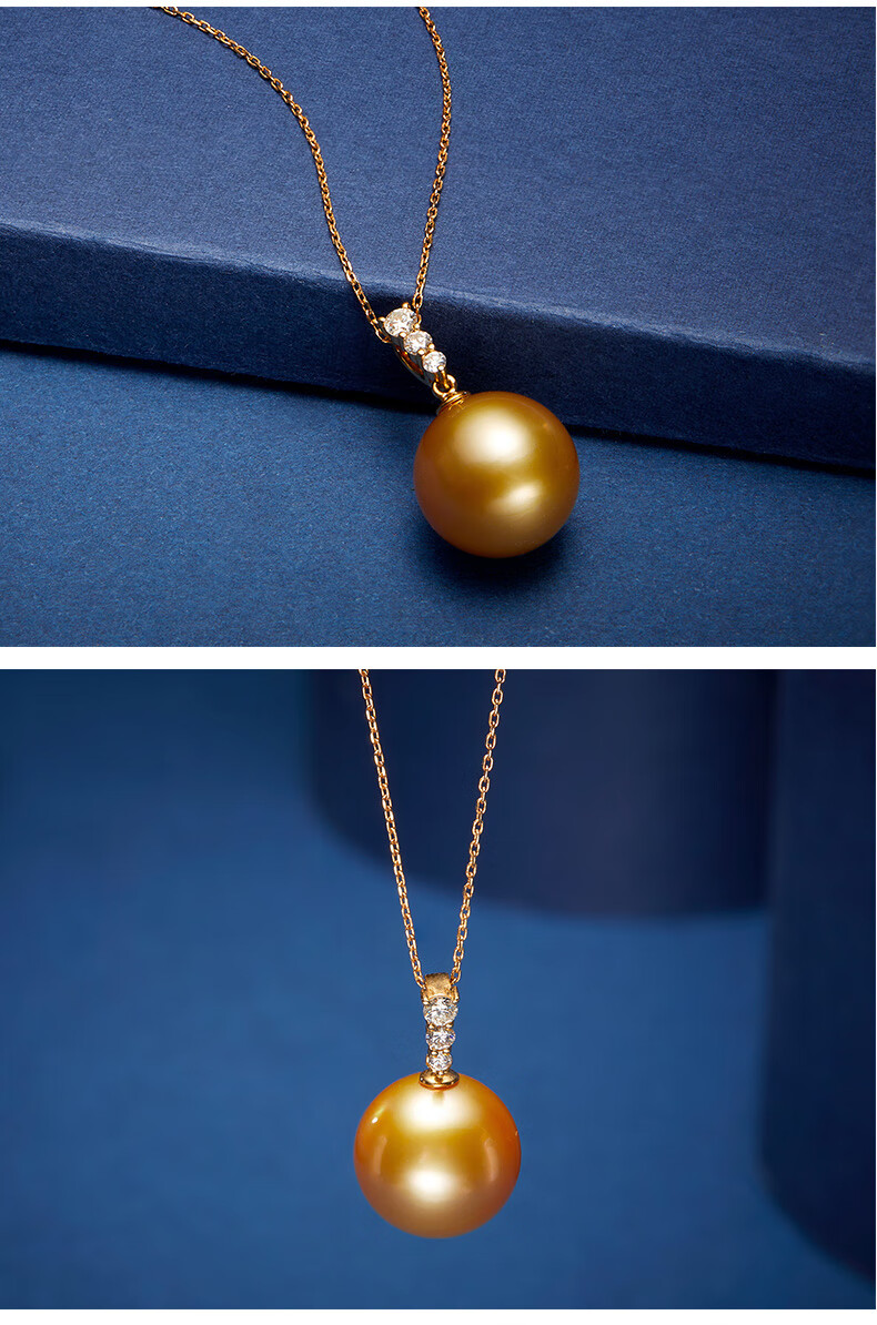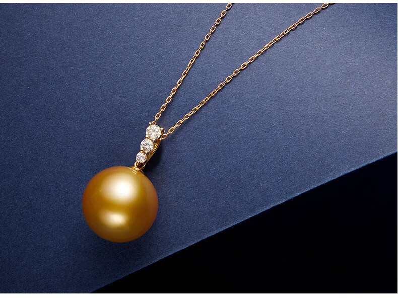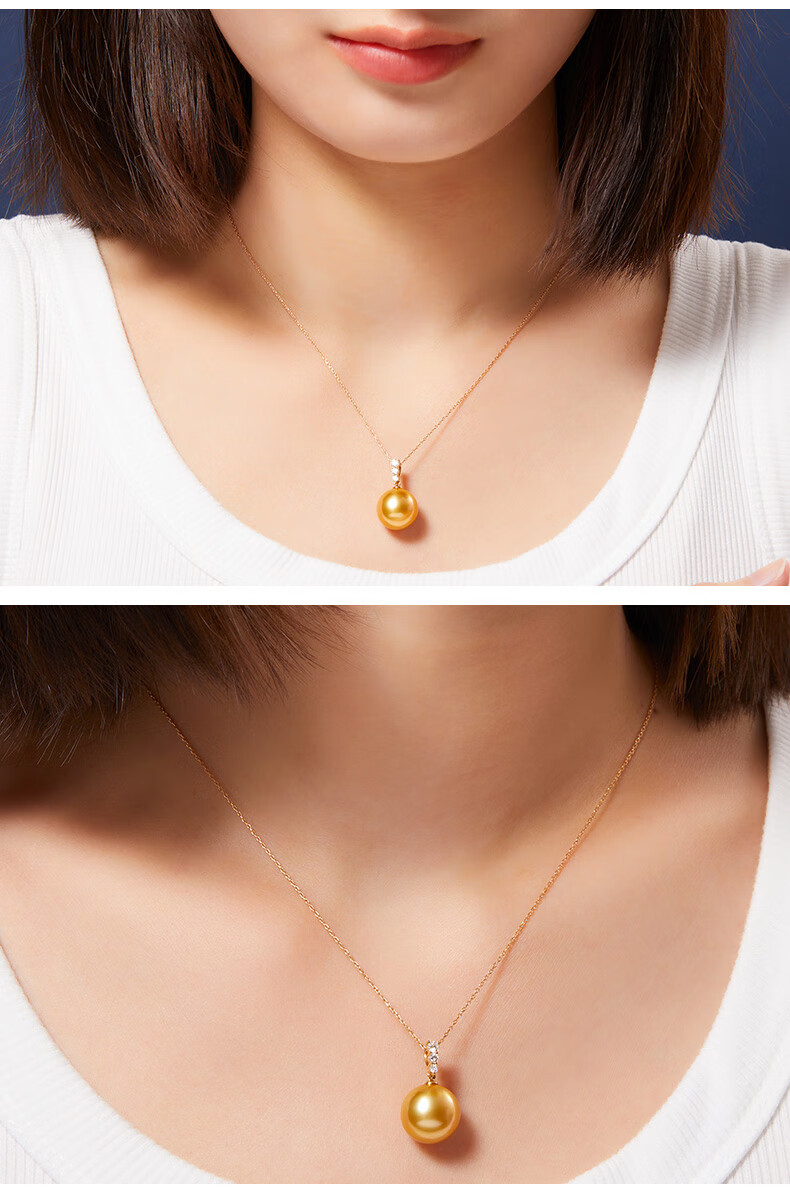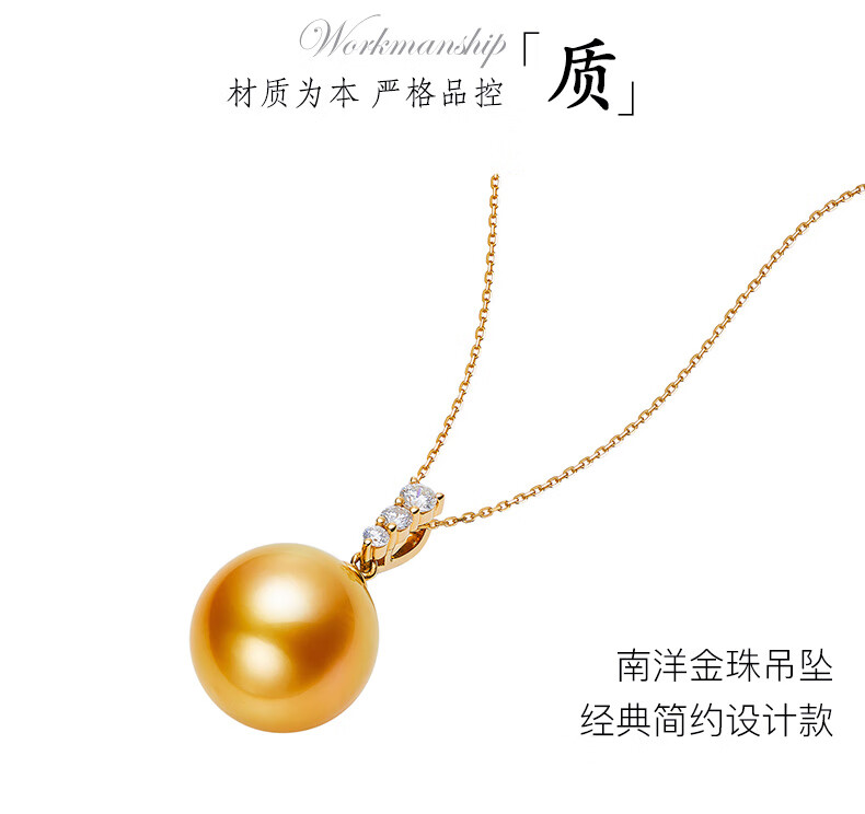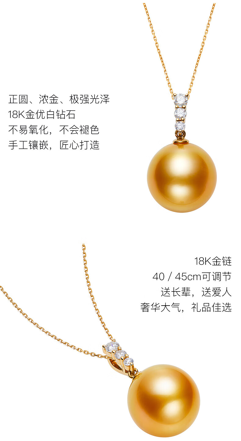 Weiyang Nanyang Gold Pearl Seawater Pearl Diamond Pendant Necklace for Women Perfect Round Thick Gold Gift for Elders 13-14mm Pendant with Chain