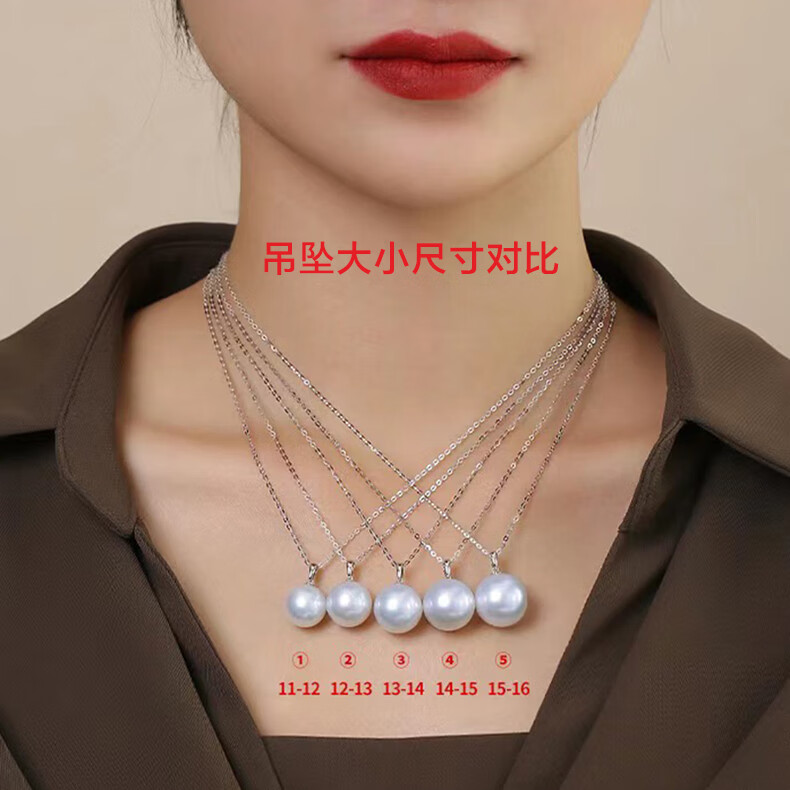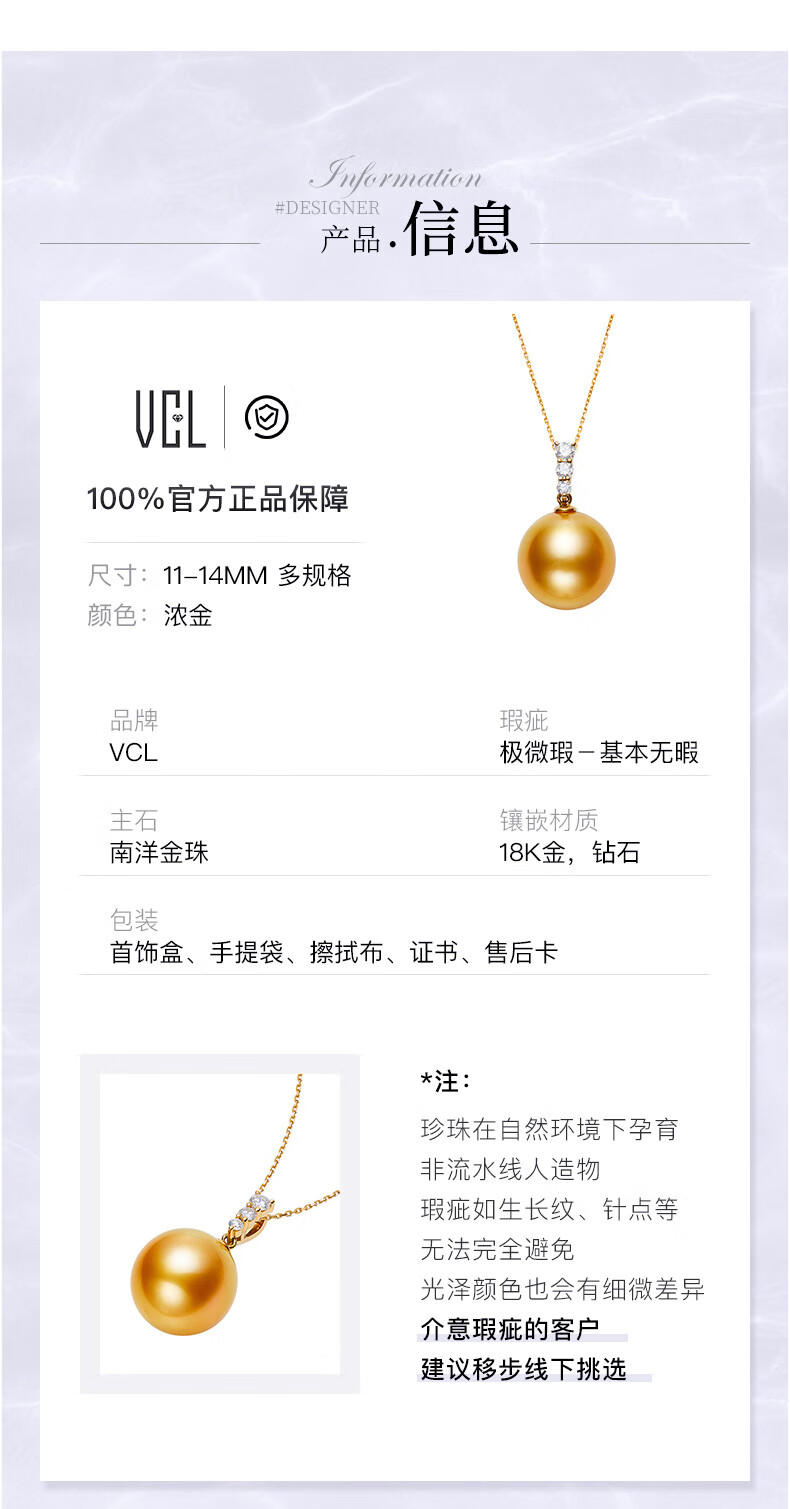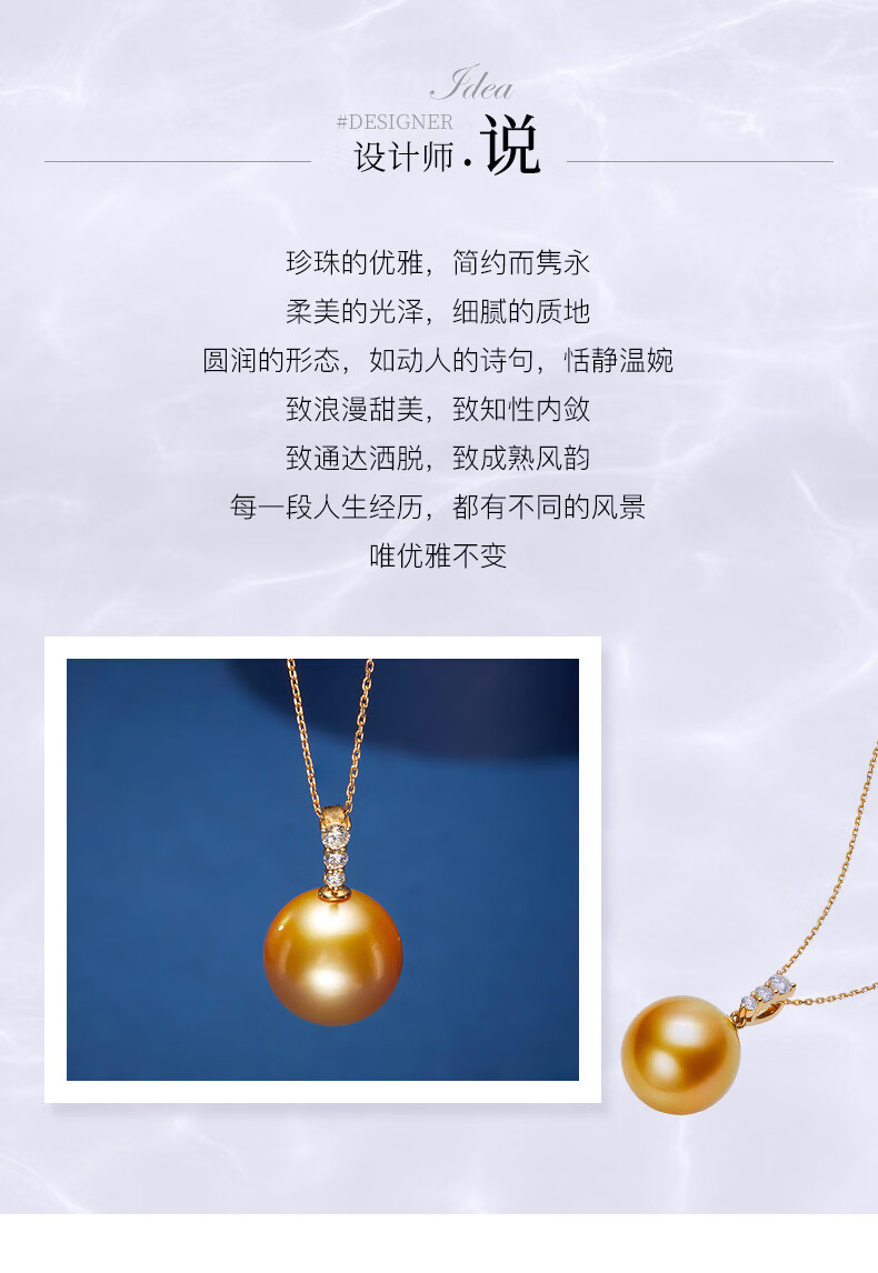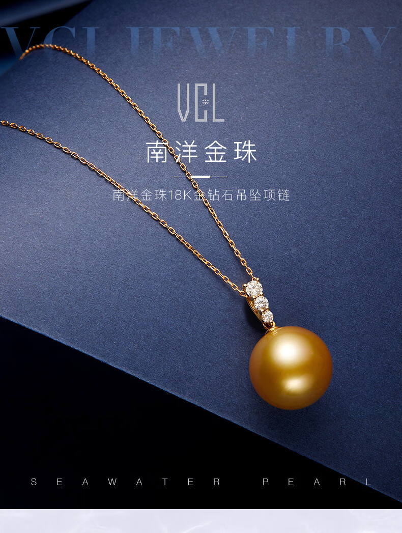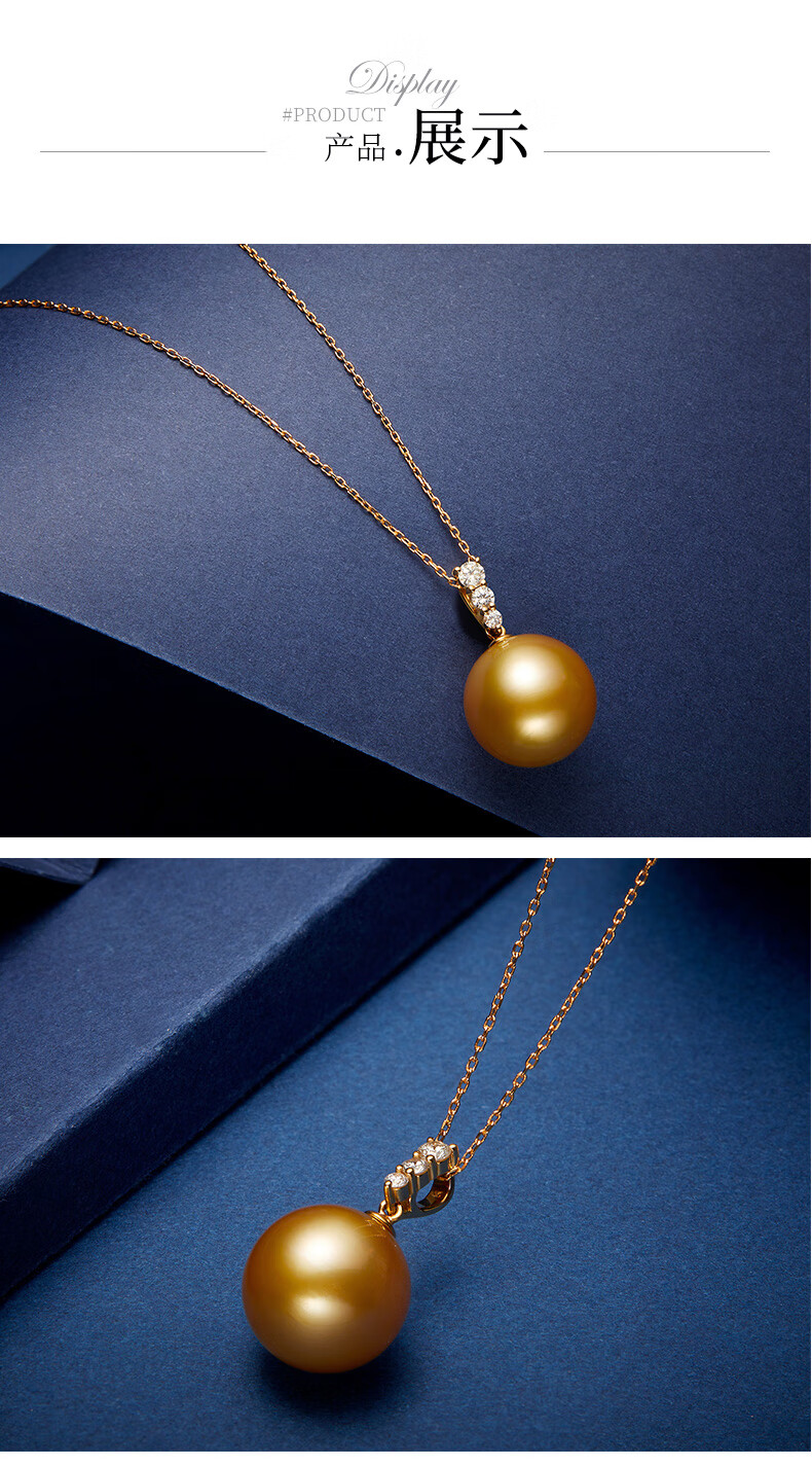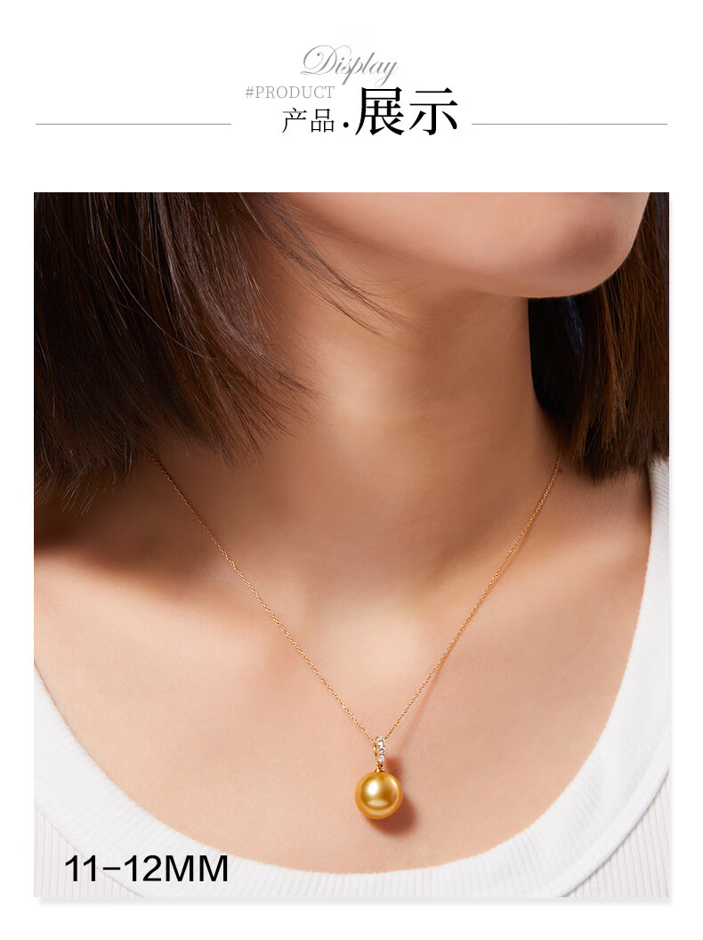 Weiyang Nanyang Gold Pearl Seawater Pearl Diamond Pendant Necklace for Women Perfect Round Thick Gold Gift for Elders 13-14mm Pendant with Chain