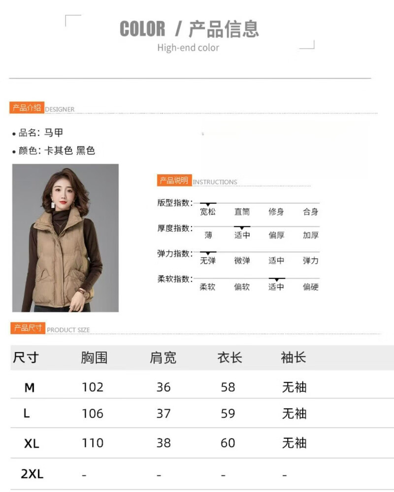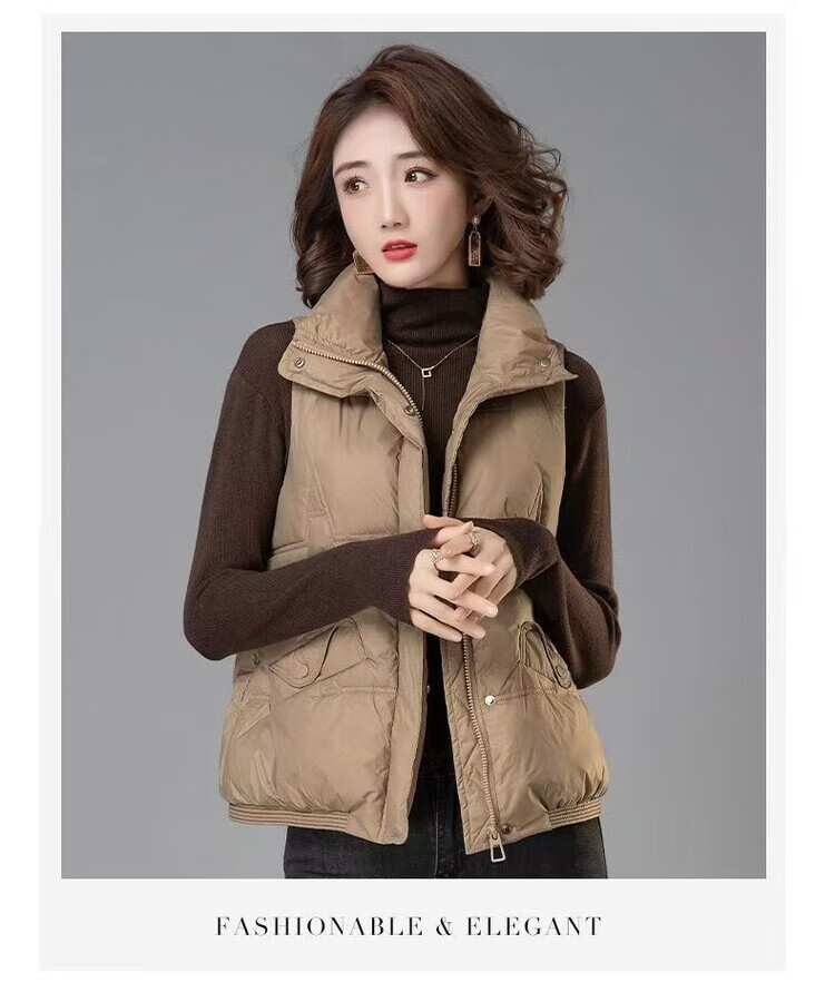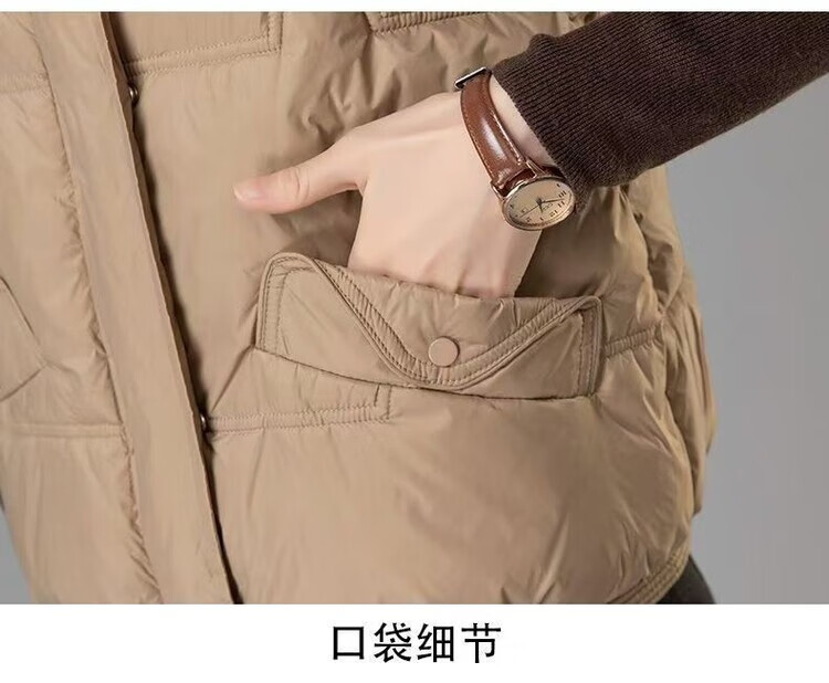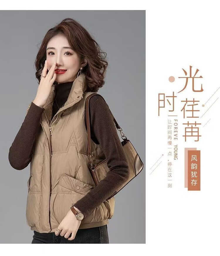 Hengyuanxiang 2025 Winter Down Cotton Korean Style Stand Collar Vest New Mom Fashion Loose Warm Thickened Outer Jacket Khaki XL