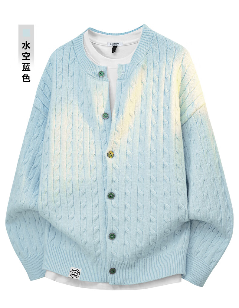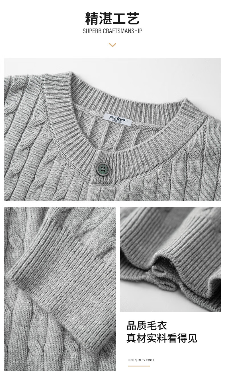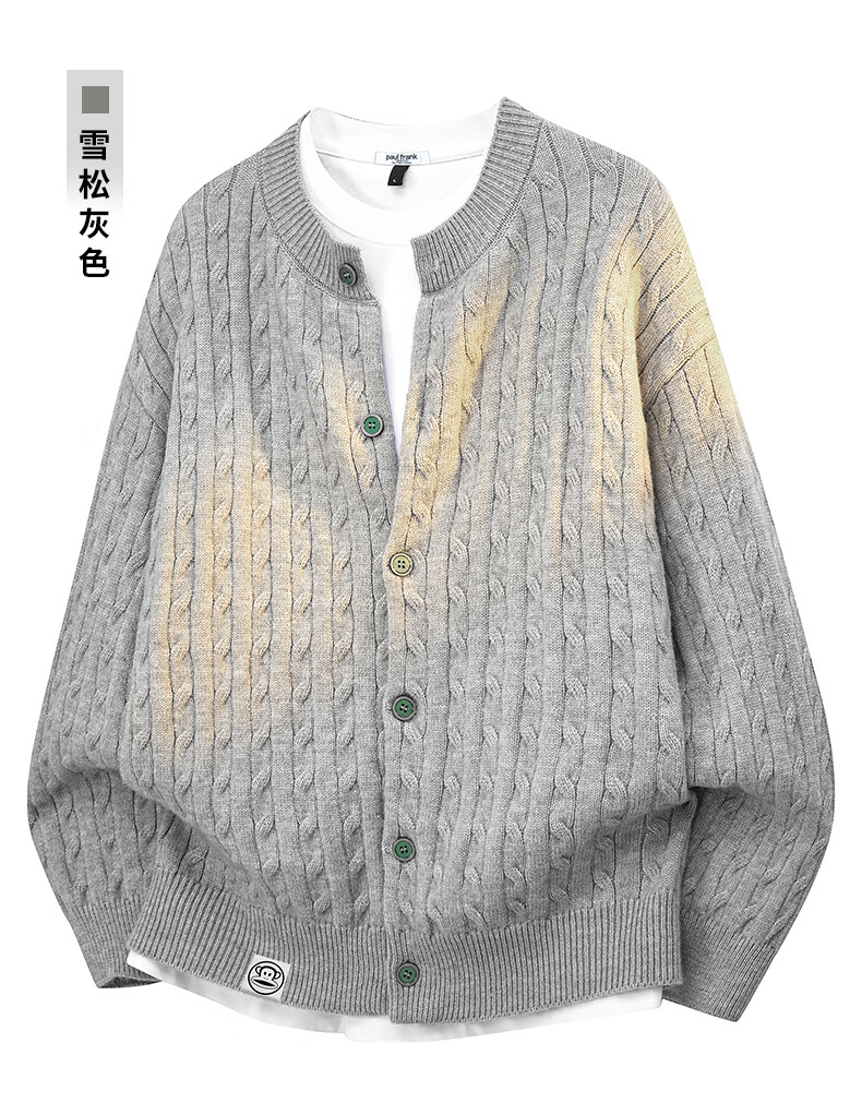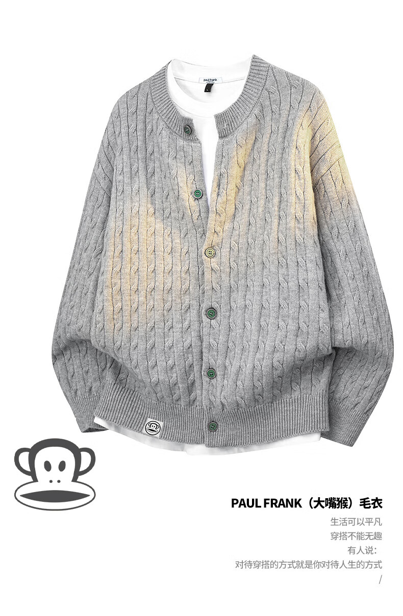 Paul Frank Warm Sweater Men's Autumn and Spring Couple New Knitted Cardigan Round Neck Casual Long-Sleeved Jacket Online Clothes Cedar Gray Official Genuine L Recommended 120-140 Jin Jin equals 0.5 kg