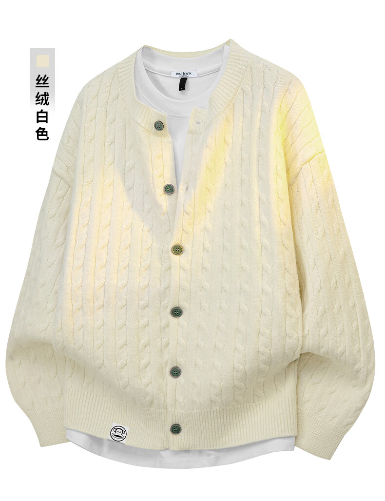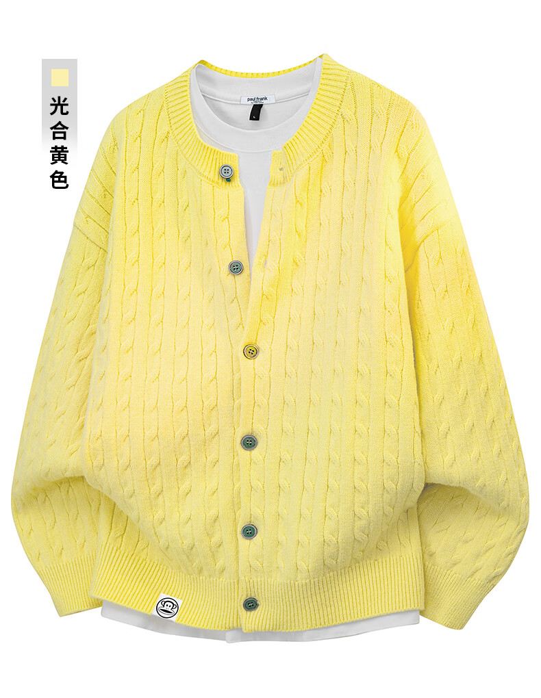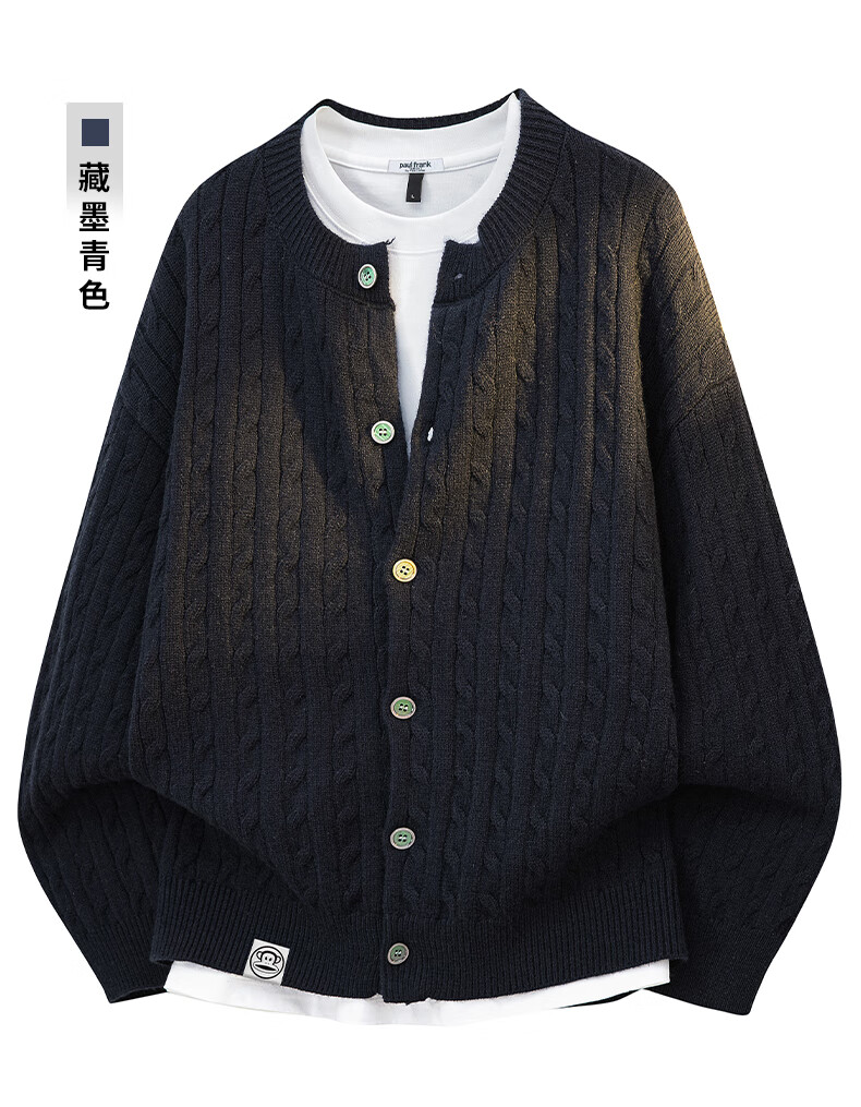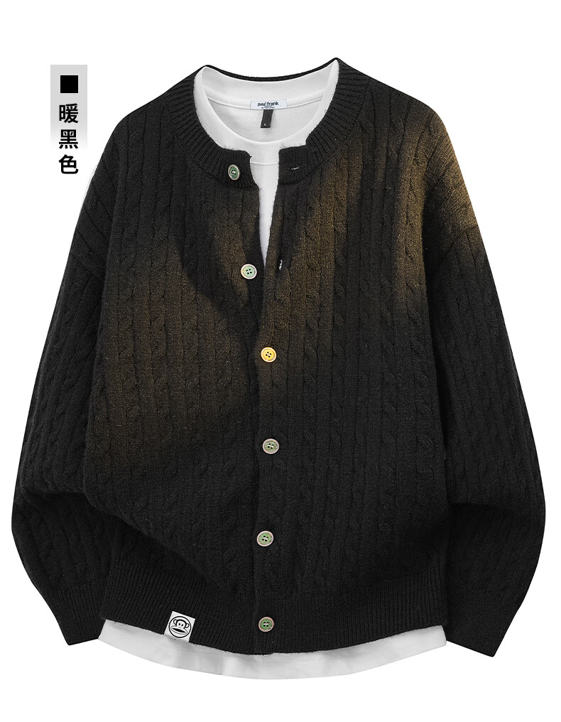 Paul Frank Warm Sweater Men's Autumn and Spring Couple New Knitted Cardigan Round Neck Casual Long-Sleeved Jacket Online Clothes Cedar Gray Official Genuine L Recommended 120-140 Jin Jin equals 0.5 kg