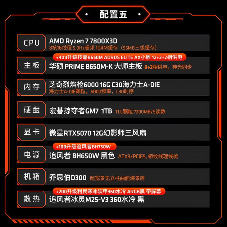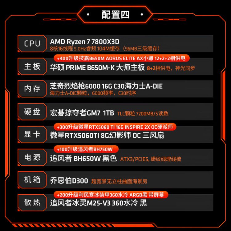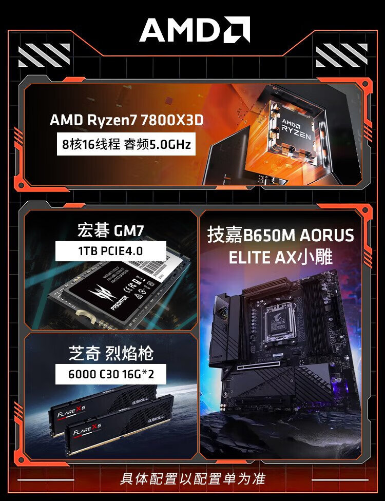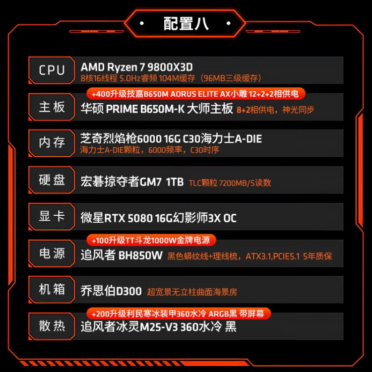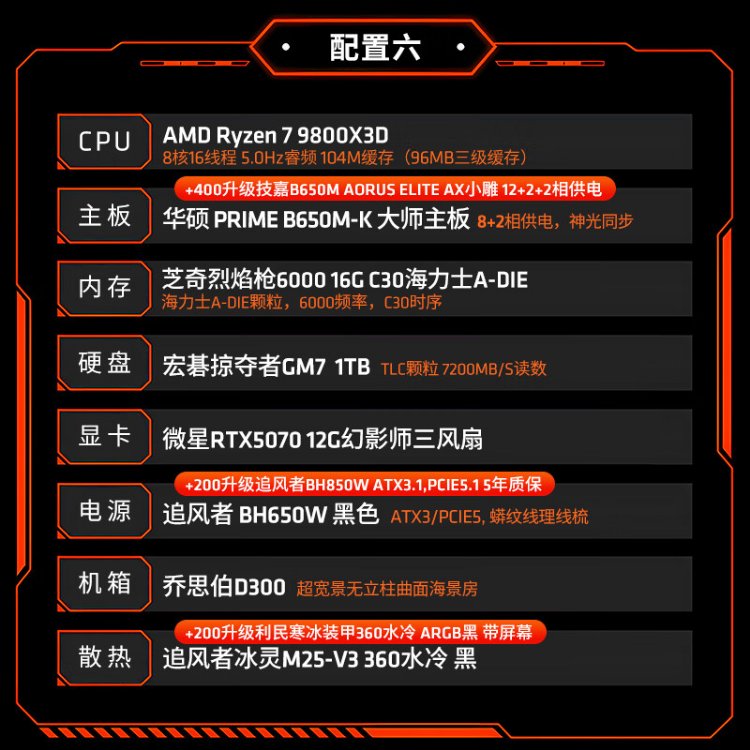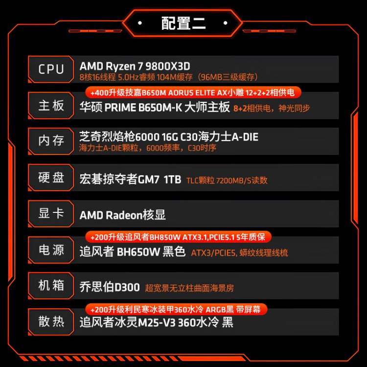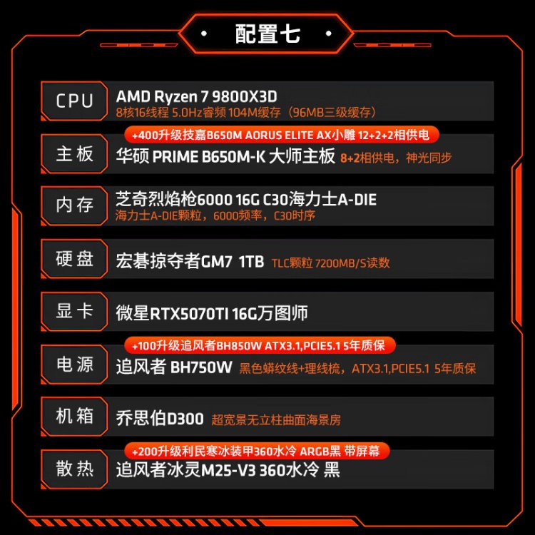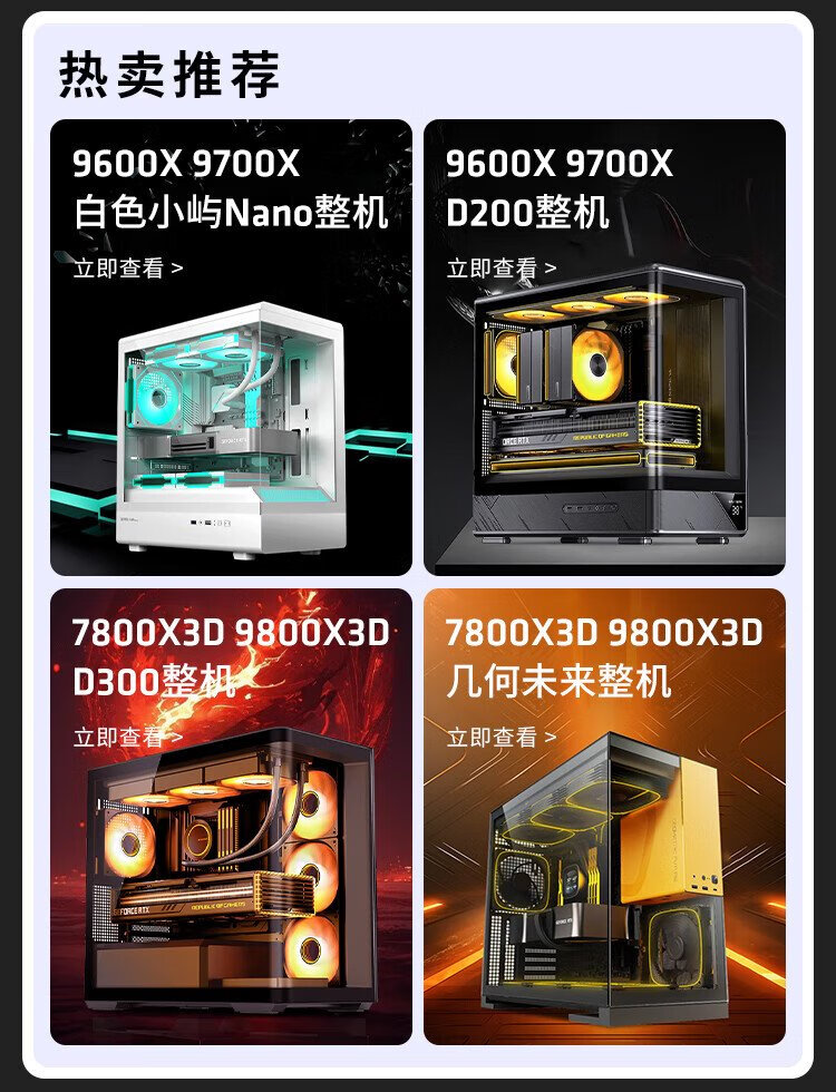 AMD Ryzen 7800X3D 9800X3D/5060/5070 game console computer desktop assembly computer host DIY complete machine assembly machine D300 curved sea view room chassis configuration one 7800X3D/16G/1T