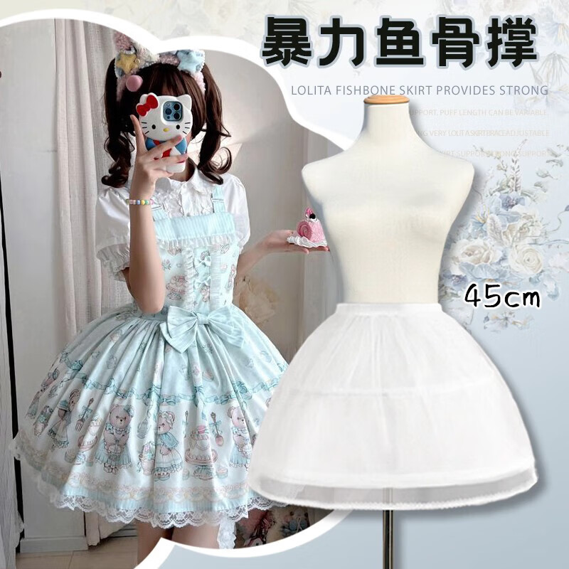 Yuyaman bustle with violent support and inner petticoat with adjustable mesh fishbone support and Lolita daily short skirt. White mesh fishbone support. One size fits all. Waist 60CM-90CM.