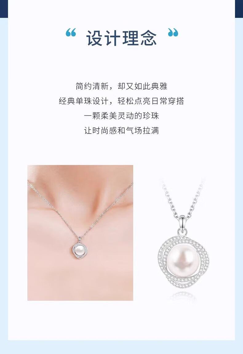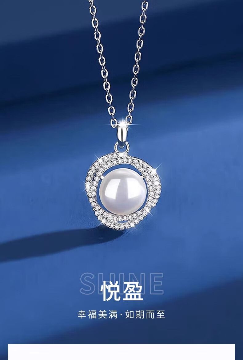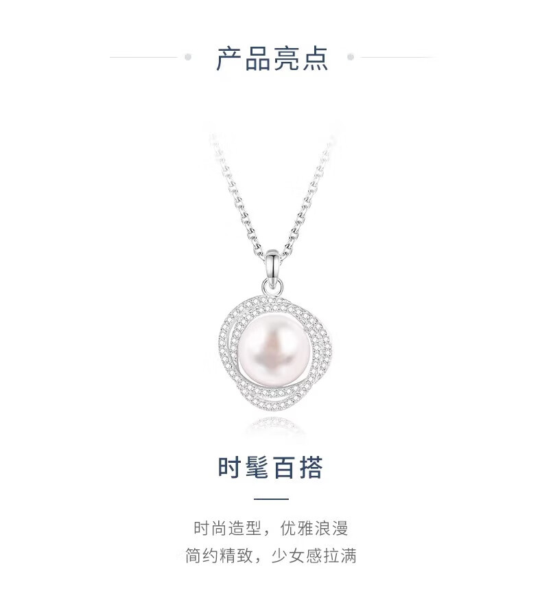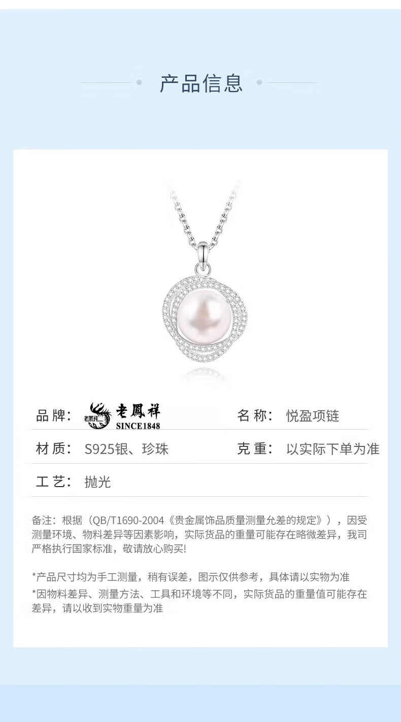 Lao Fengxiang Pearl Necklace for Women 925 Silver Freshwater Pearl Pendant Clavicle Chain Light Luxury Birthday Gift for Girlfriend and Wife Pearl Set Chain-925 Silver Brand Gift Box
