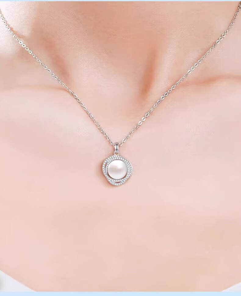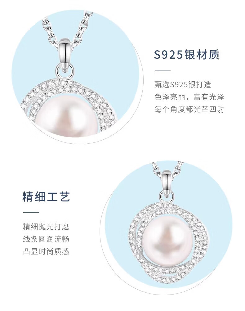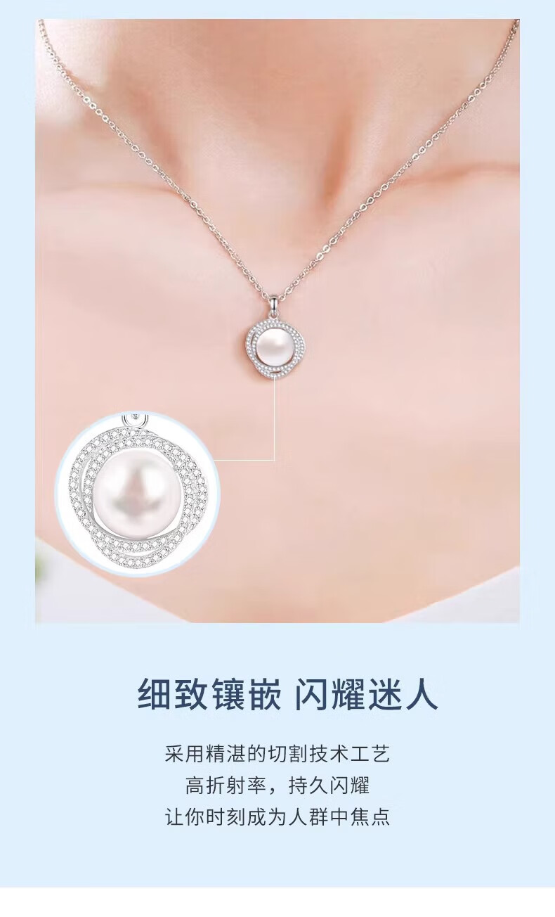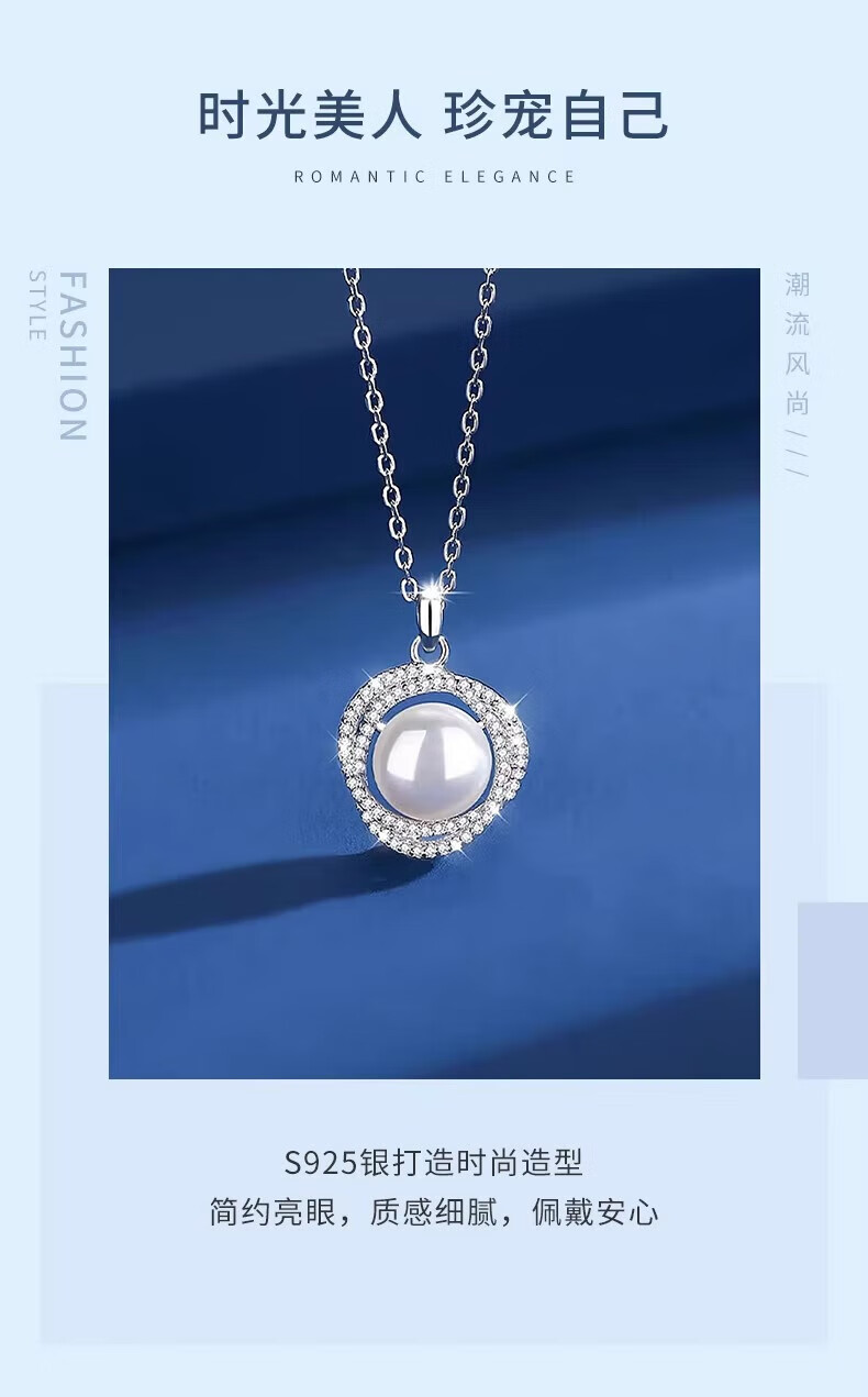 Lao Fengxiang Pearl Necklace for Women 925 Silver Freshwater Pearl Pendant Clavicle Chain Light Luxury Birthday Gift for Girlfriend and Wife Pearl Set Chain-925 Silver Brand Gift Box