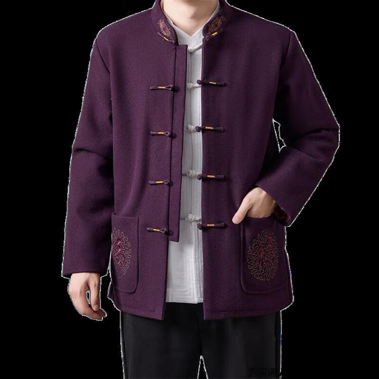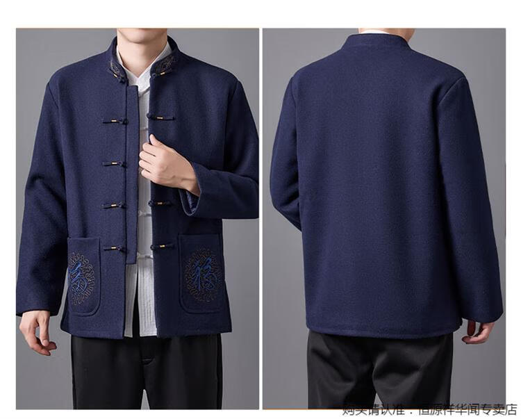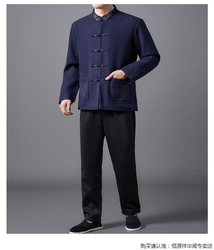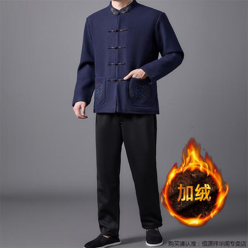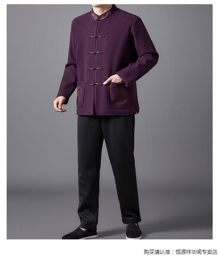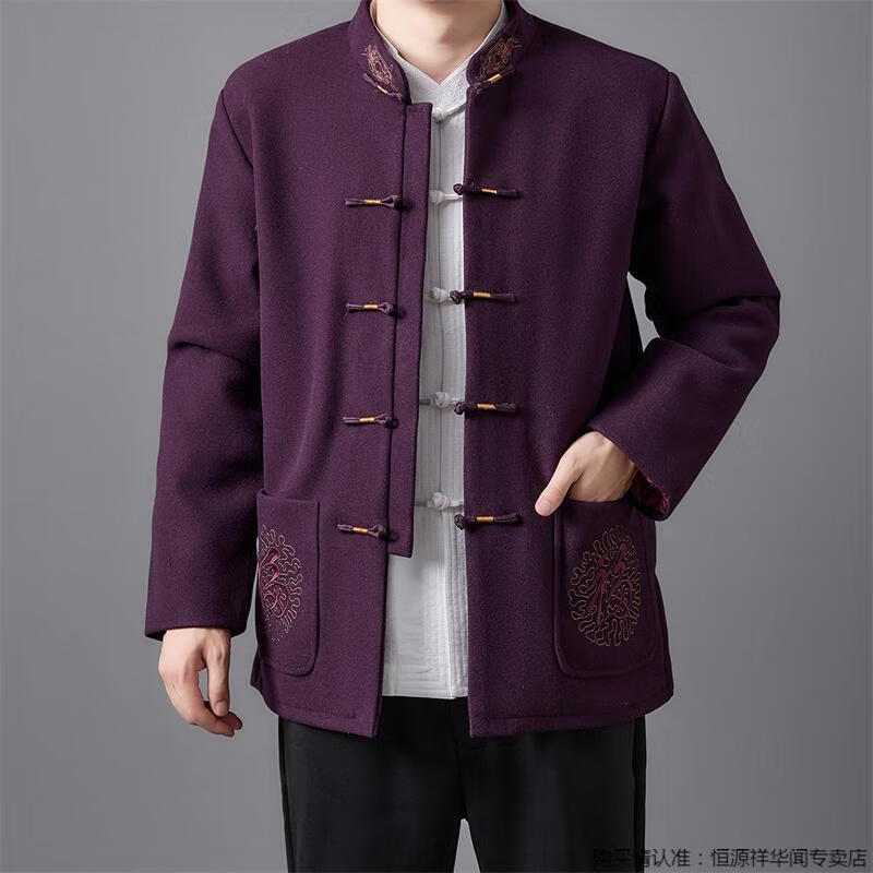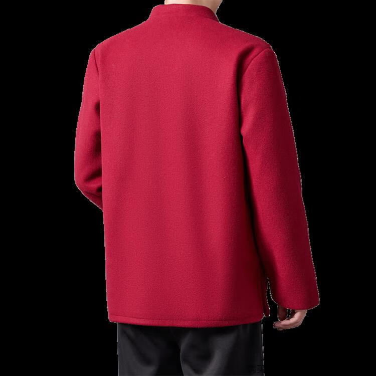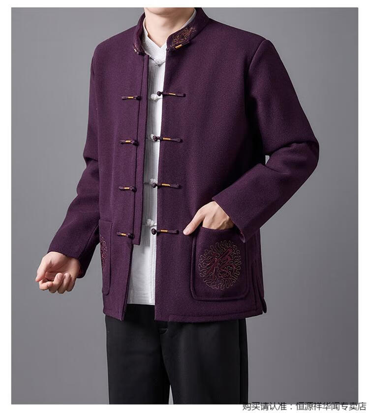 Hengyuanxiang high-end Tang suit men's middle-aged and elderly dad's suit plate buckle embroidered woolen coat elderly embroidered autumn and winter grandpa suit red XL 175