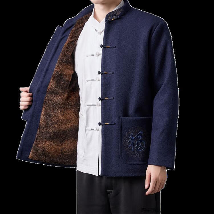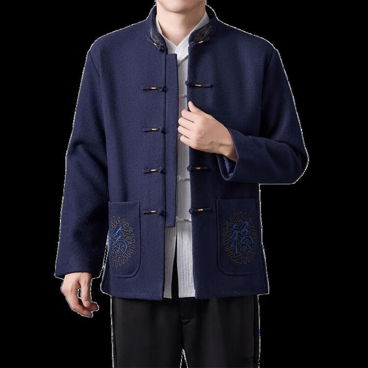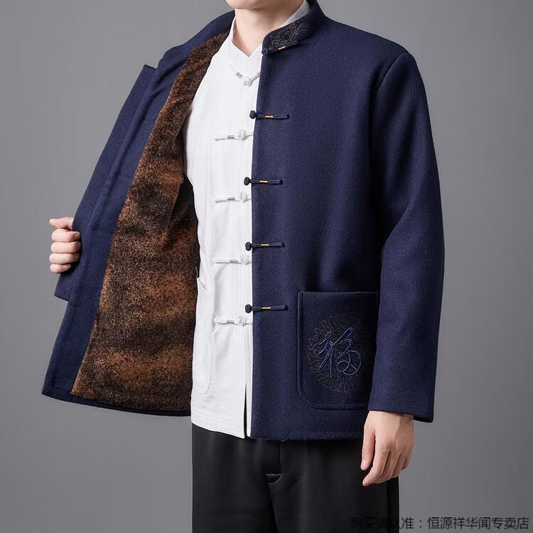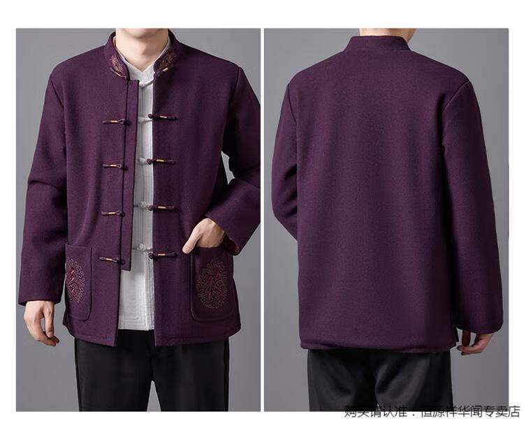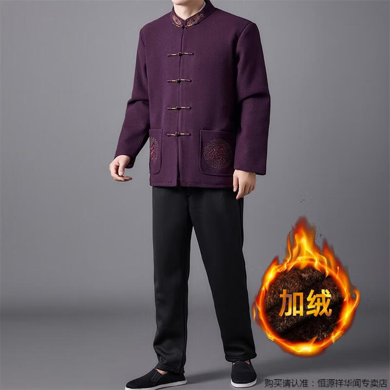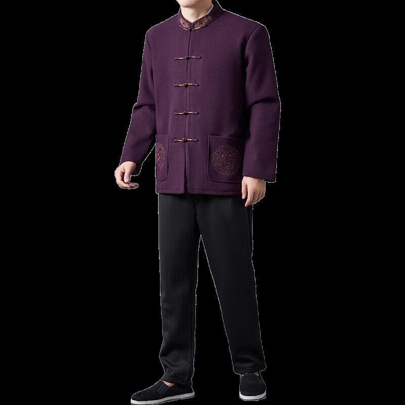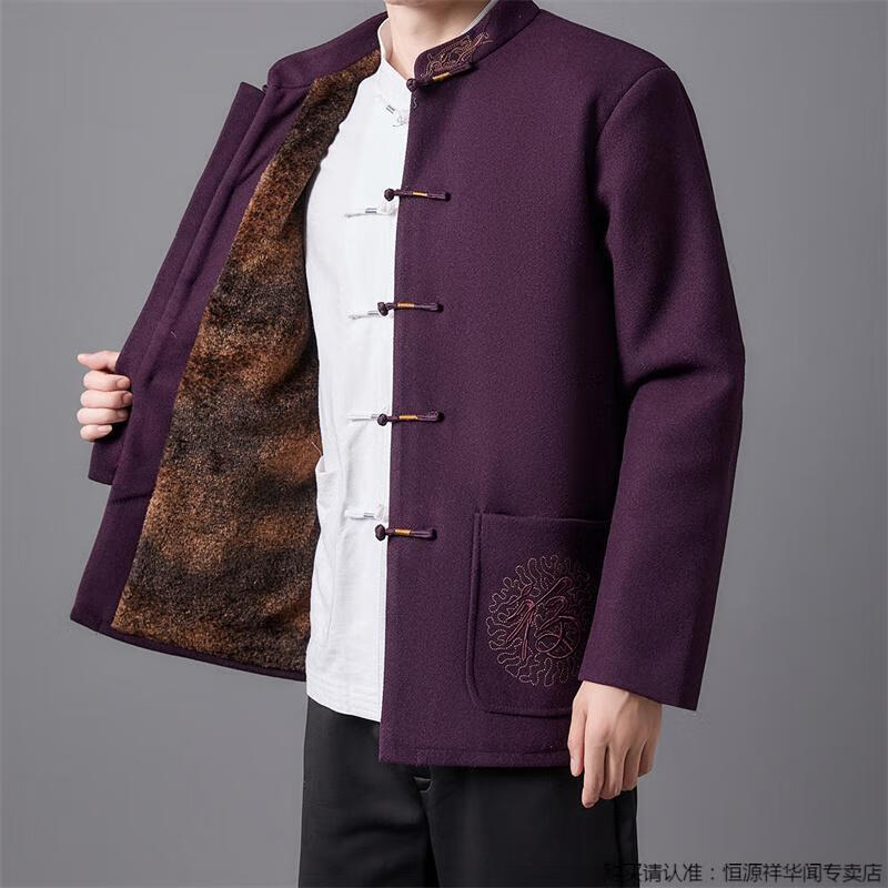 Hengyuanxiang high-end Tang suit men's middle-aged and elderly dad's suit plate buckle embroidered woolen coat elderly embroidered autumn and winter grandpa suit red XL 175