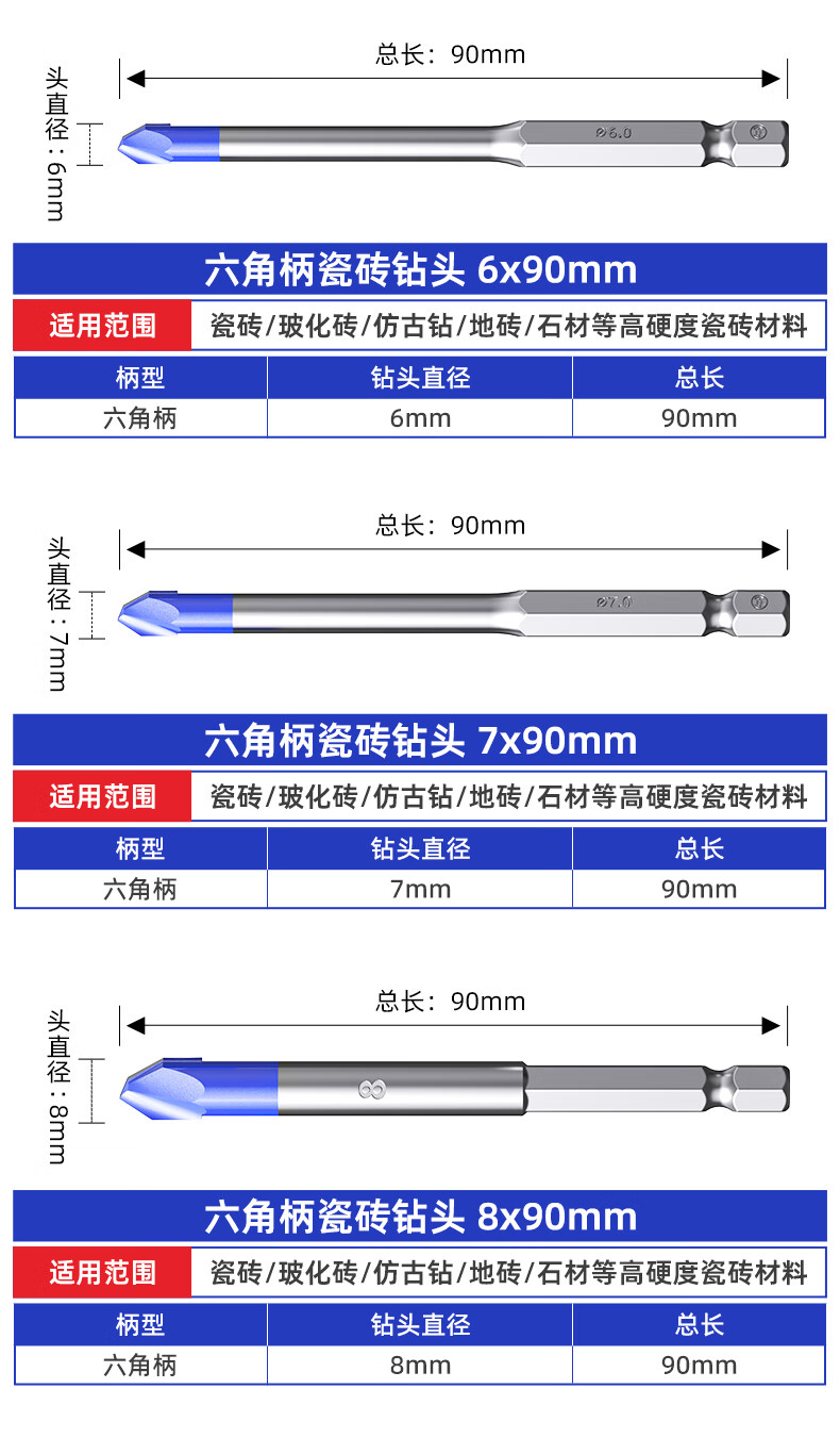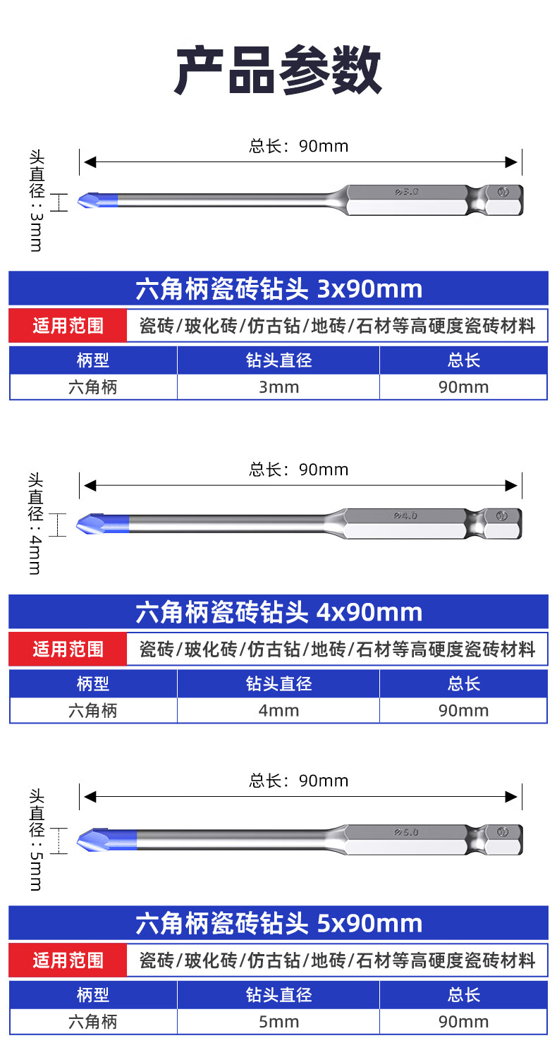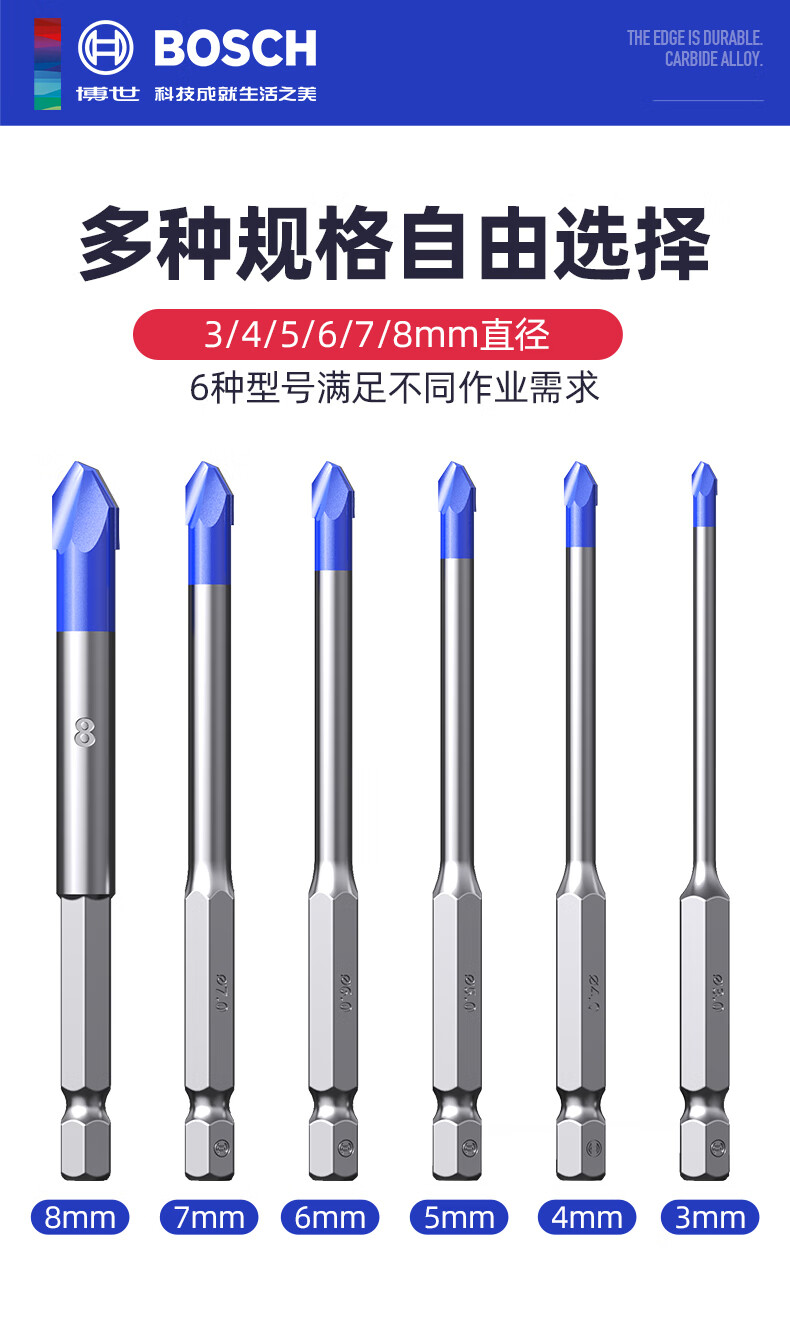 Bosch (BOSCH) Bosch tile drill bit for drilling concrete, super-hard tilted head ceramic eccentric drill cement wall triangle drill tile special corner handle hard tile drill bit set 3456