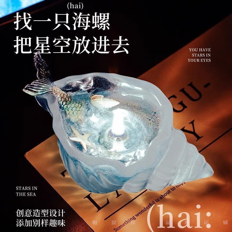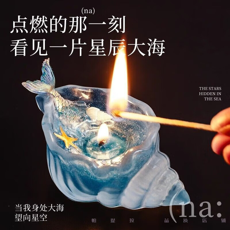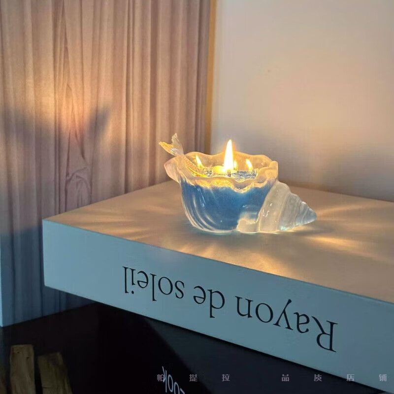 USER JOYins Aromatherapy Transparent Conch Candle Ornament New Fish Tail Bestie Girlfriend Birthday Graduation Marine Element Gift Deep Sea Blue Large Small Blue-Fish Tail Conch