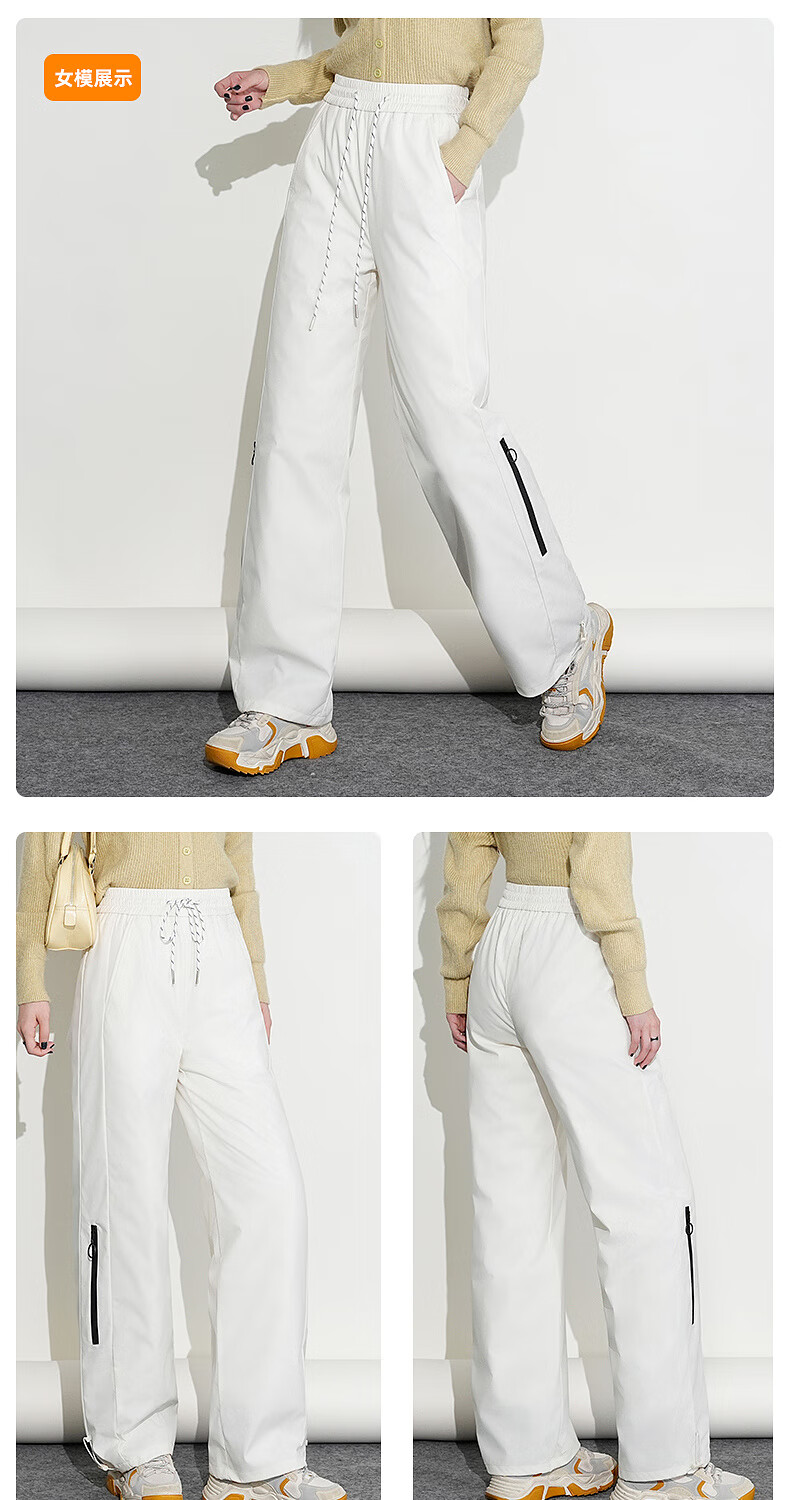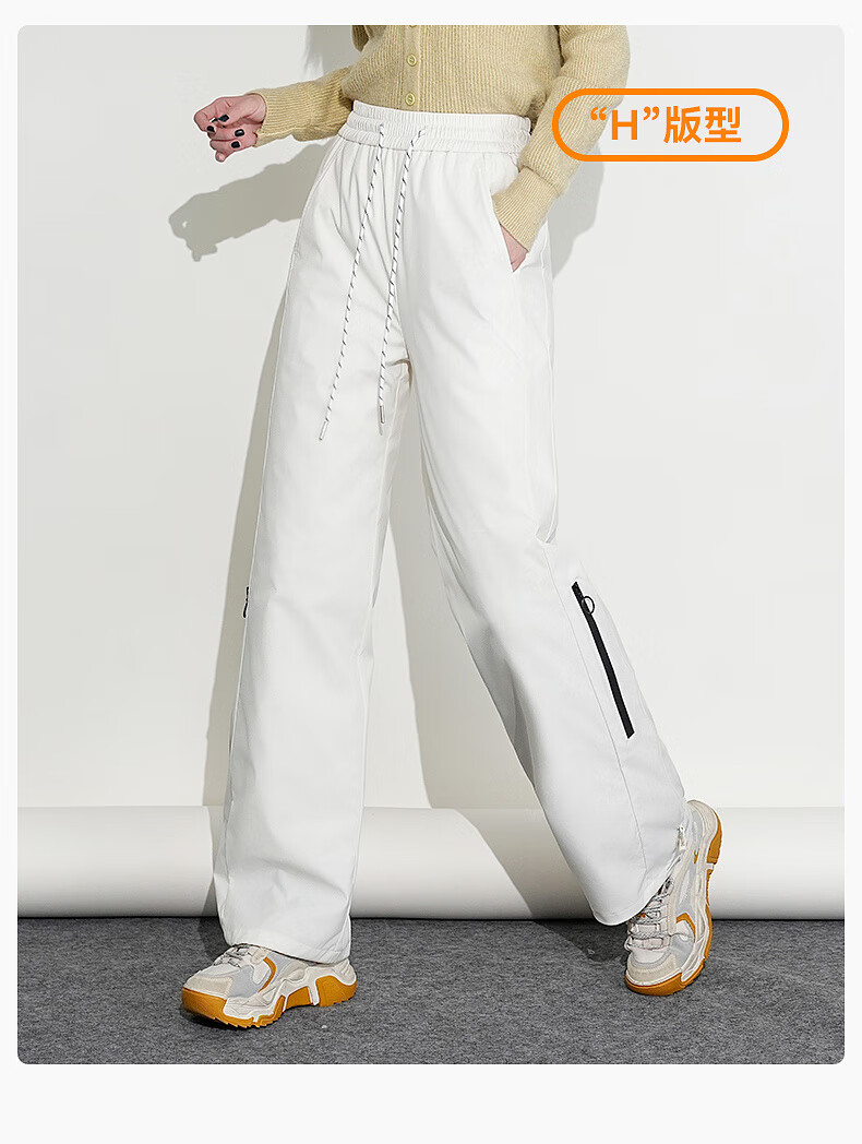 Flying in the snow, new style down pants for men and women, winter warm ski overalls, outdoor straight pockets, white XL 175/80A