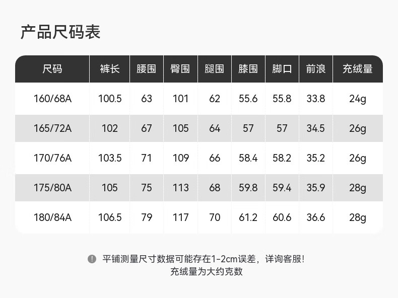 Outseam (cm) 99 cm 101.5 cm 104 cm 106.5 cm 109 cm