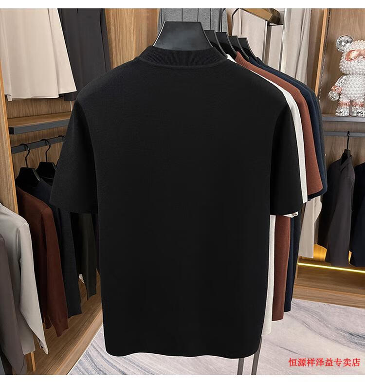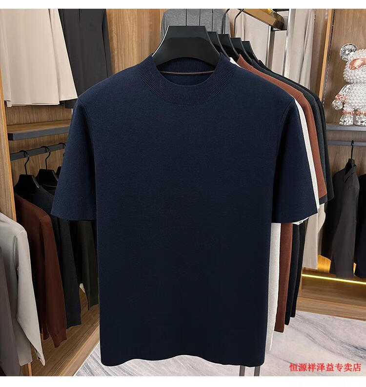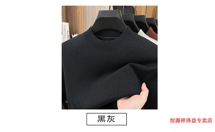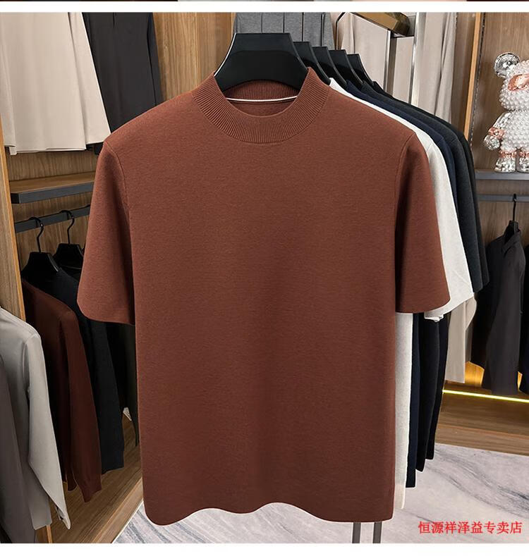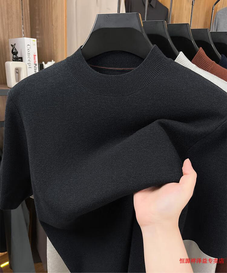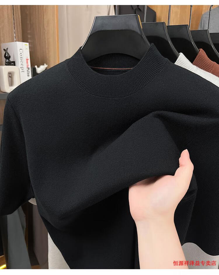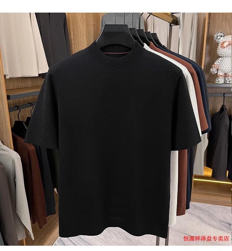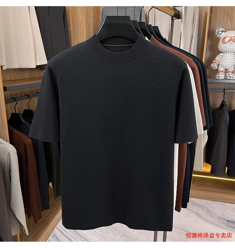 Hengyuanxiang worsted short-sleeved wool sweater men's knitted wool sweater thickened 2025 spring autumn winter half turtleneck bottoming shirt black gray M 48 165100-125Jin Jin equals 0.5 kg
