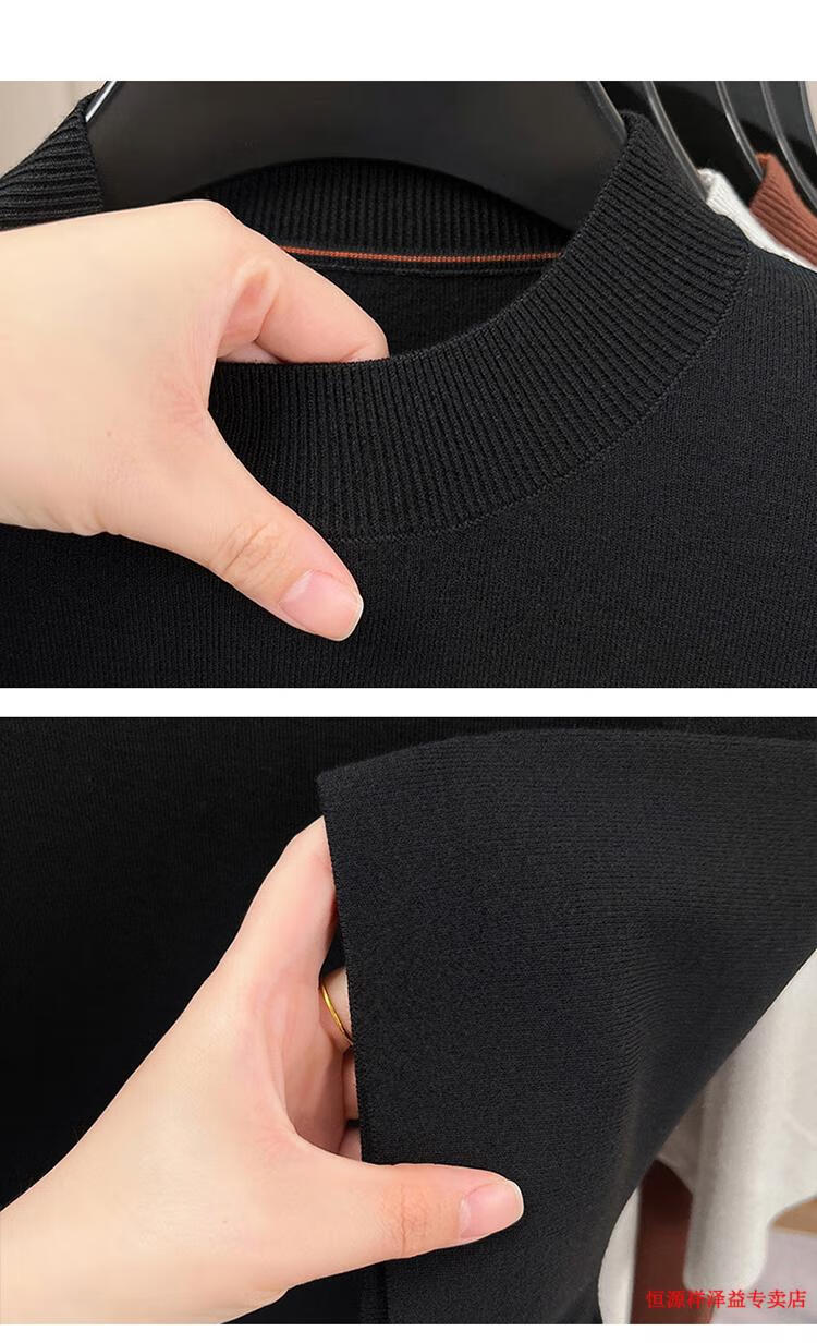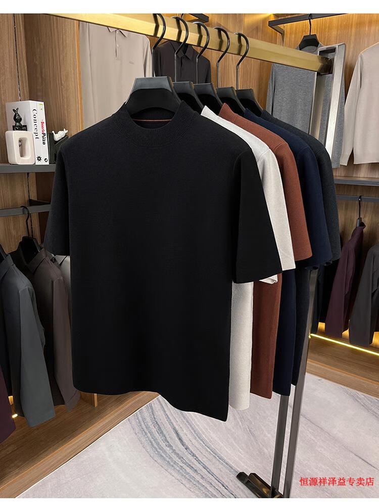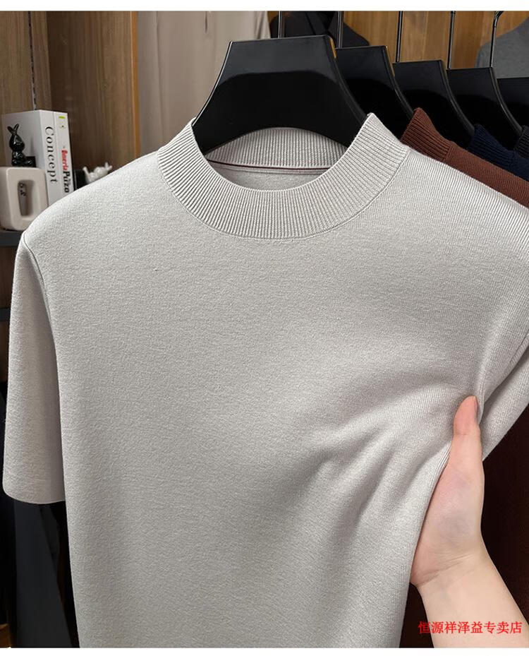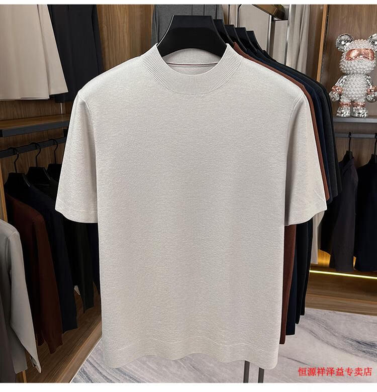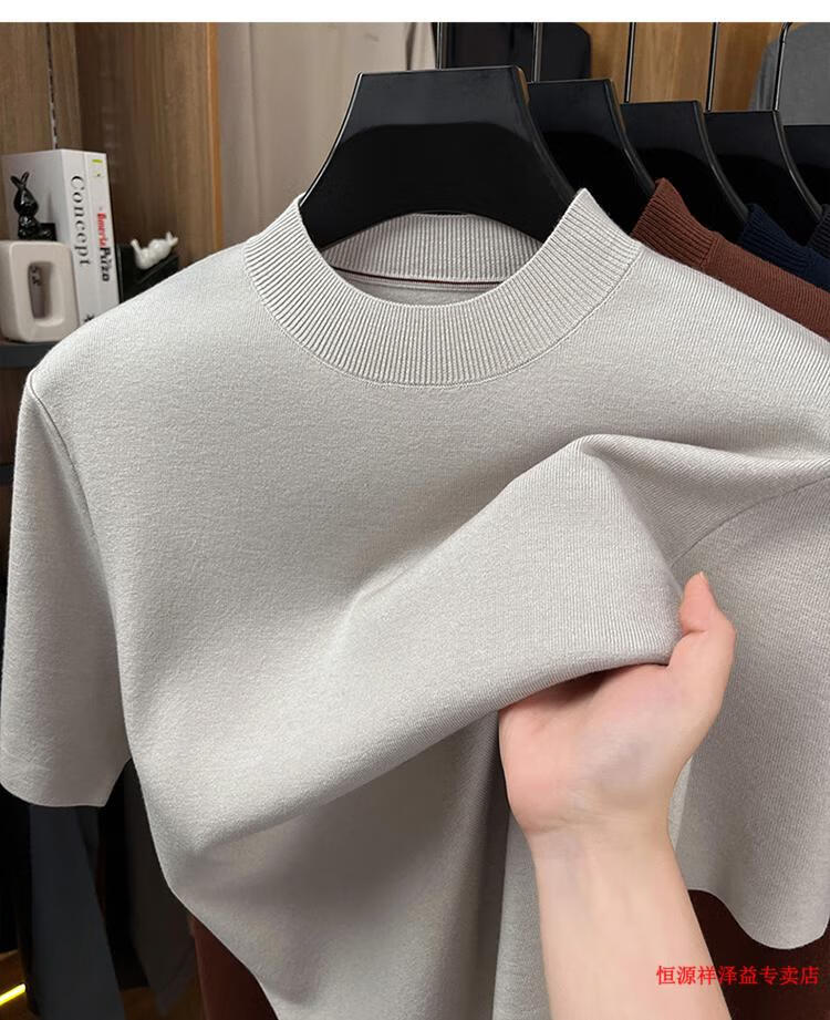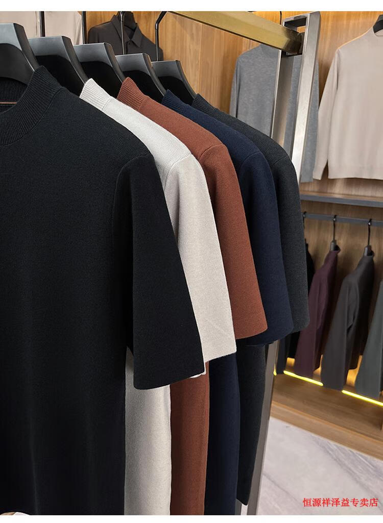 Hengyuanxiang worsted short-sleeved wool sweater men's knitted wool sweater thickened 2025 spring autumn winter half turtleneck bottoming shirt black gray M 48 165100-125Jin Jin equals 0.5 kg
