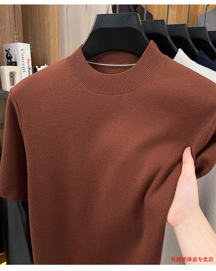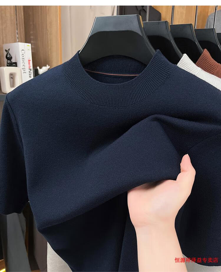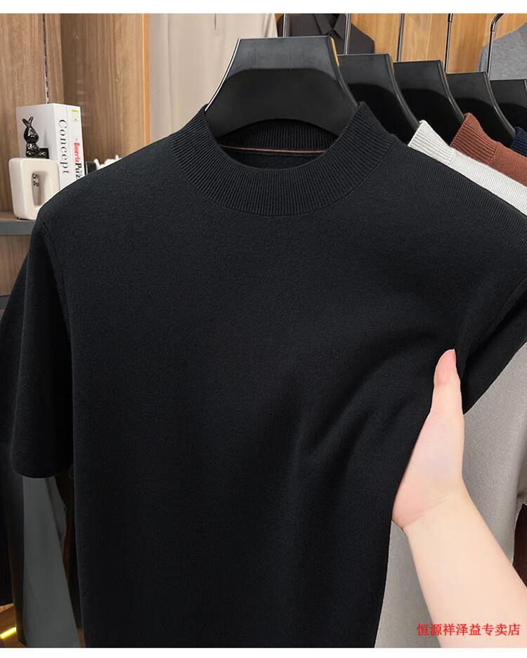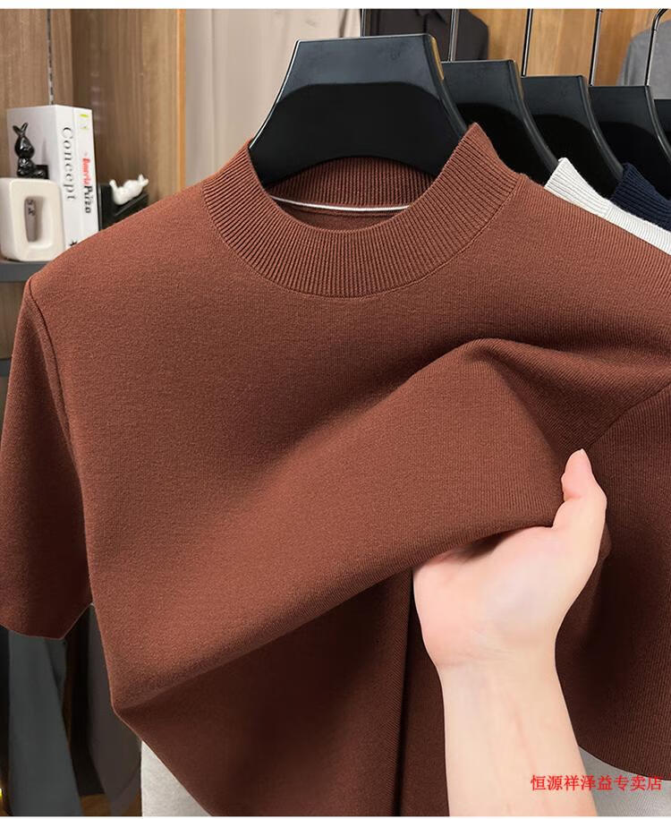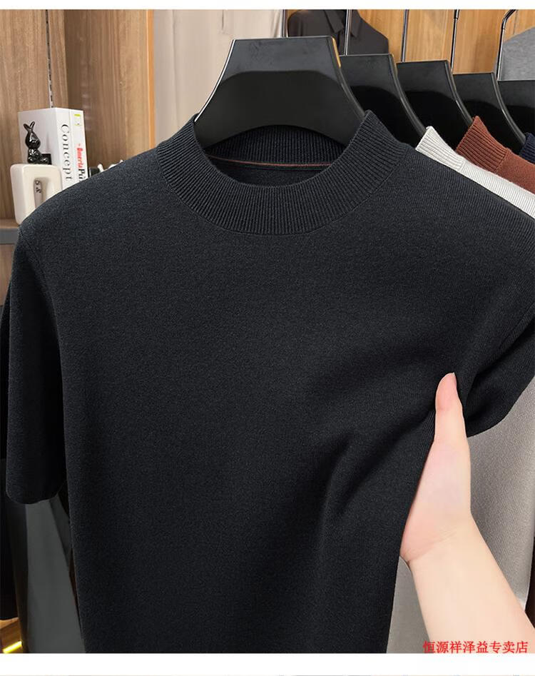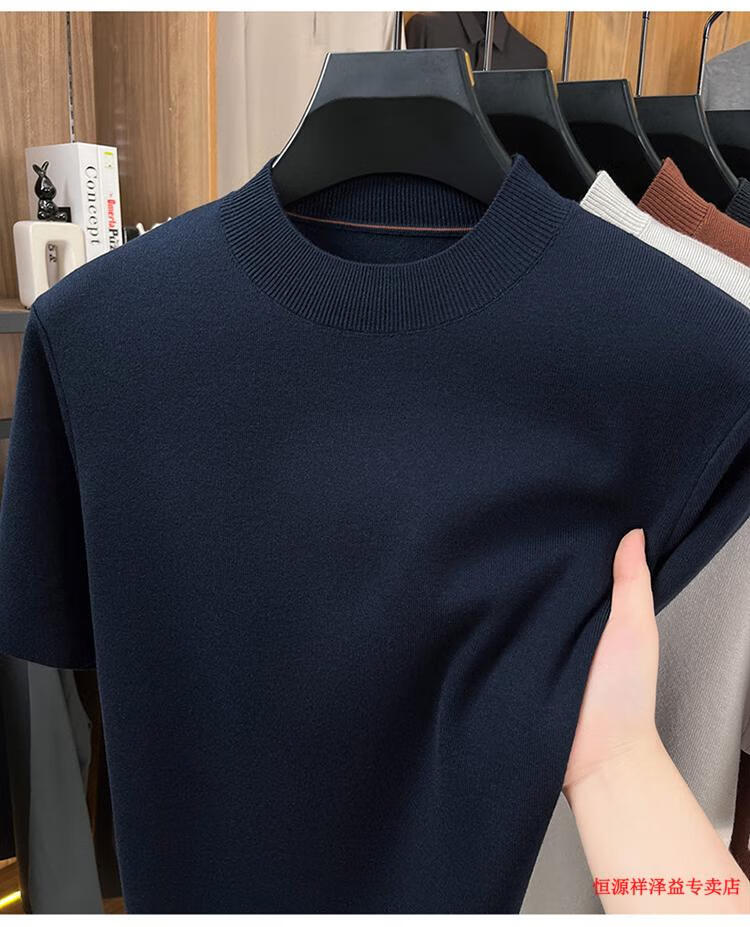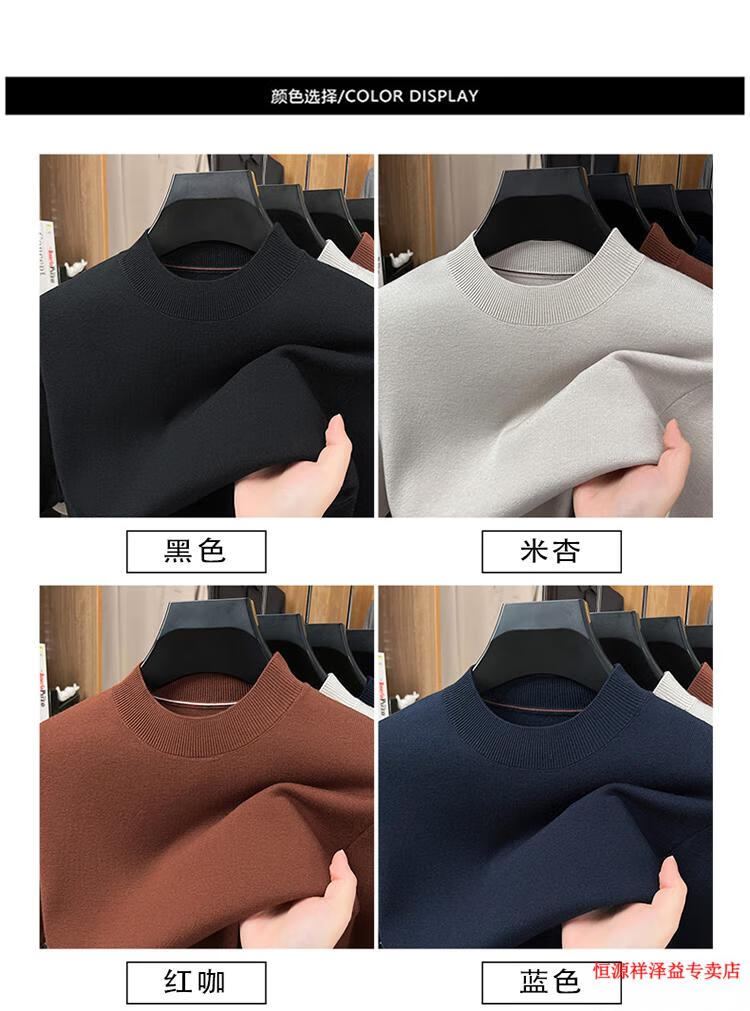 Hengyuanxiang worsted short-sleeved wool sweater men's knitted wool sweater thickened 2025 spring autumn winter half turtleneck bottoming shirt black gray M 48 165100-125Jin Jin equals 0.5 kg