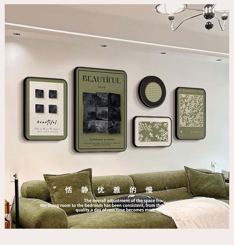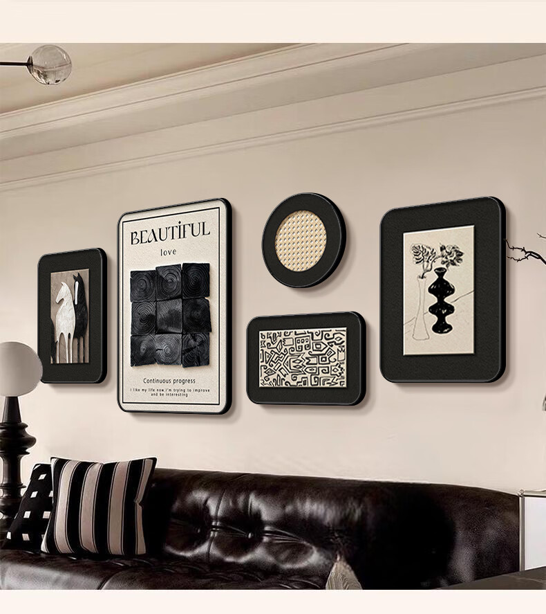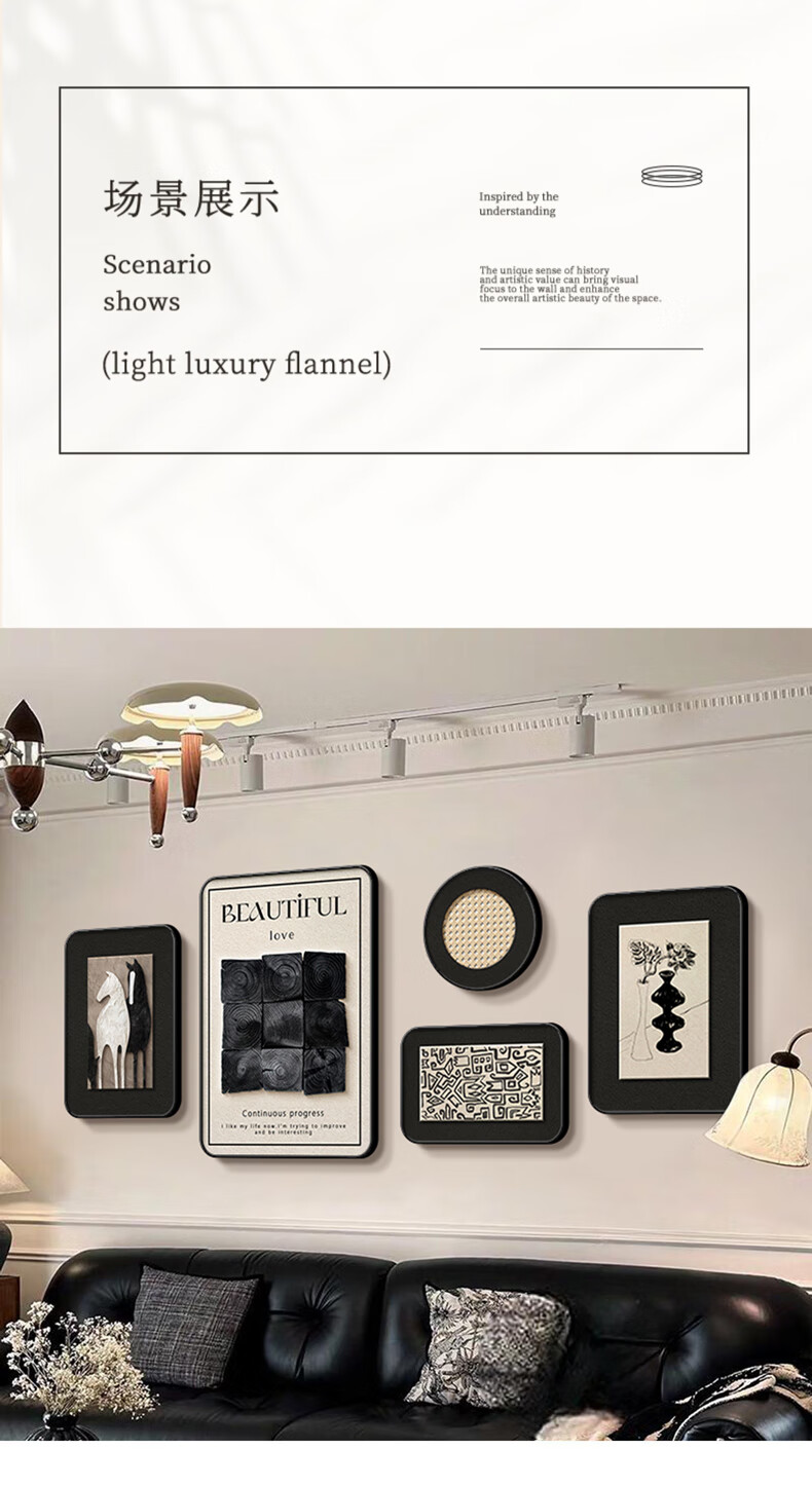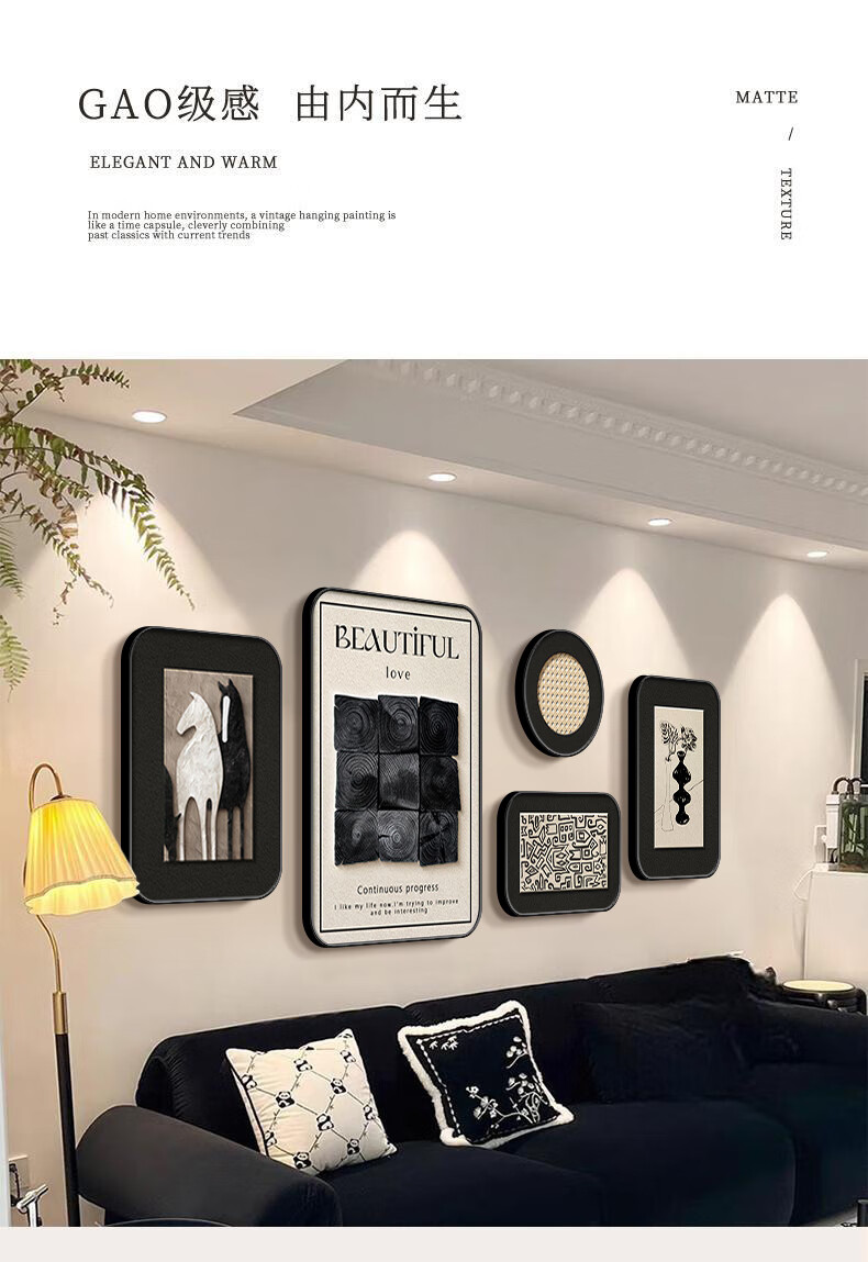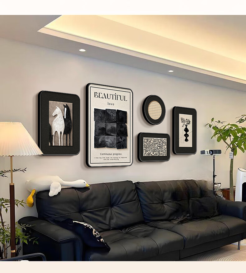 Huaixu Italian minimalist living room decorative painting black and gray high-end sofa background wall hanging painting niche art combination mural JD31576 minimalist charm 30*40/40*50/20*20/30*20/30*40 pvc elegant black edge rounded corner picture frame flat art cloth surface non-reflective