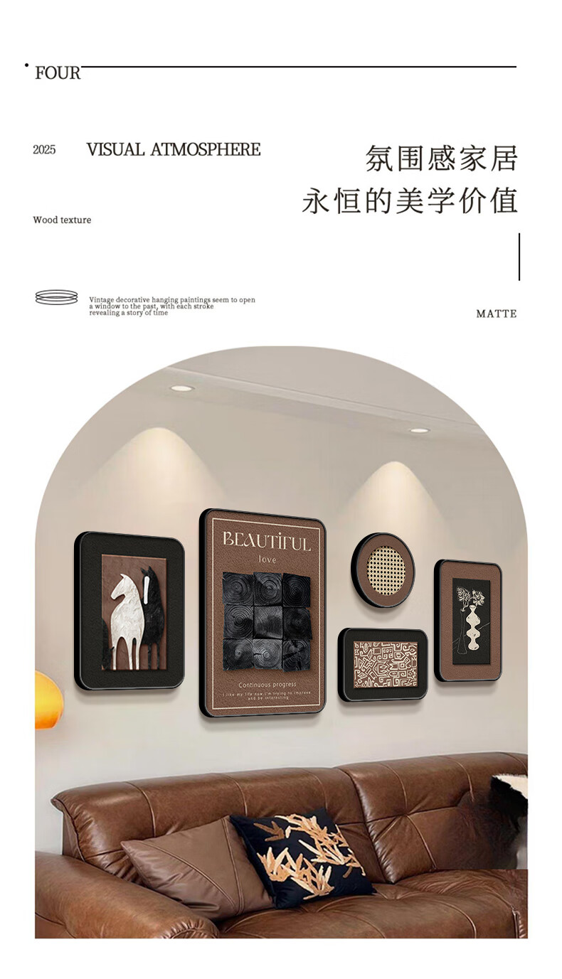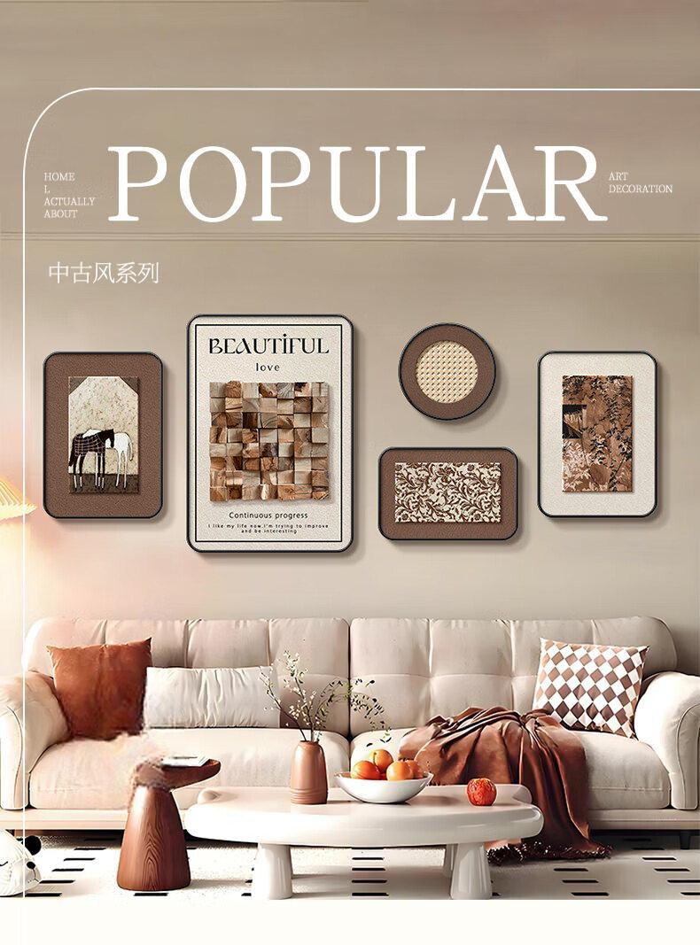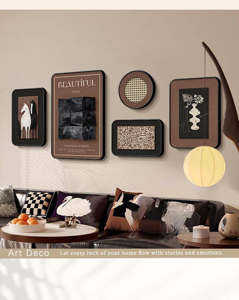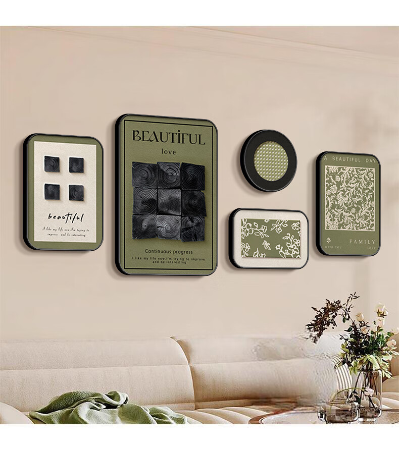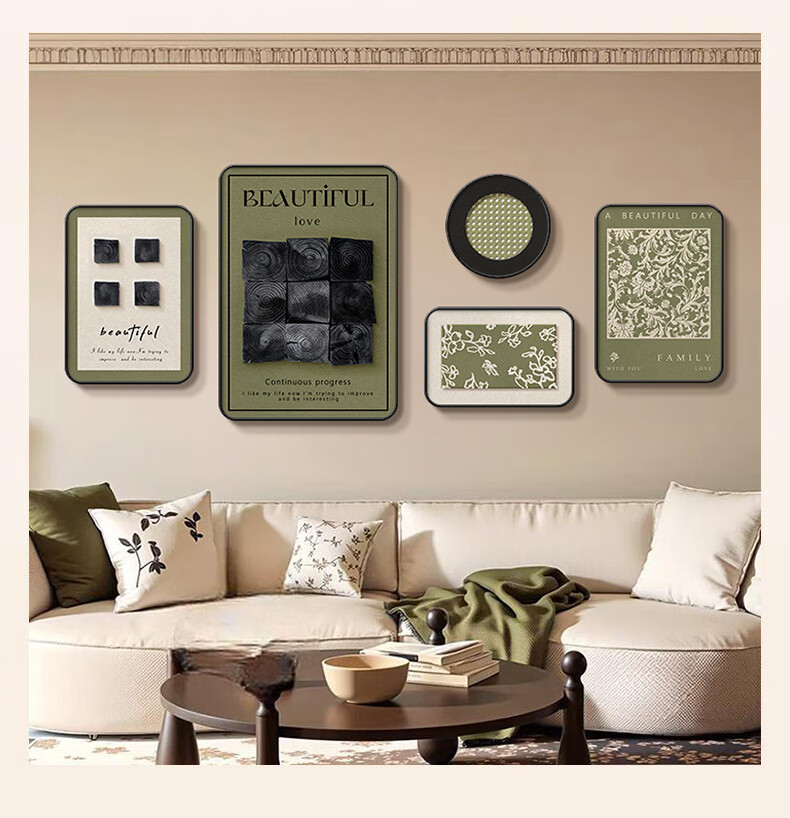 Huaixu Italian minimalist living room decorative painting black and gray high-end sofa background wall hanging painting niche art combination mural JD31576 minimalist charm 30*40/40*50/20*20/30*20/30*40 pvc elegant black edge rounded corner picture frame flat art cloth surface non-reflective