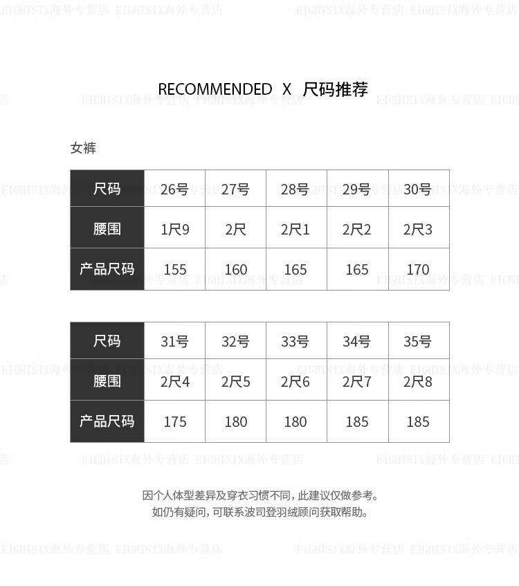 China (cm) 160-165/84-86 165-170 / 88-90 167-172 / 92-96 168-173 / 98-102 170-176 / 106-110