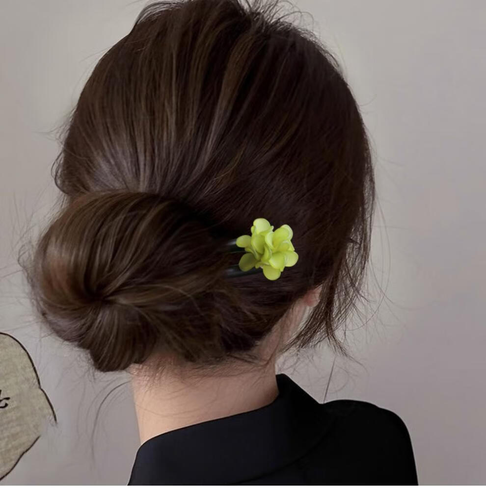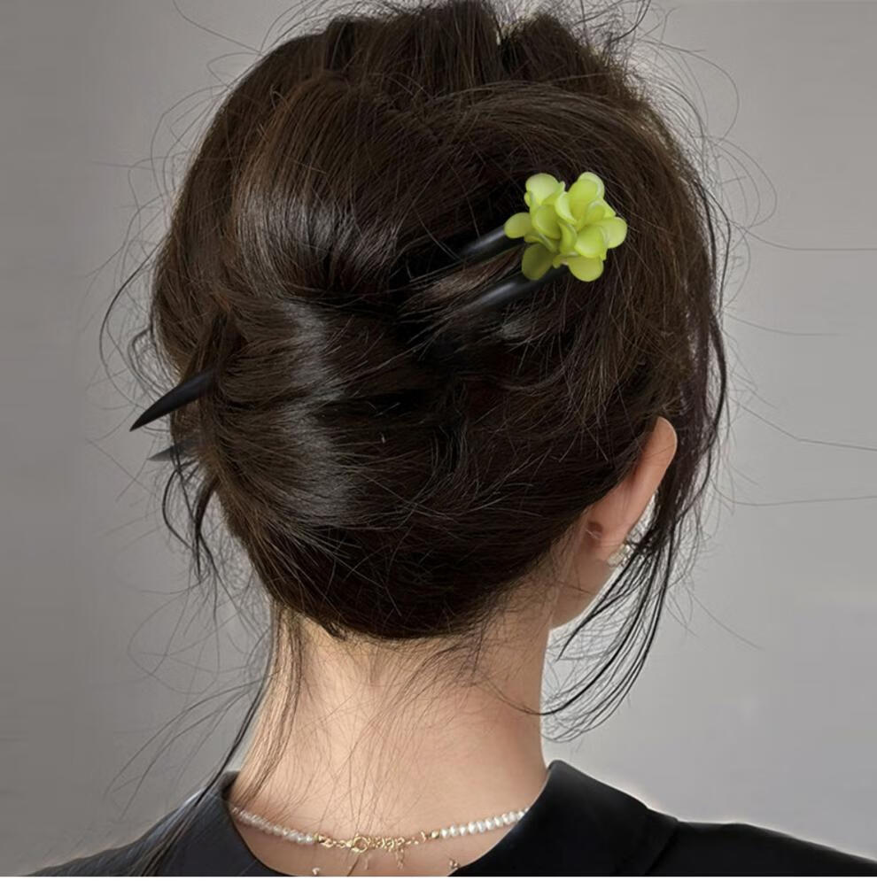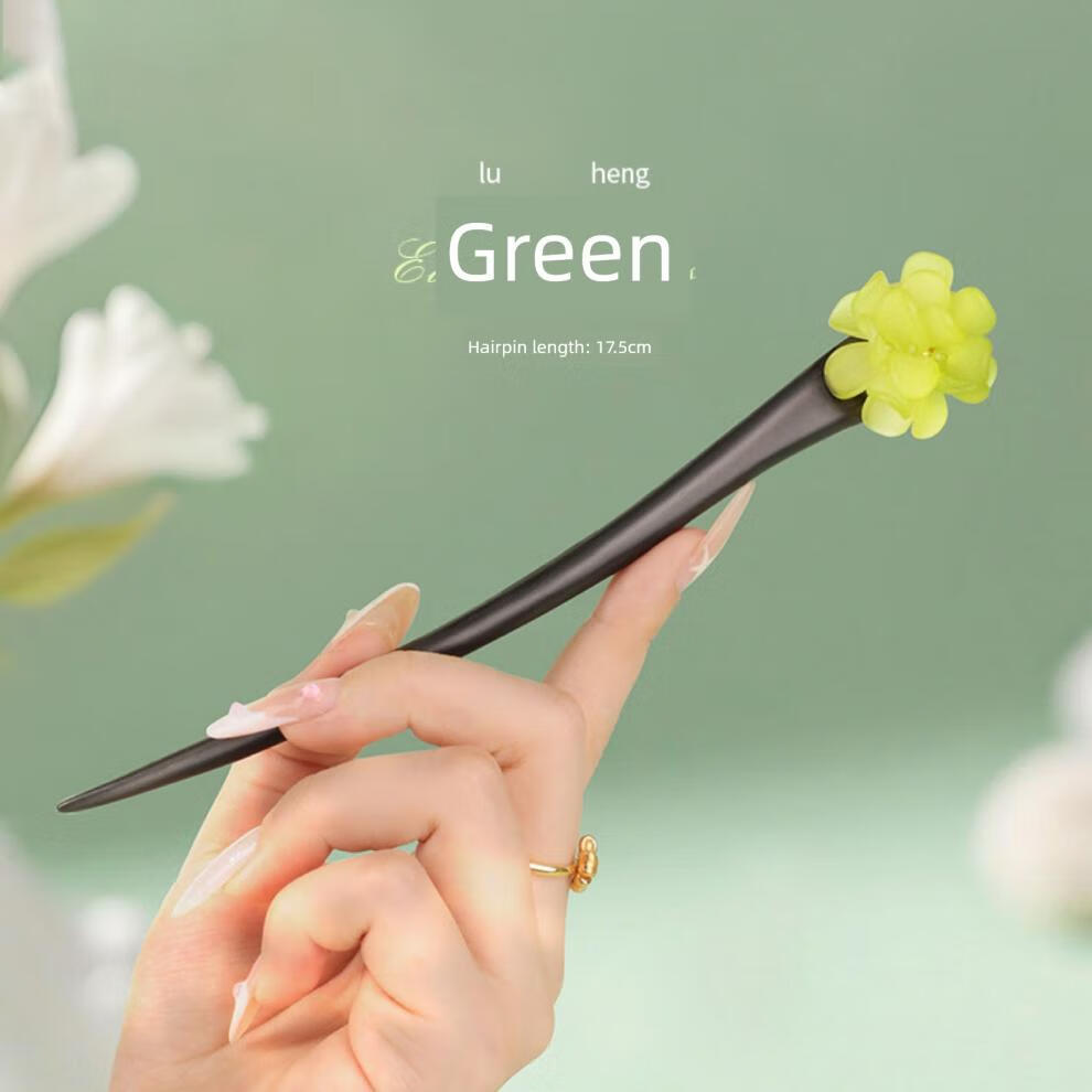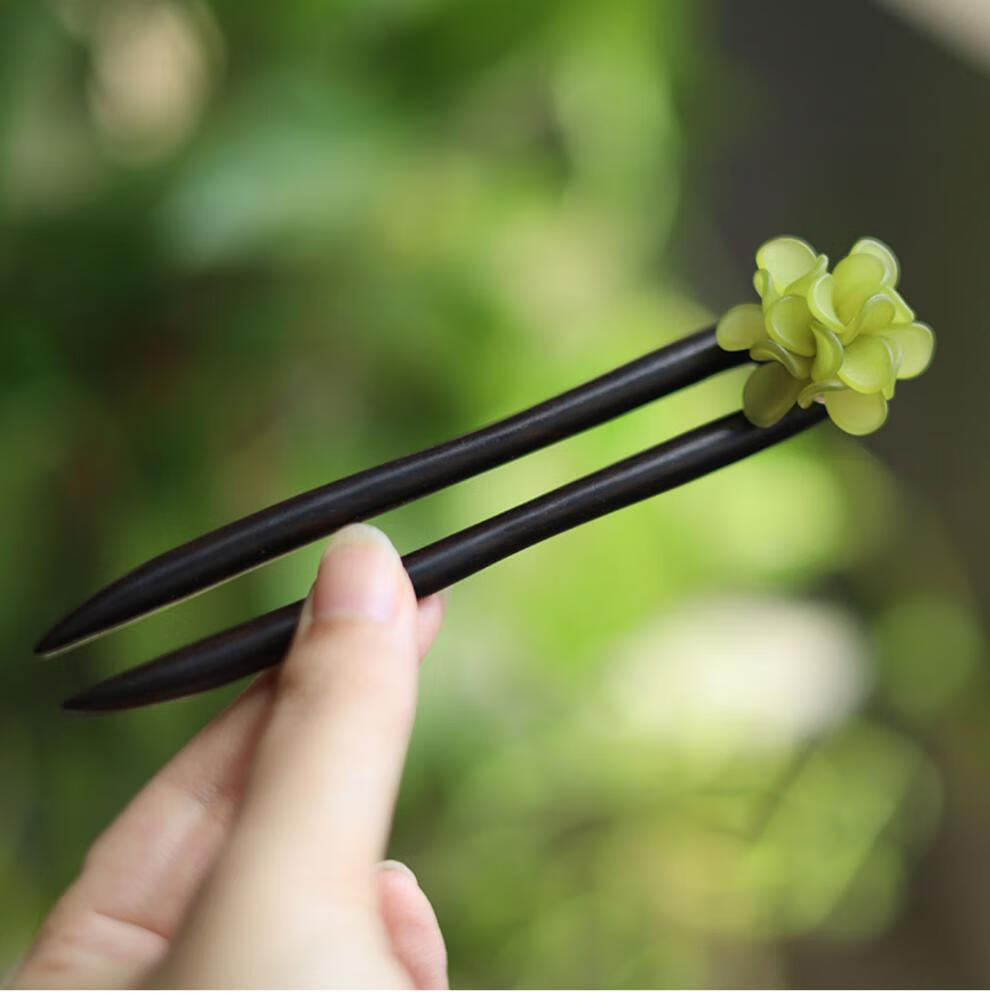 Shijanu 13cm ebony U-shaped hairpin ethnic style women's new U-shaped - green flower wood