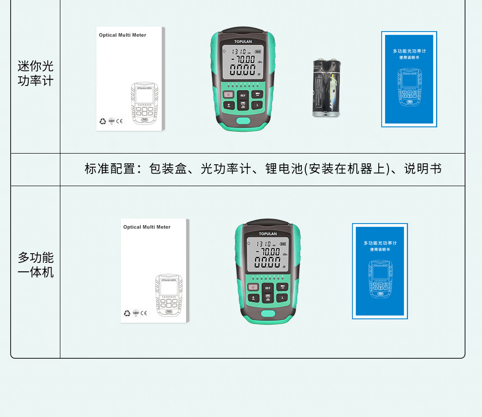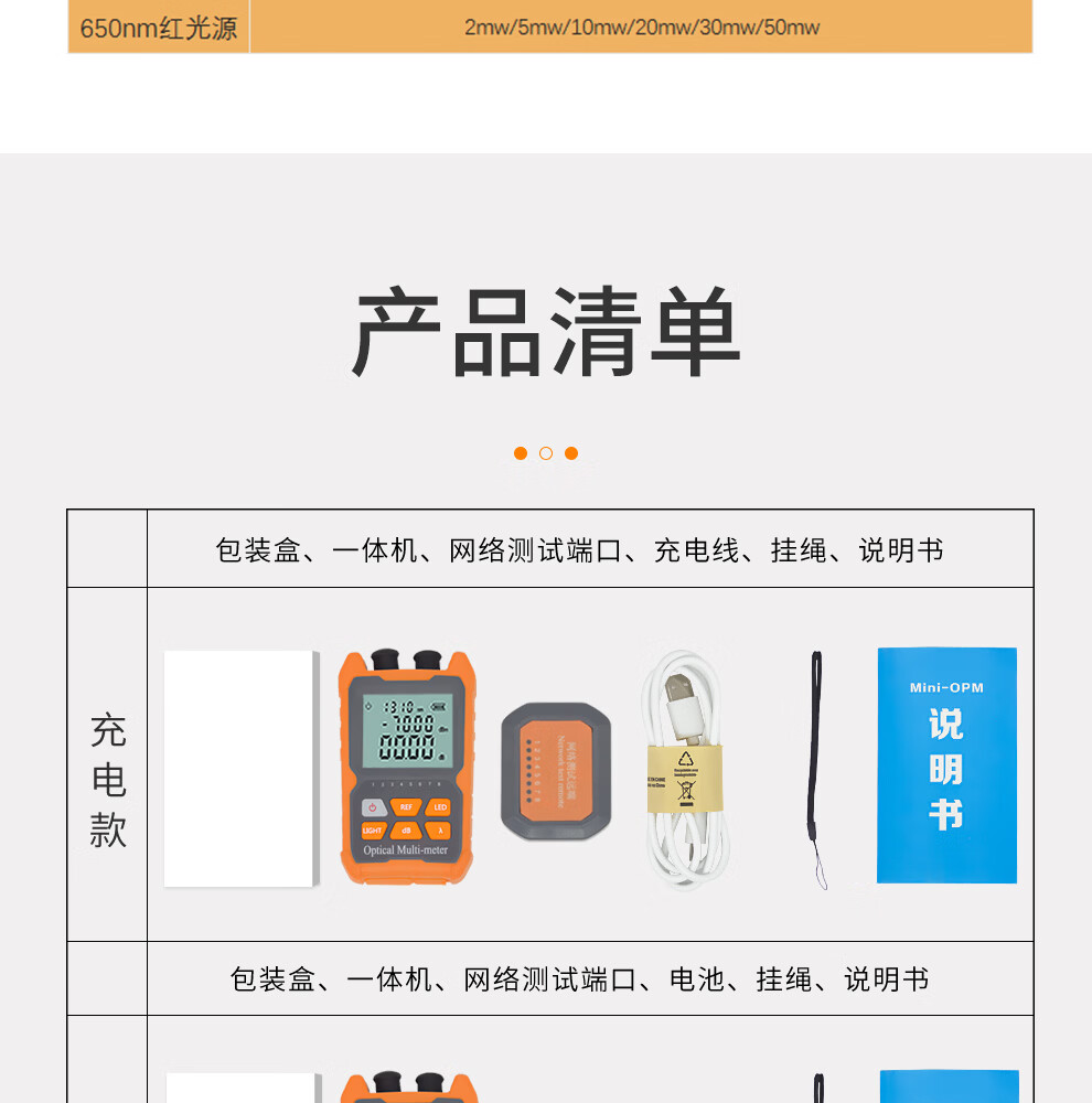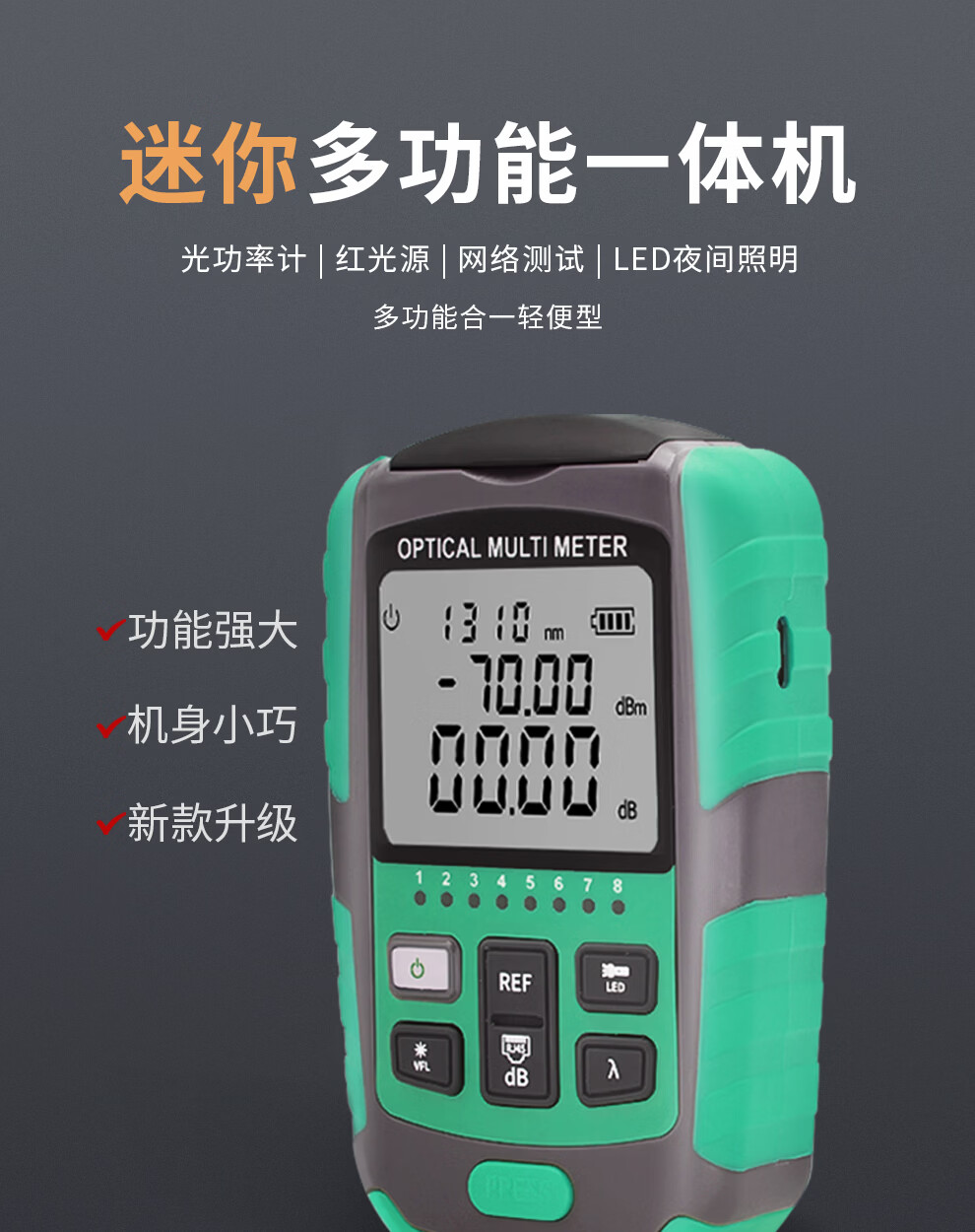 Optical power meter red light all-in-one machine 1577 receiver mini tester optical fiber red light pen lithium battery with network cable sequencing charging high-precision fiber optic tester light attenuation 8 wavelength battery model independent optical power A model without red light (-70~+6)