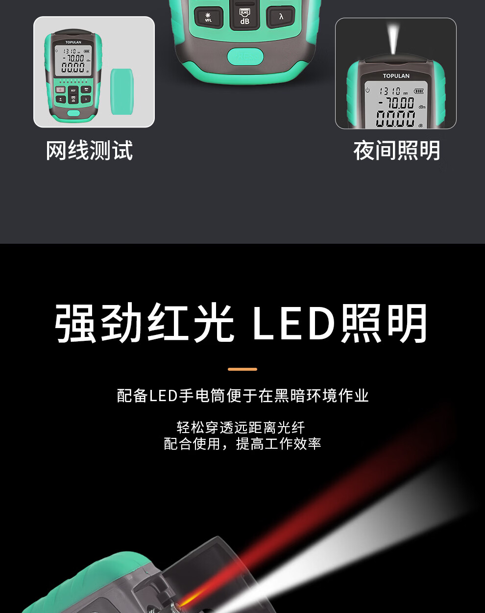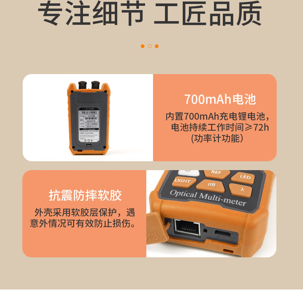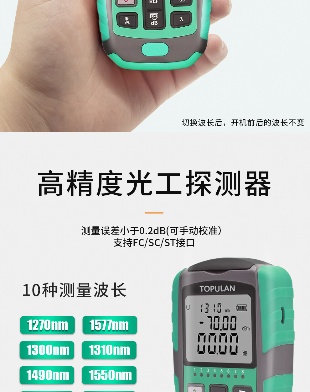 Optical power meter red light all-in-one machine 1577 receiver mini tester optical fiber red light pen lithium battery with network cable sequencing charging high-precision fiber optic tester light attenuation 8 wavelength battery model independent optical power A model without red light (-70~+6)