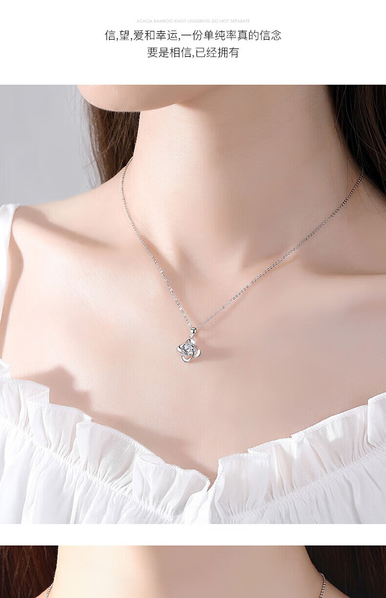 China Gold (CHINA GOLD) platinum four-leaf clover necklace for women platinum diamond high-end pendant Valentine's Day birthday gift for girlfriend and wife two-piece set pendant (silver snowflake chain) + bracelet white-medium gift box