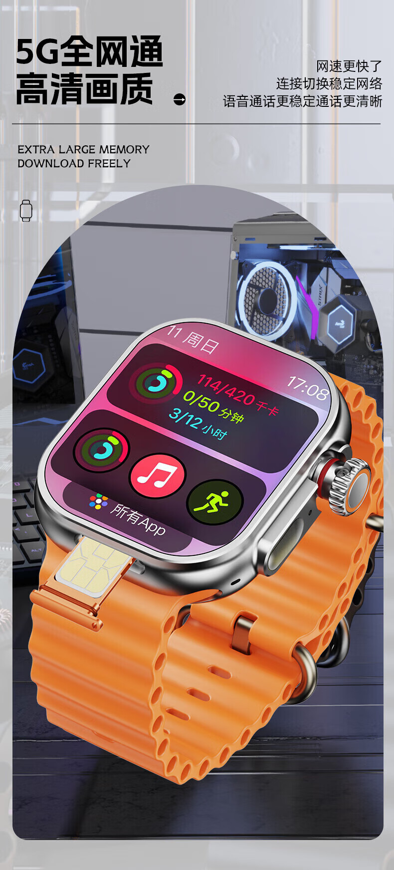 Huaqiangbei smart watch S10ultra3/S11 top version phone watch 5G full network plug-in card plug-in card for men and women adults middle and high school students multi-functional official flagship new model S11Pro max titanium silver upgraded plug-in card/Bluetooth dual system 190 telescopic camera + support Douyin/games/novel/search questions