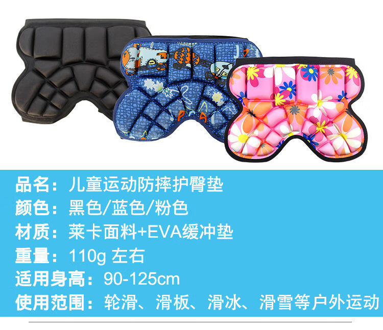 OUOETY roller skating butt pad, children's roller skating butt pads, adult thickened anti-fall pants, figure skating ski protective gear, skateboard, children's black (height 0.9-1.25 meters), one size fits all