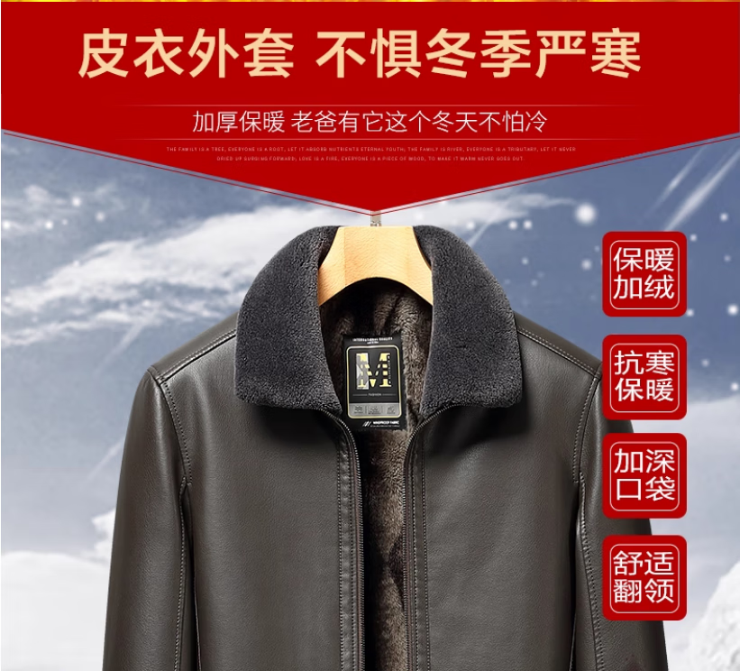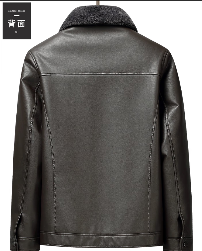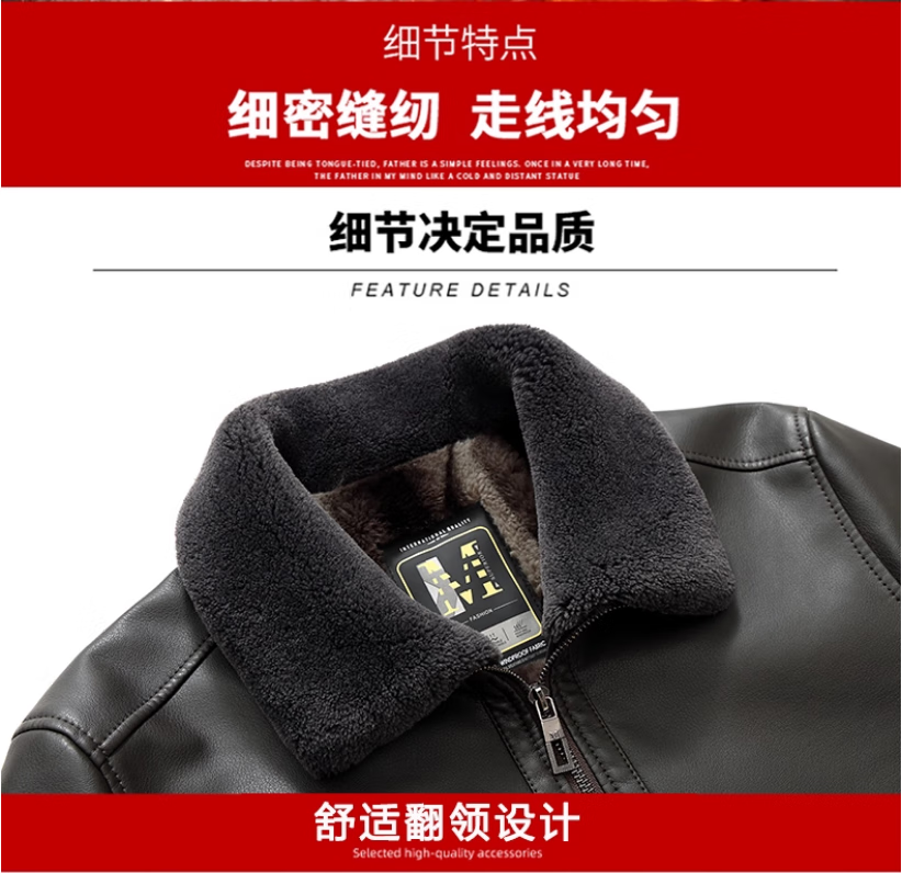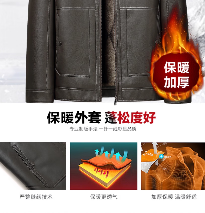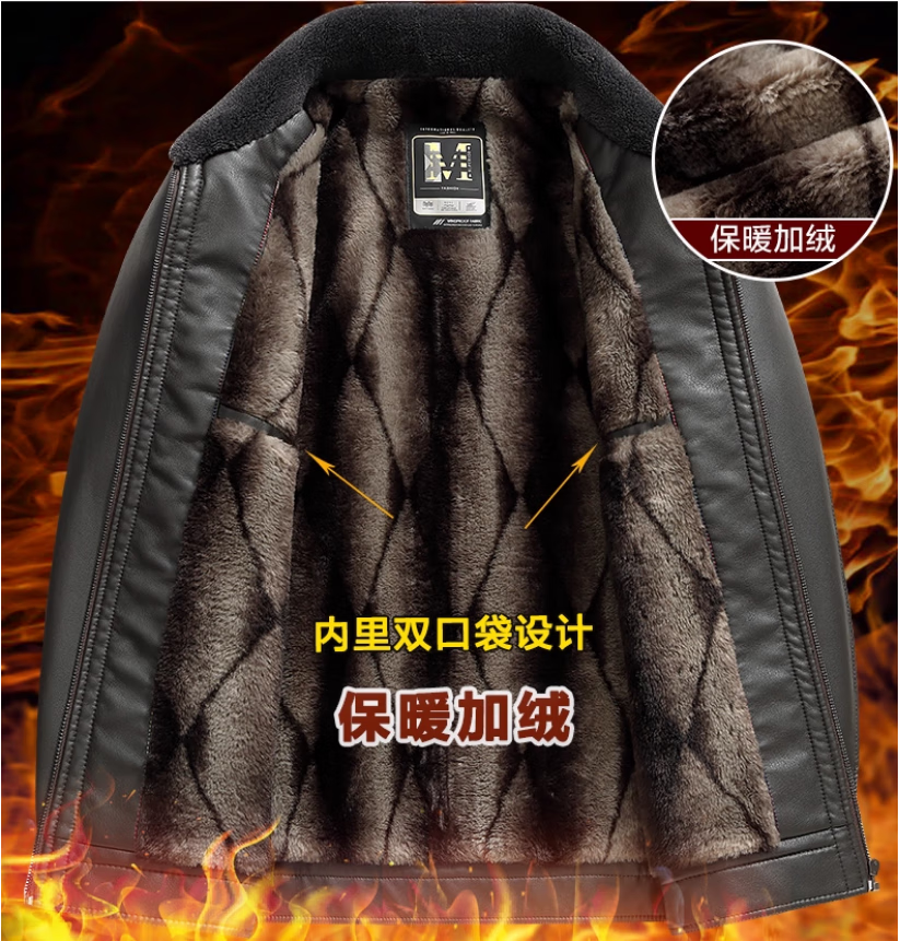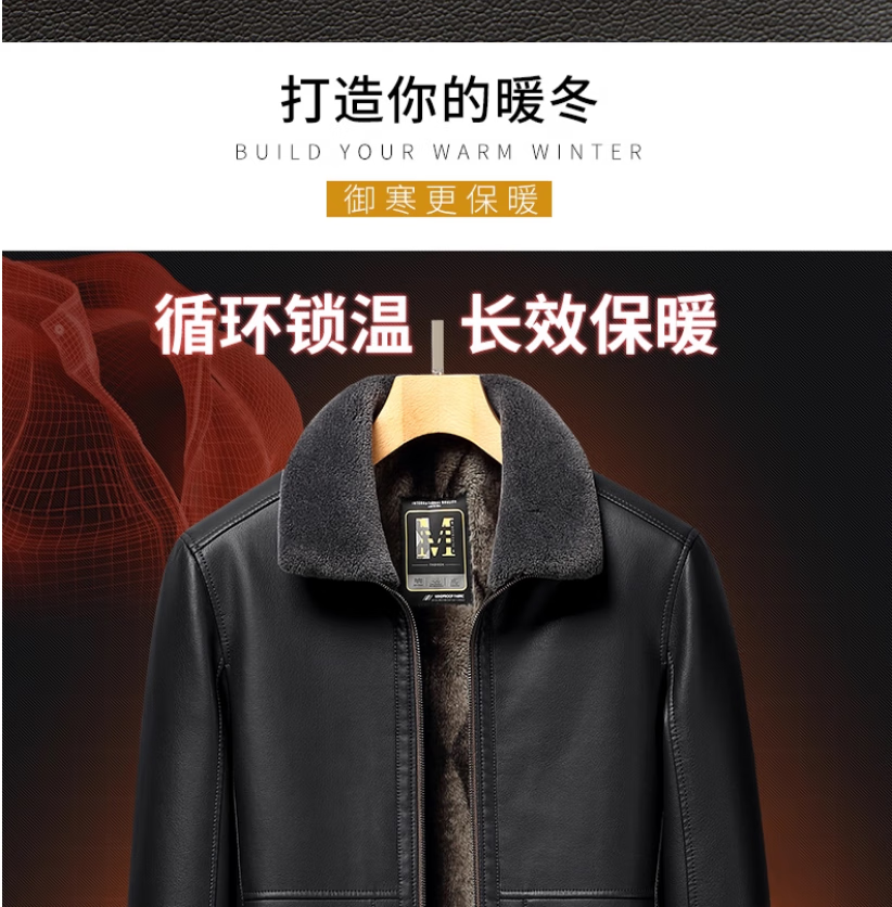 花花公子(PLAYBOY)爸爸冬装外套中年加绒加厚皮衣服男中老年人皮毛一体皮夹克 黑色 M 170/84A适合80-100斤