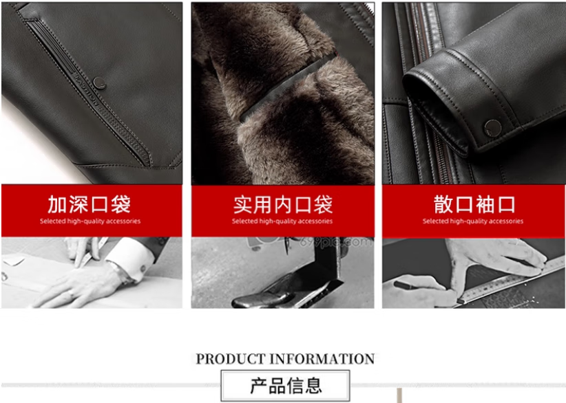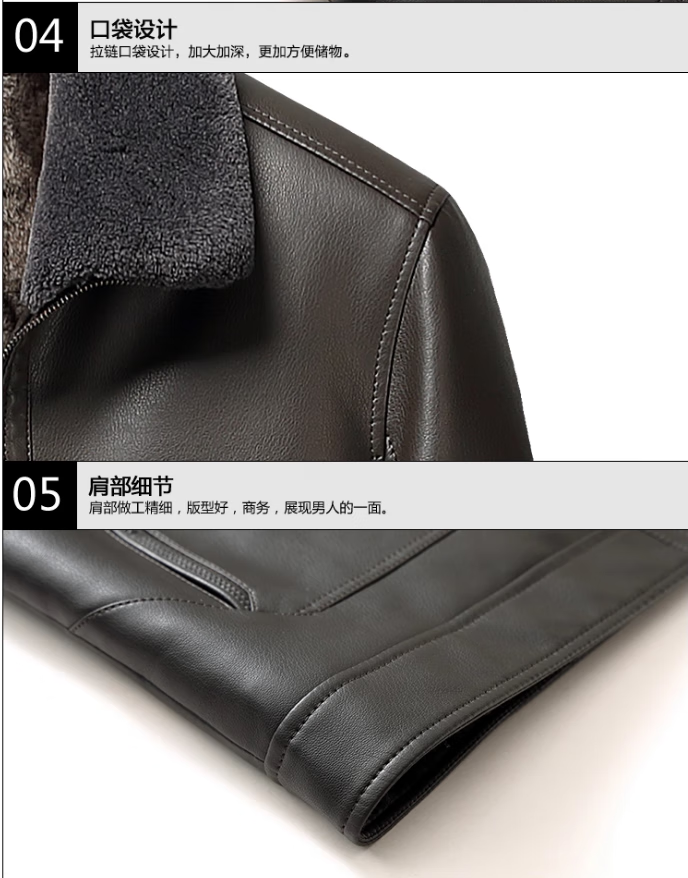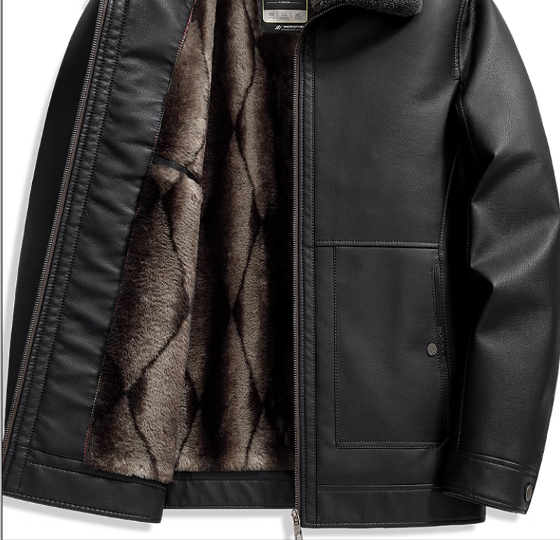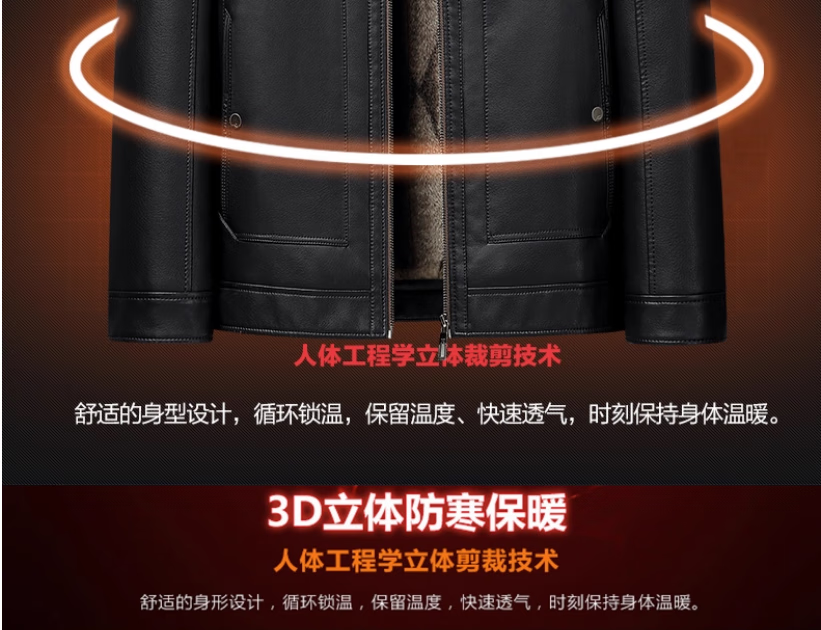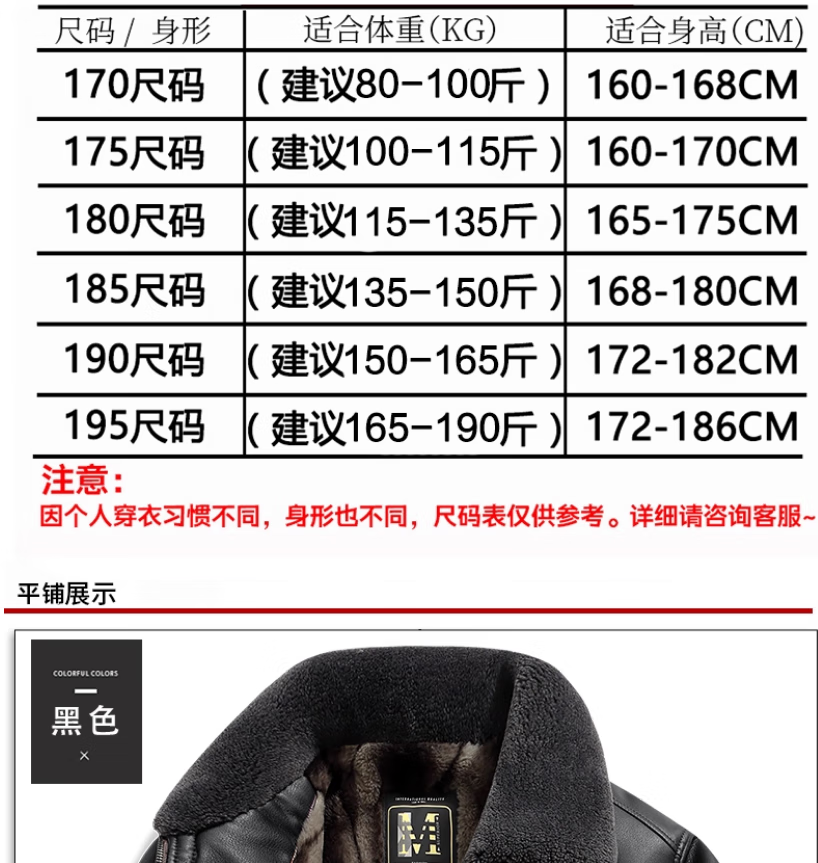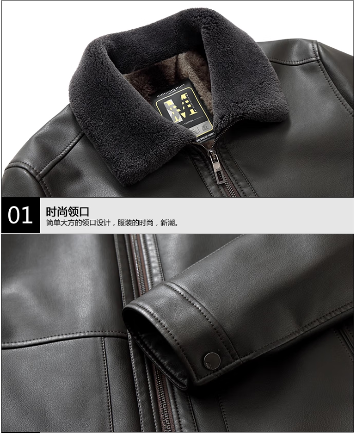花花公子(PLAYBOY)爸爸冬装外套中年加绒加厚皮衣服男中老年人皮毛一体皮夹克 黑色 M 170/84A适合80-100斤